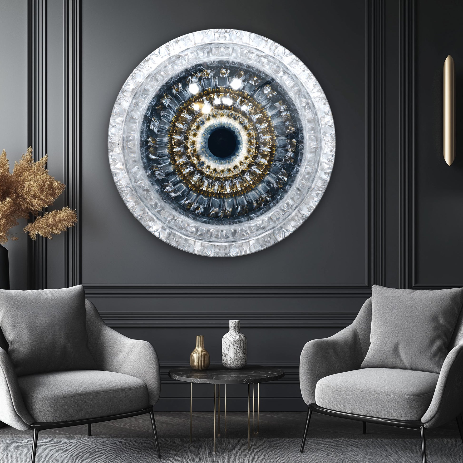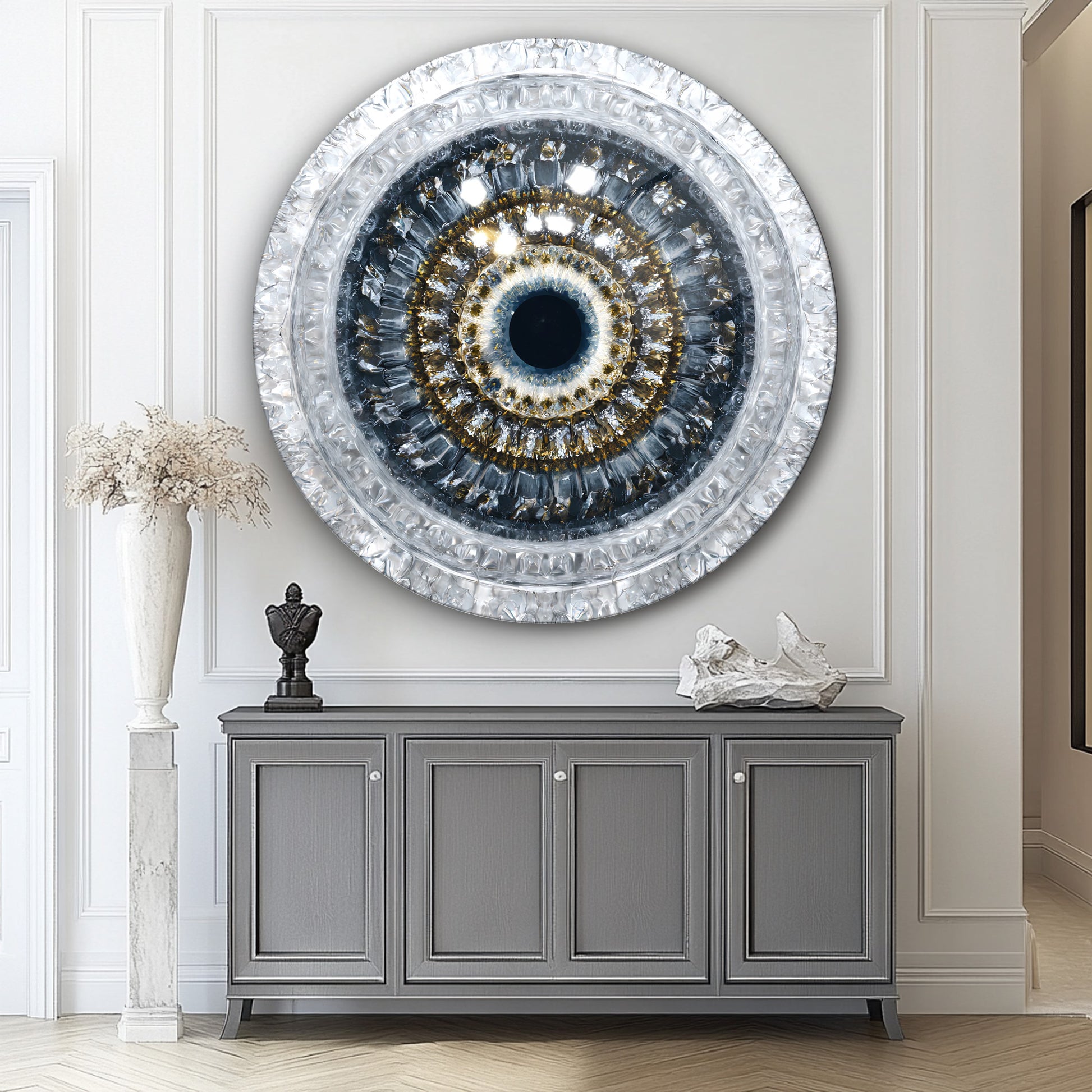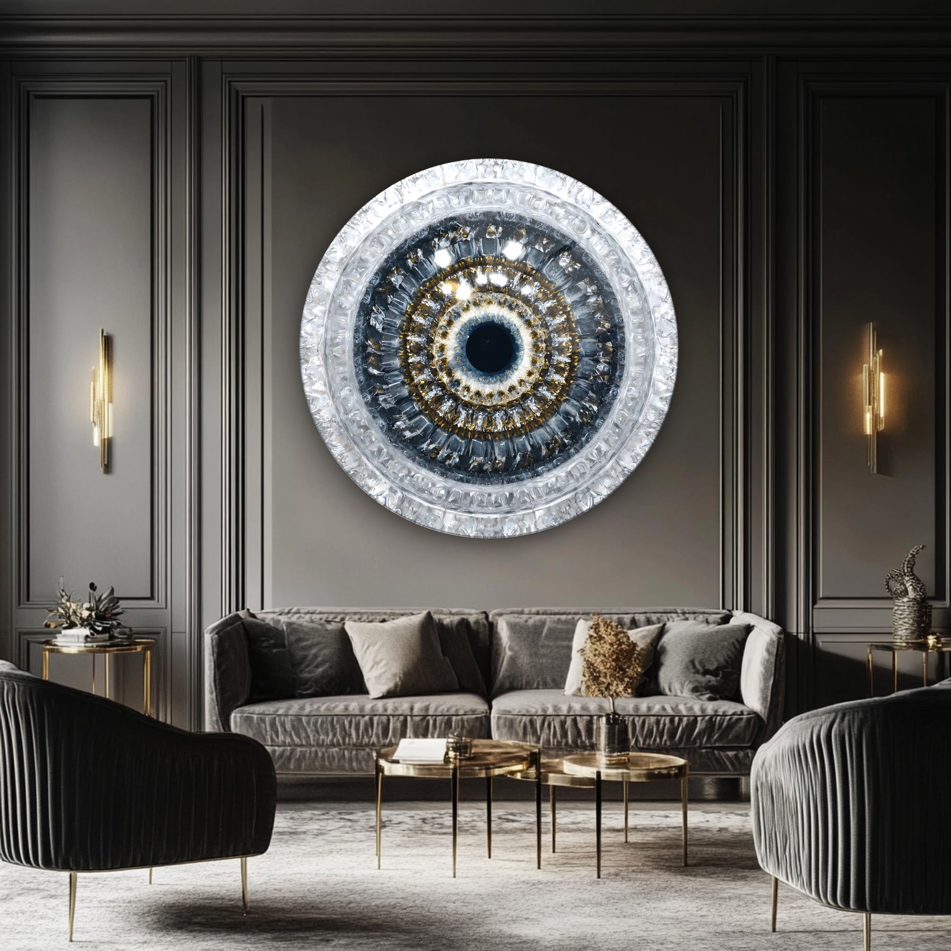 Soyut Mavi Gümüş Kristal Yuvarlak Cam Tablo