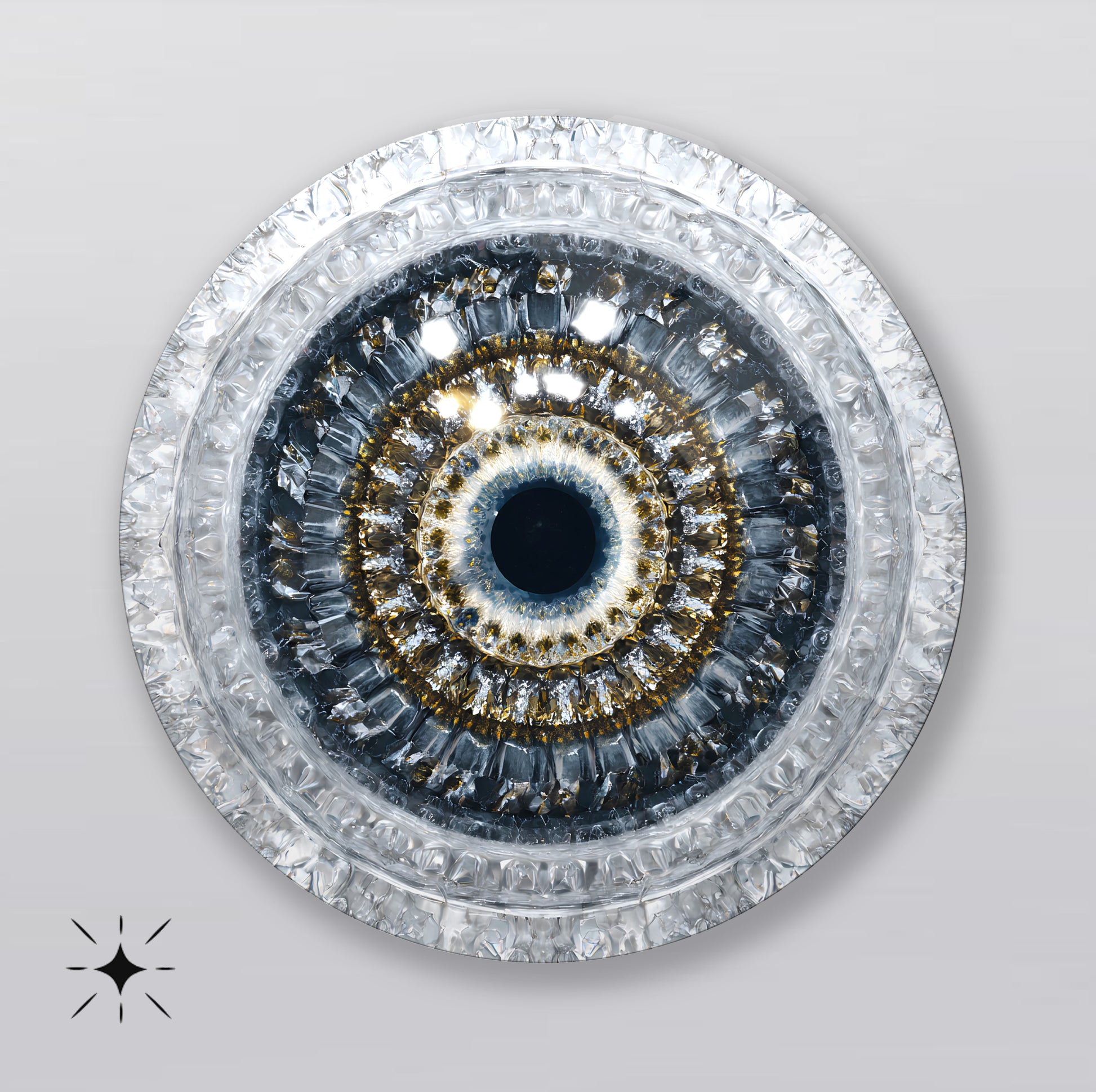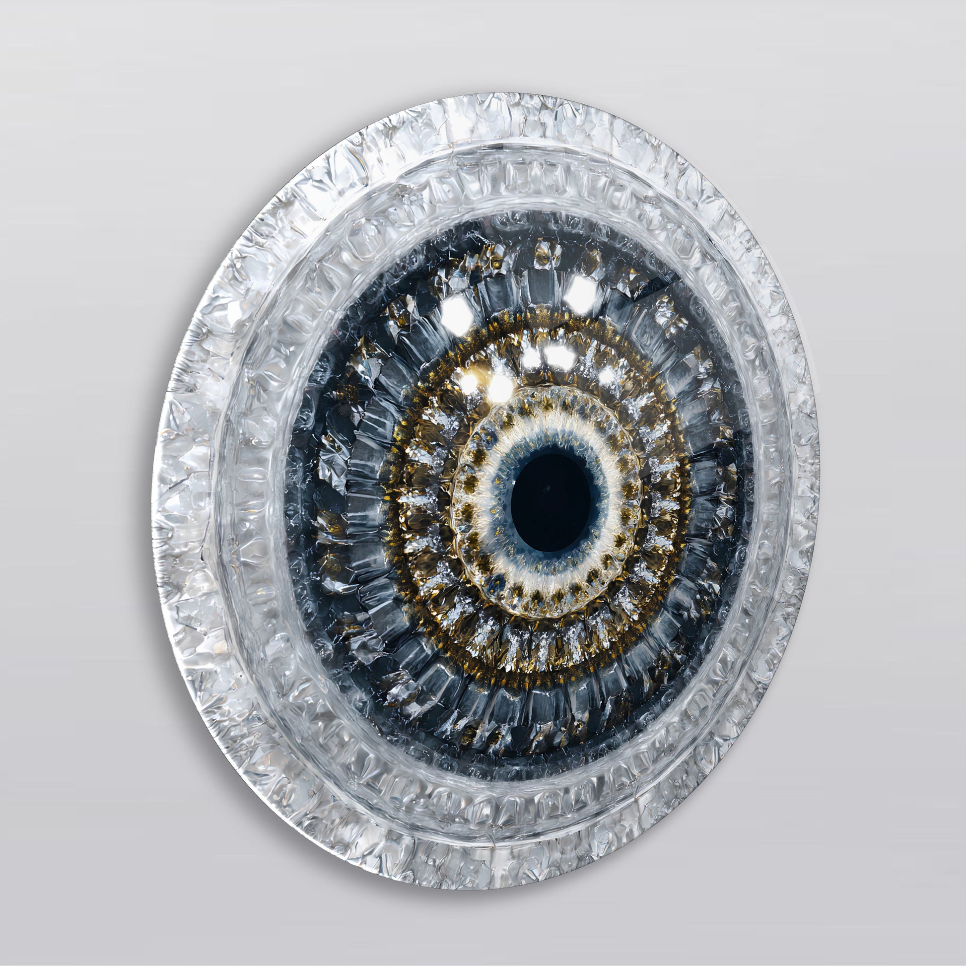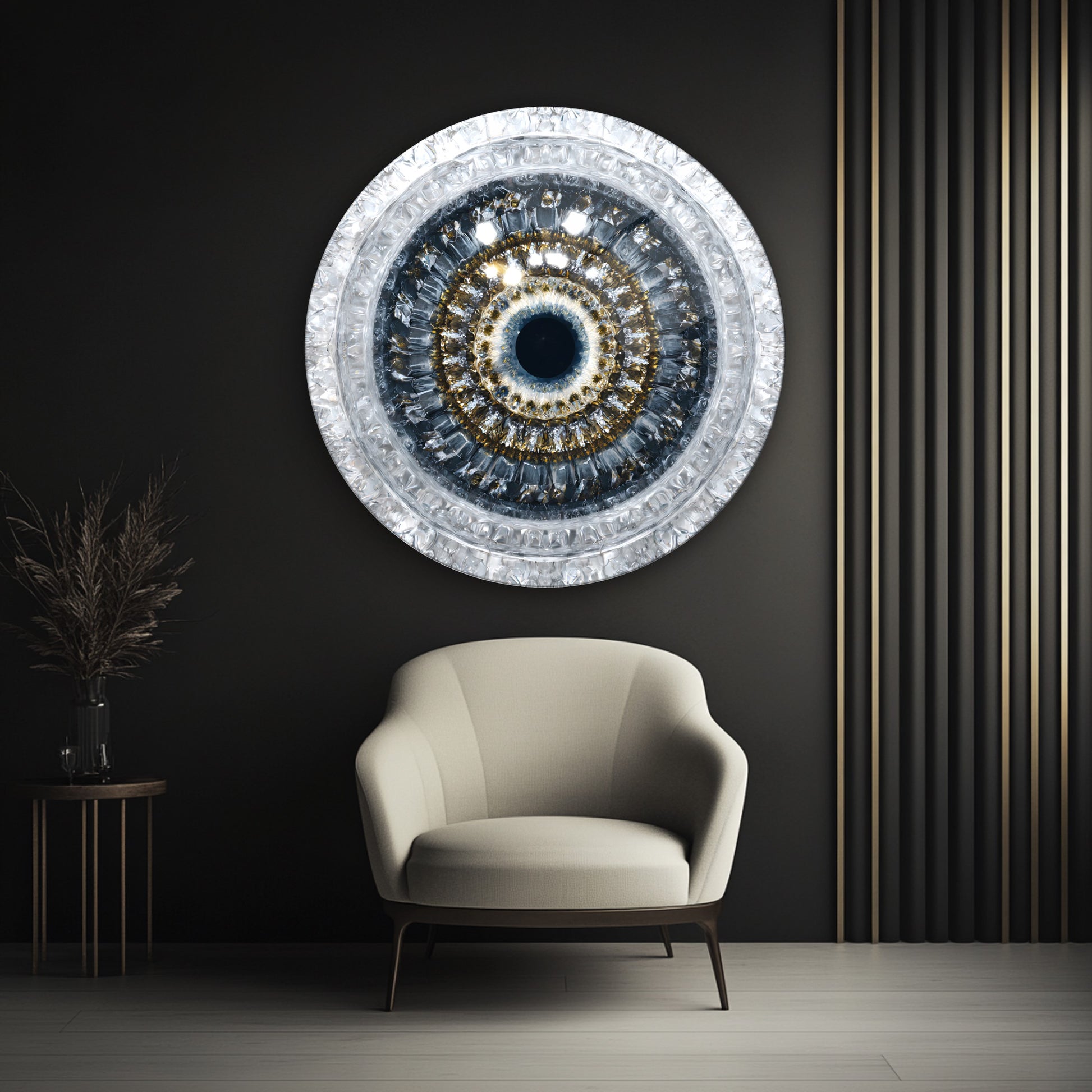 Soyut Mavi Gümüş Kristal Yuvarlak Cam Tablo