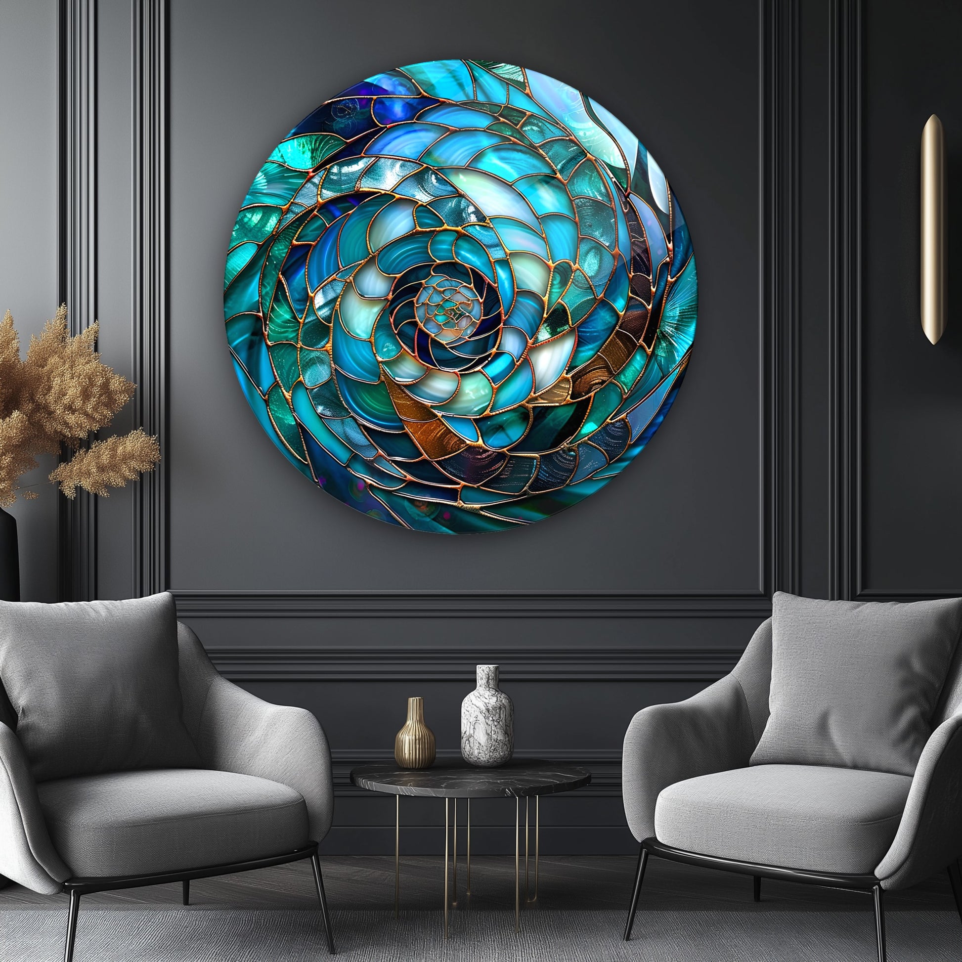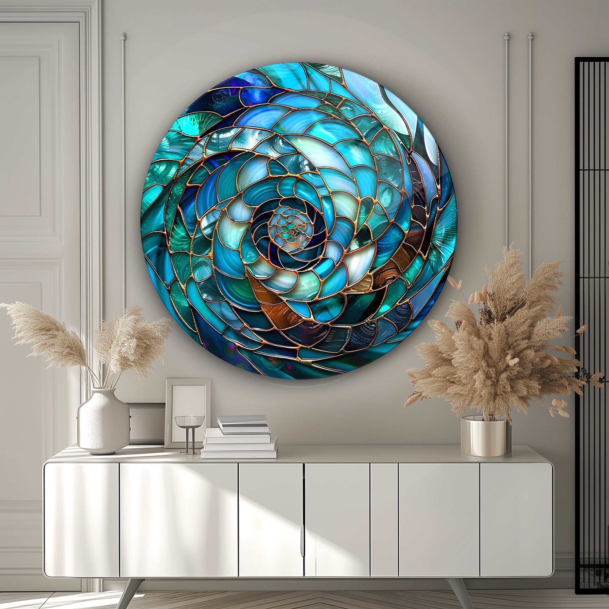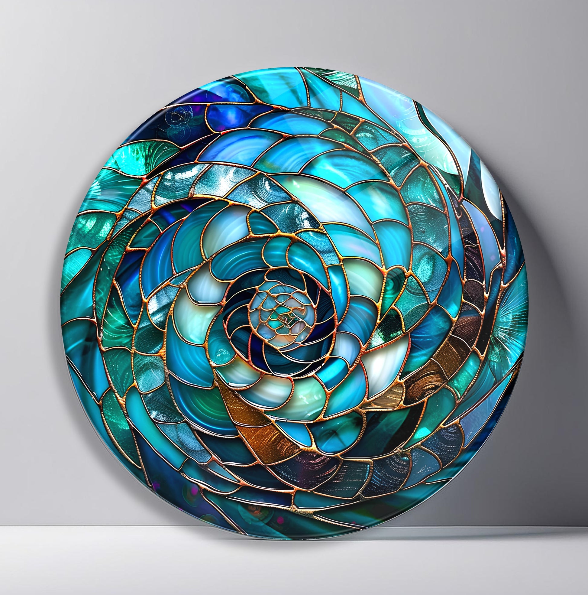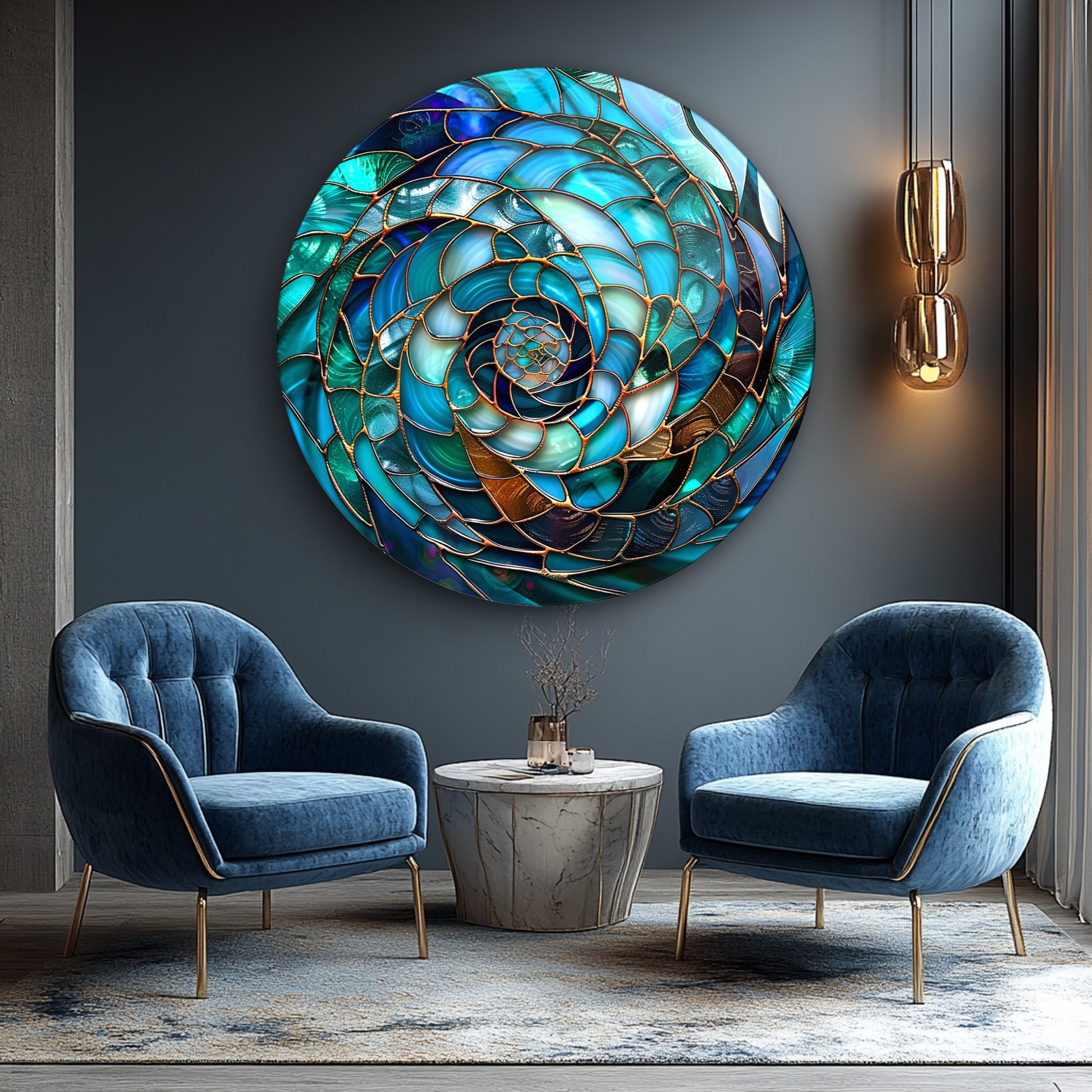 Soyut Mavi Yuvarlak Cam Tablo