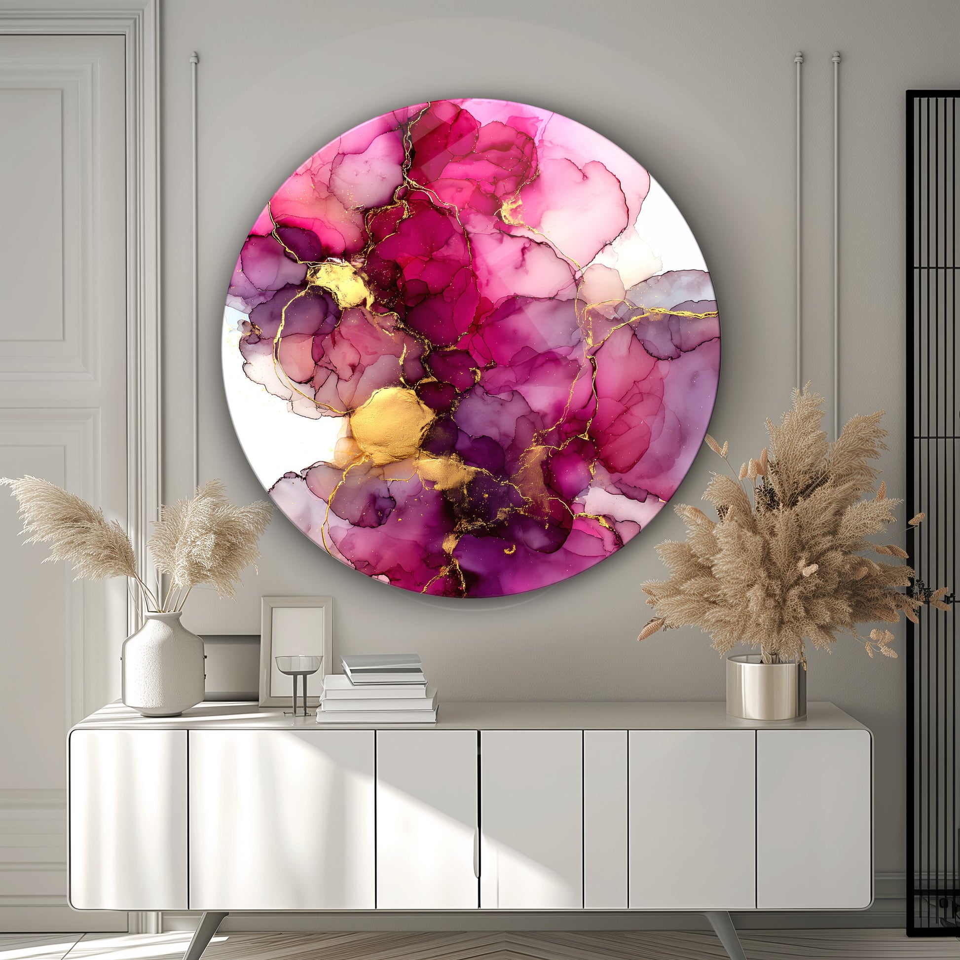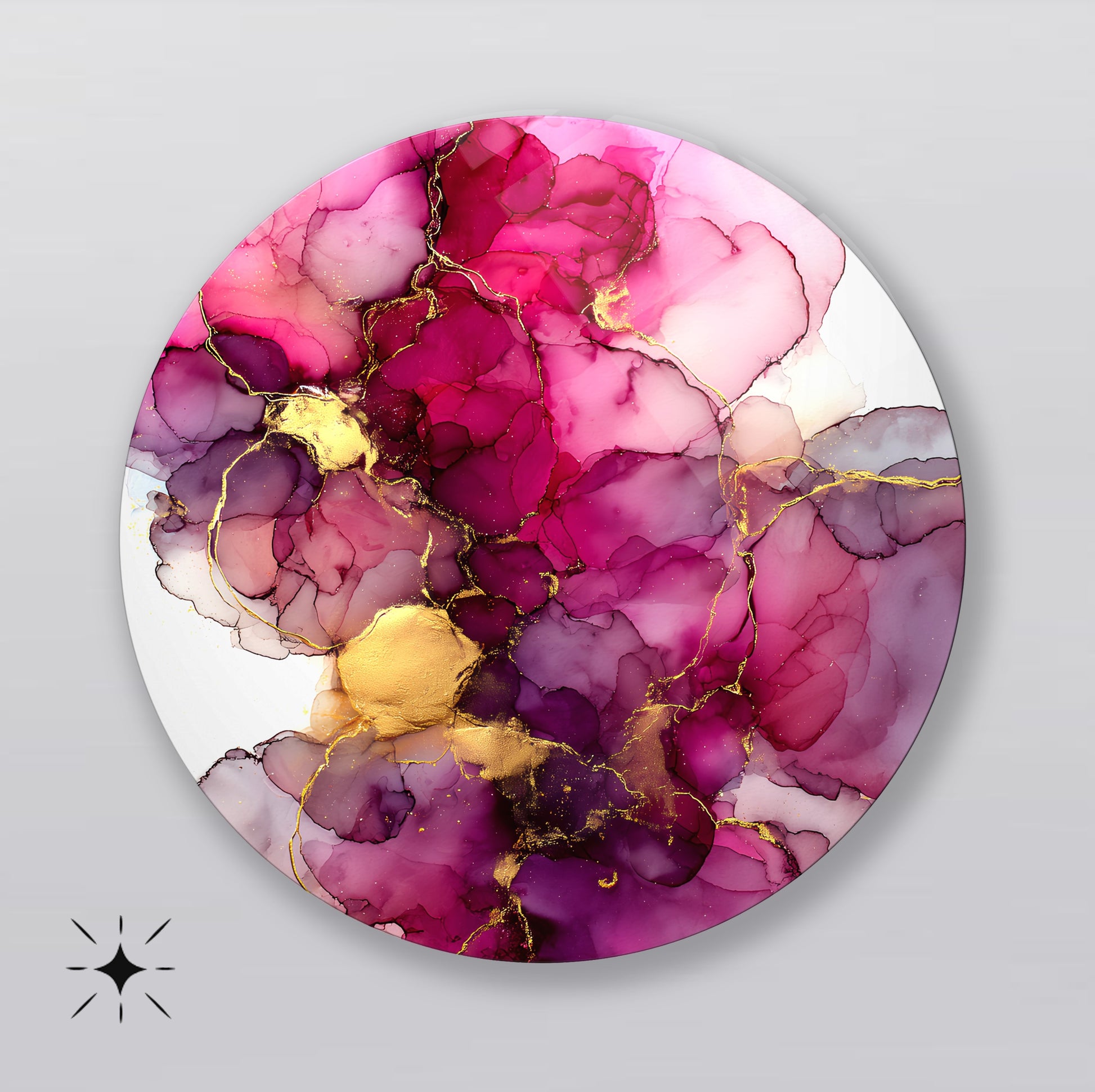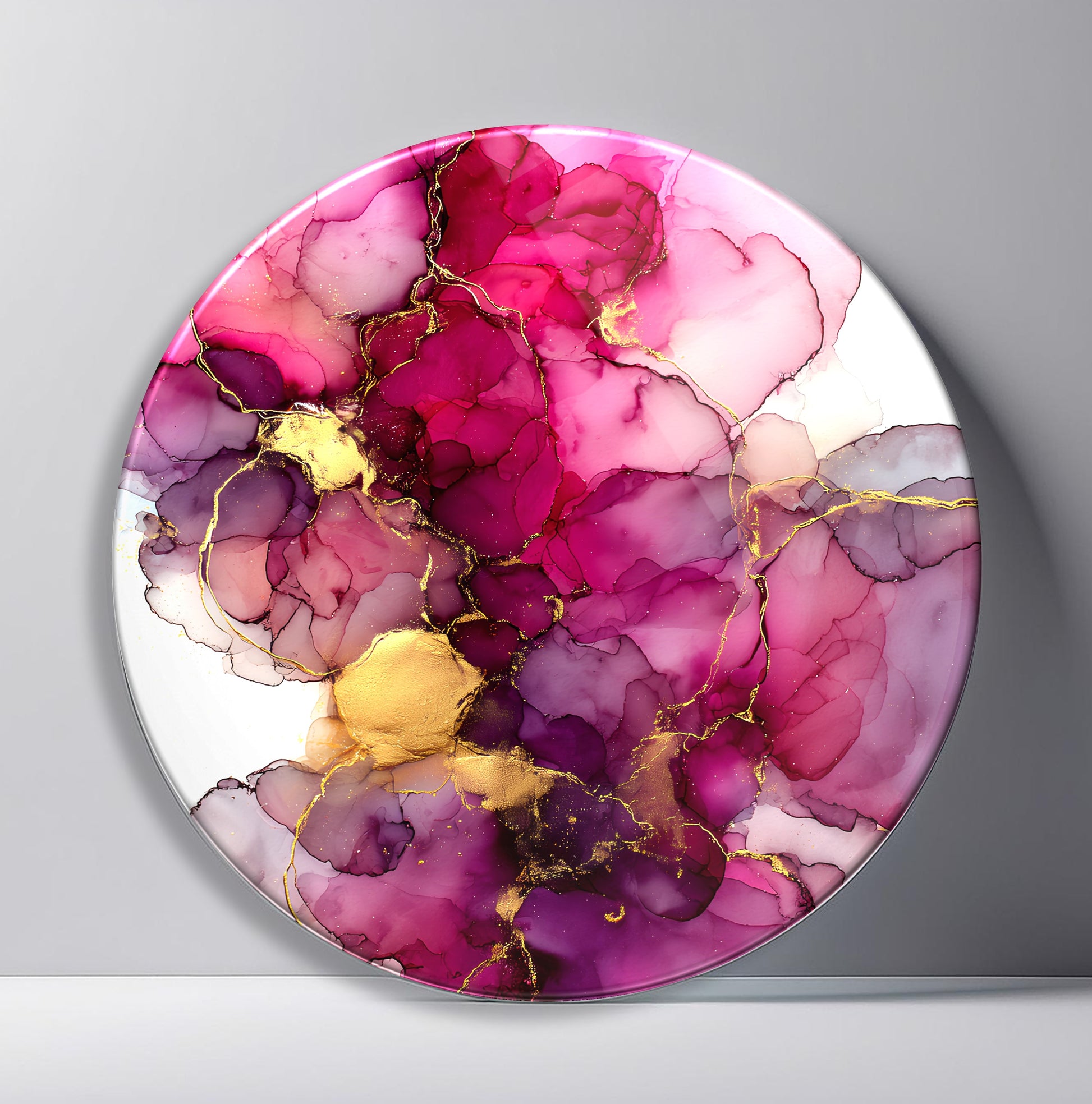 Soyut Mermer Desen Yuvarlak Cam Tablo