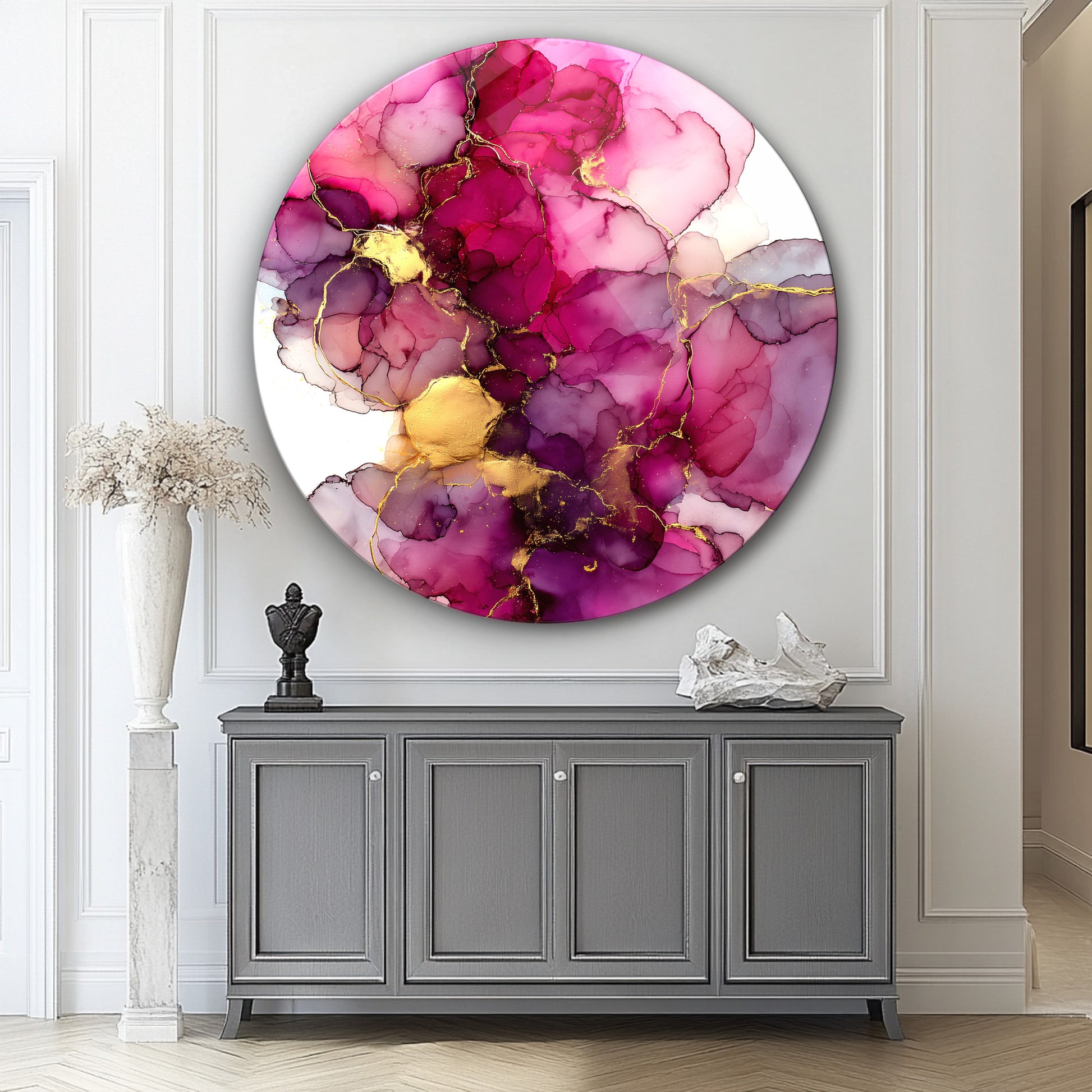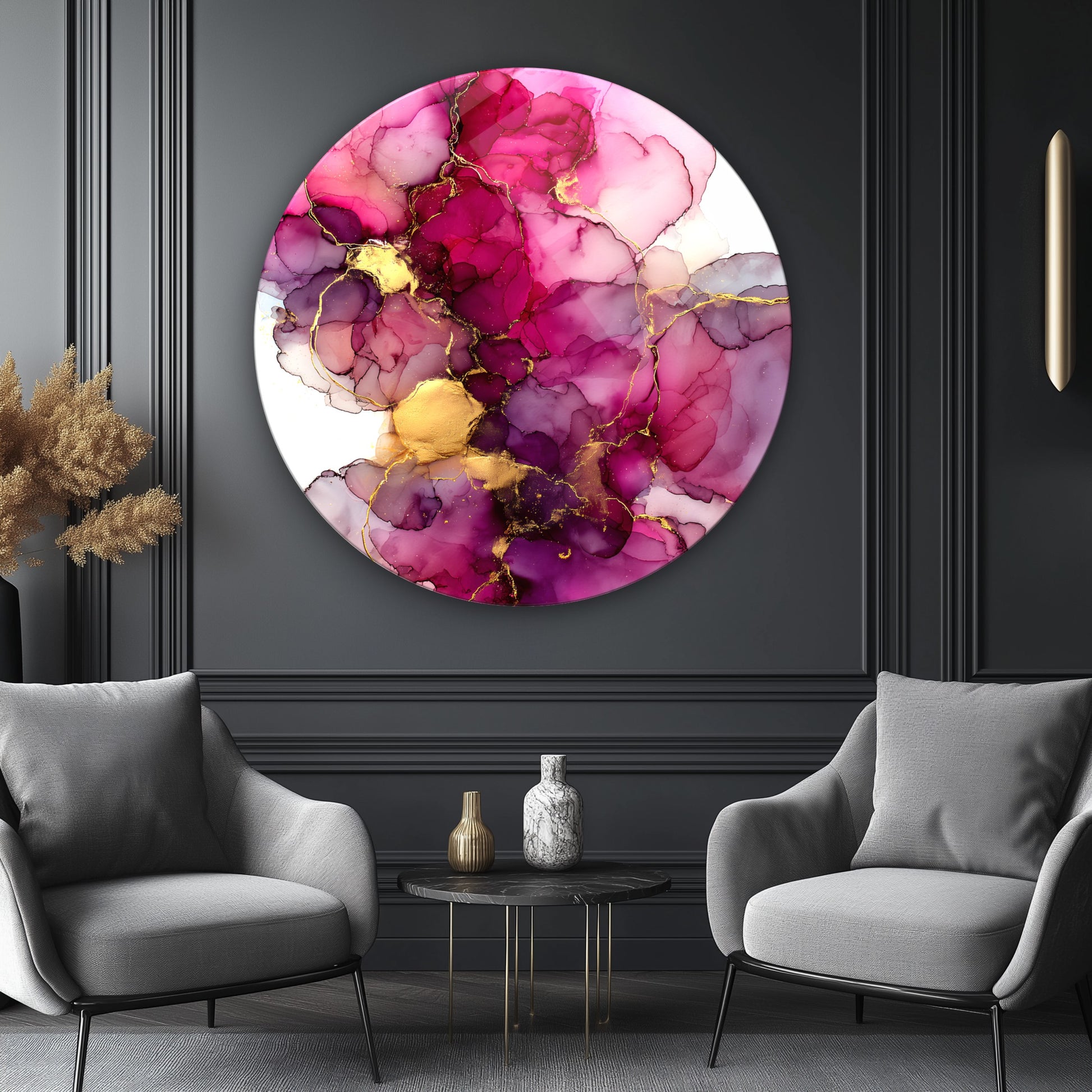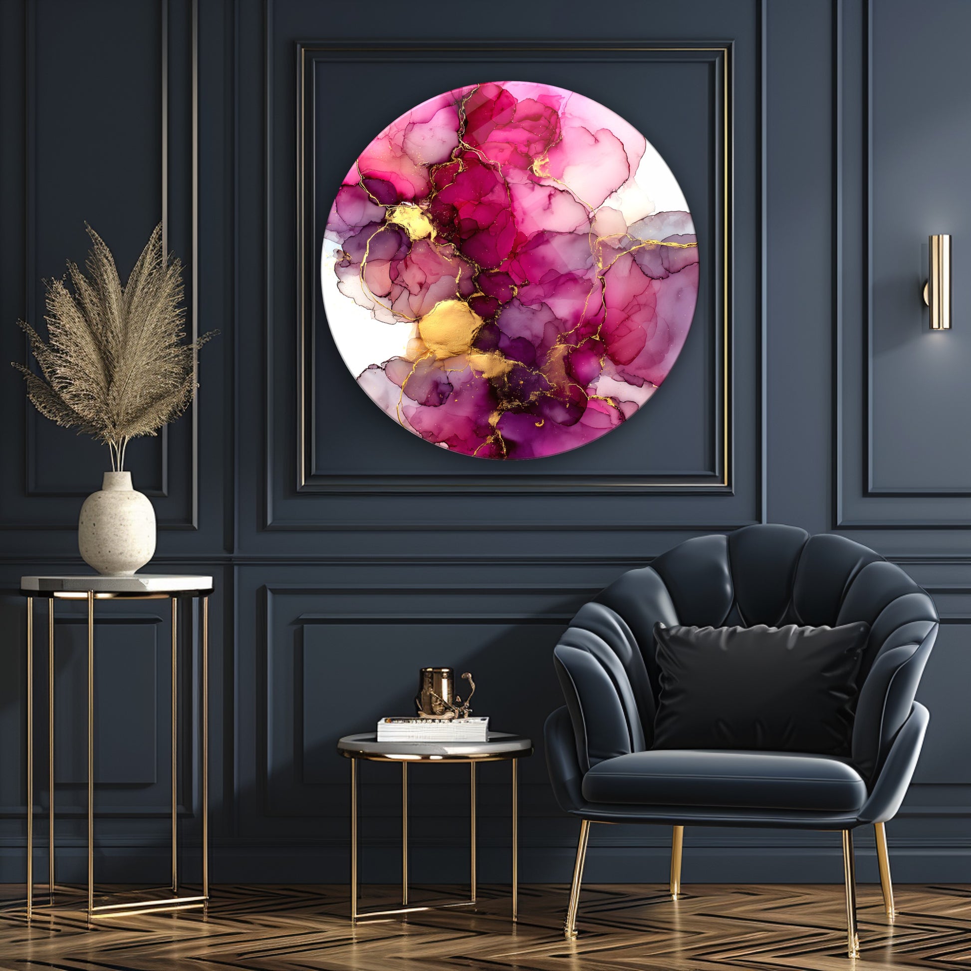 Soyut Mermer Desen Yuvarlak Cam Tablo