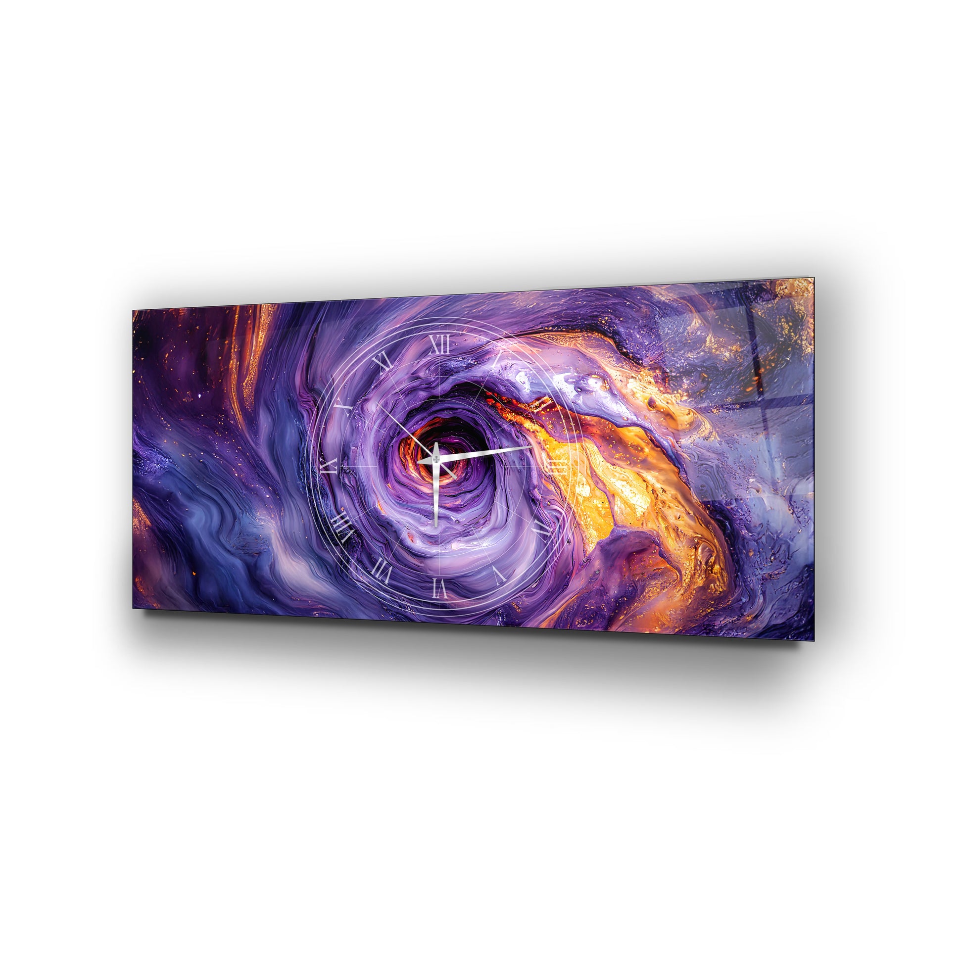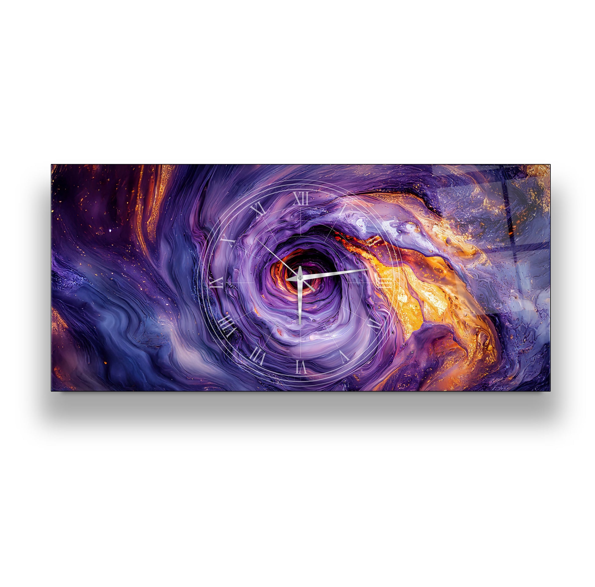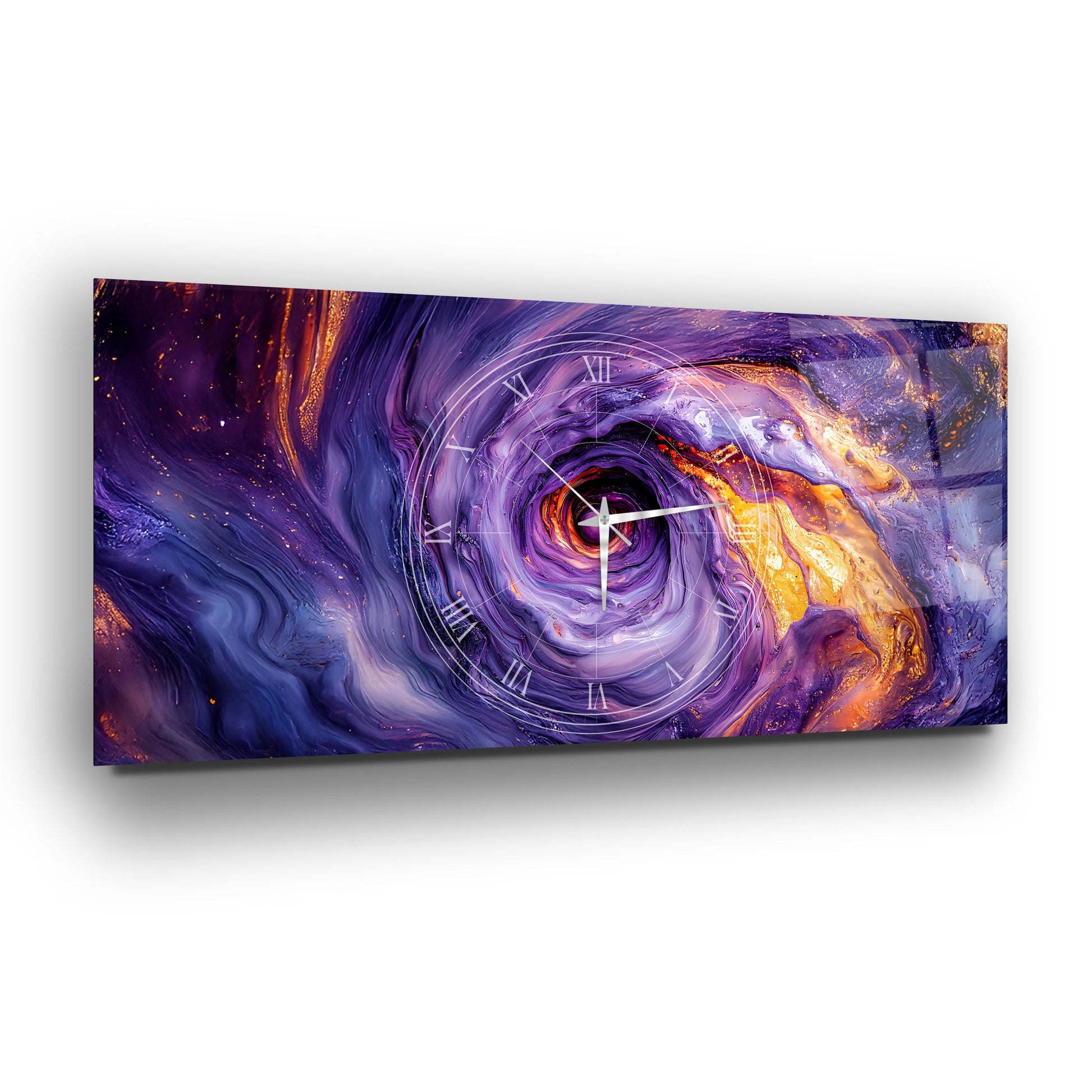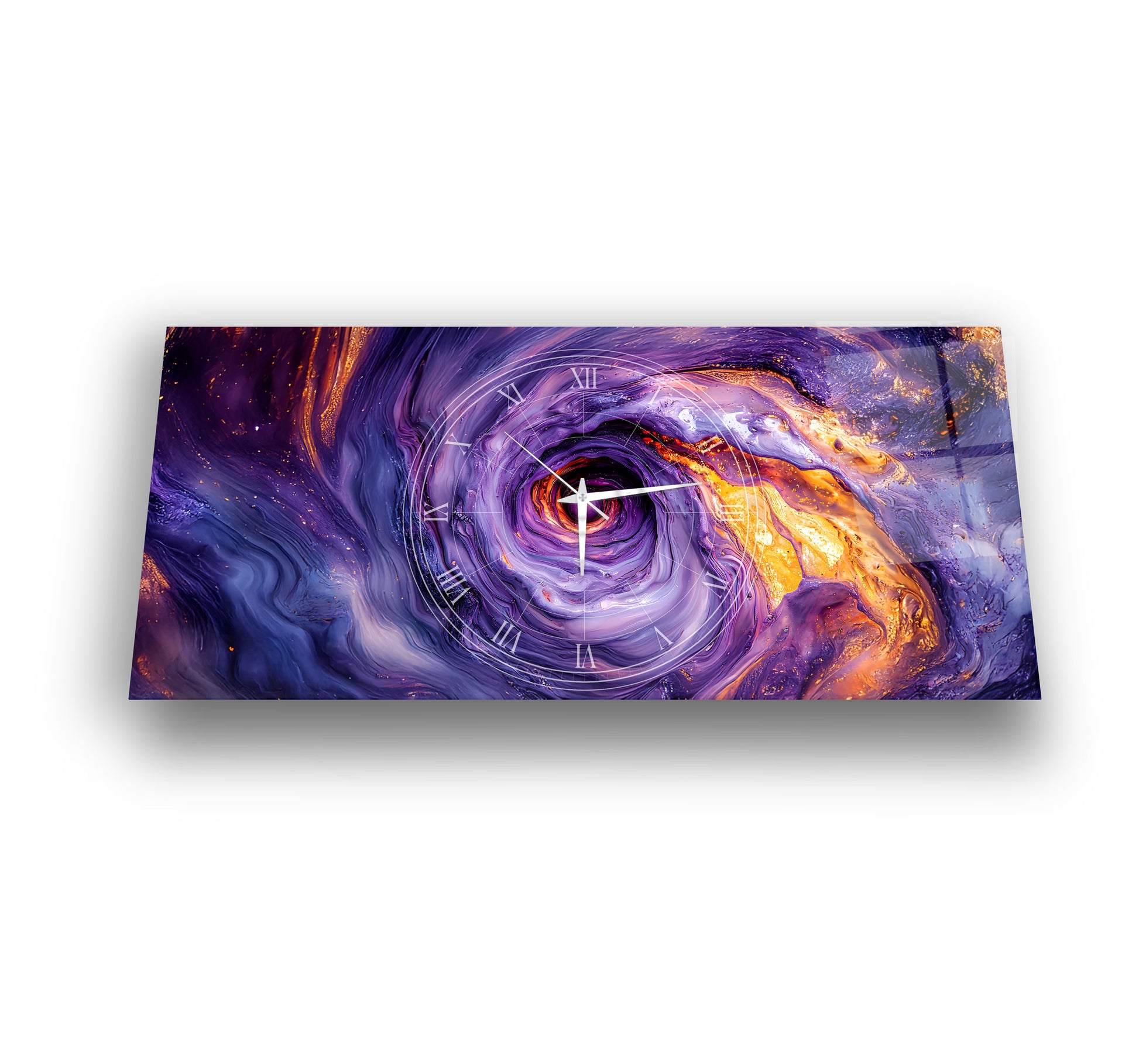 Soyut Mor Girdap Cam Duvar Saati