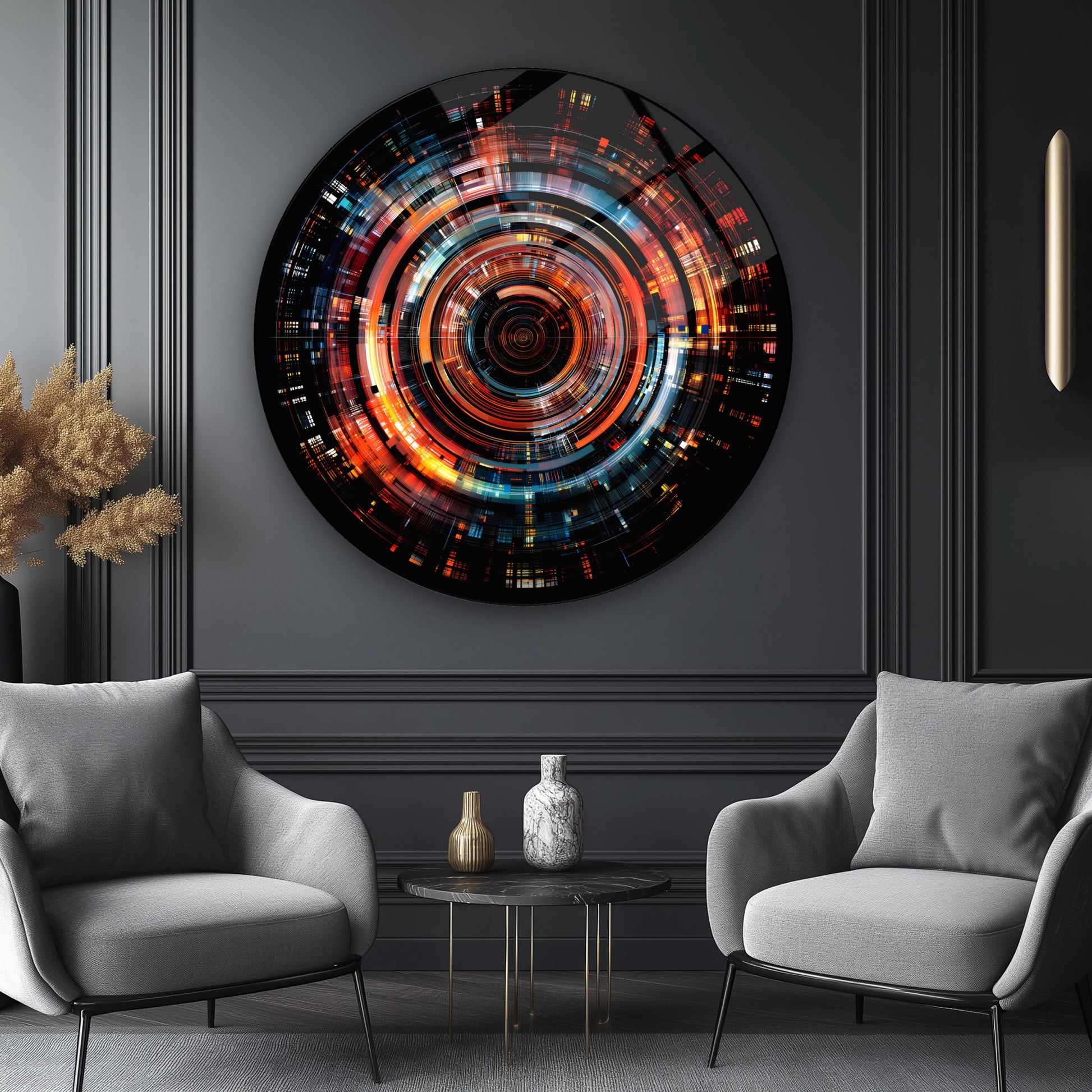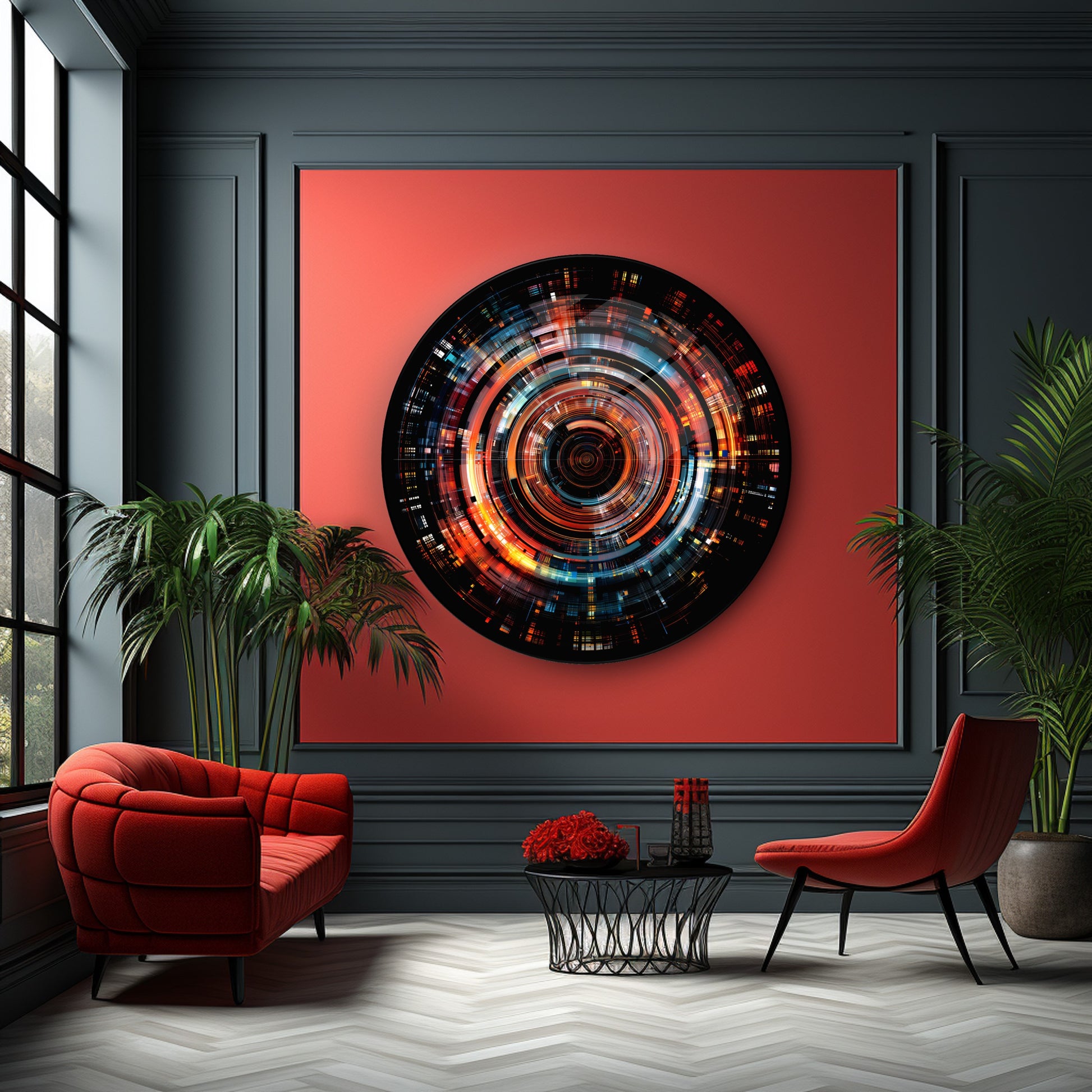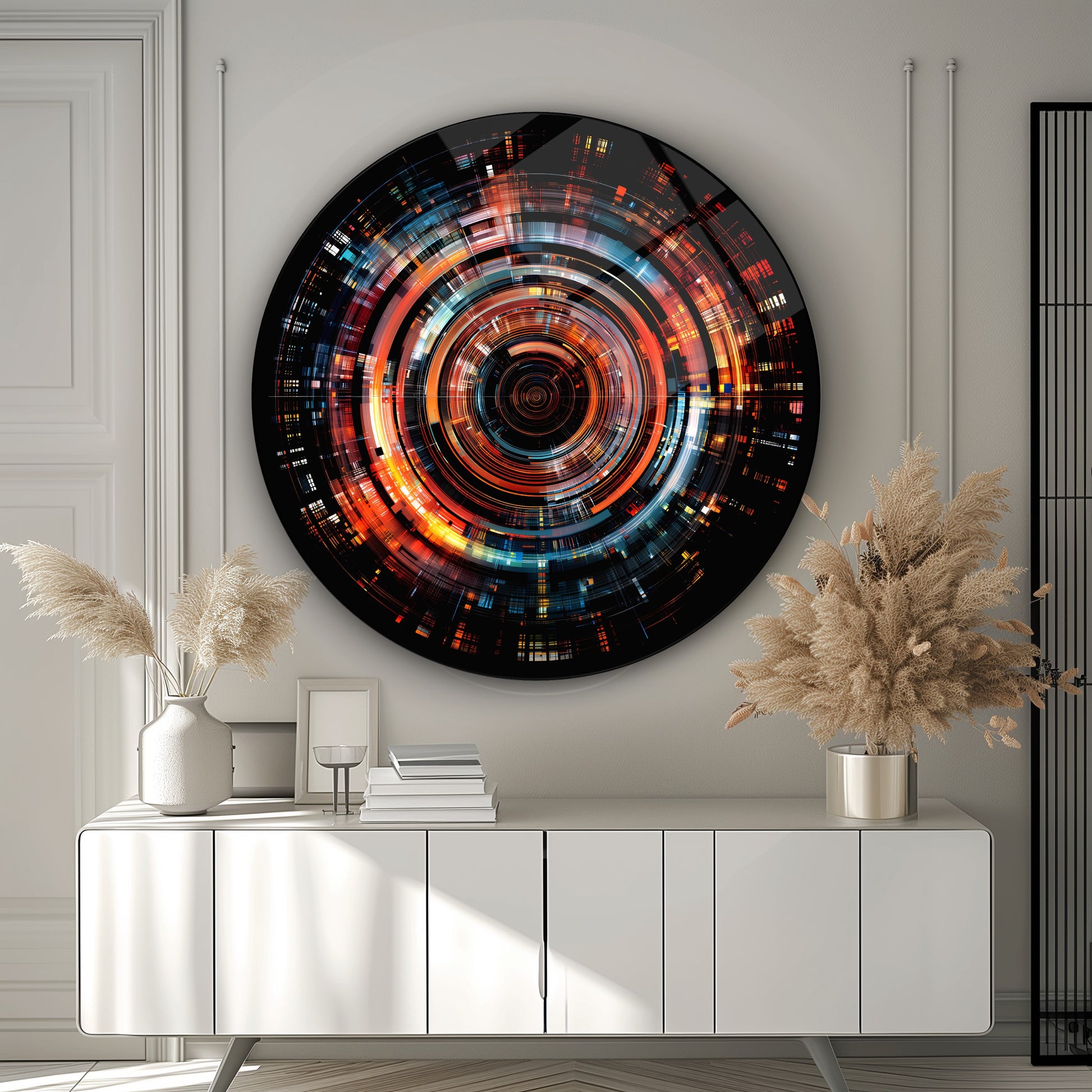 Soyut Renkli Lens Renkler Yuvarlak Cam Tablo