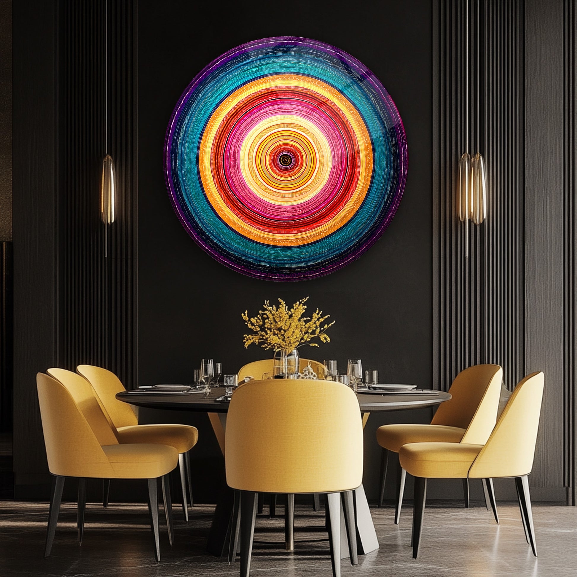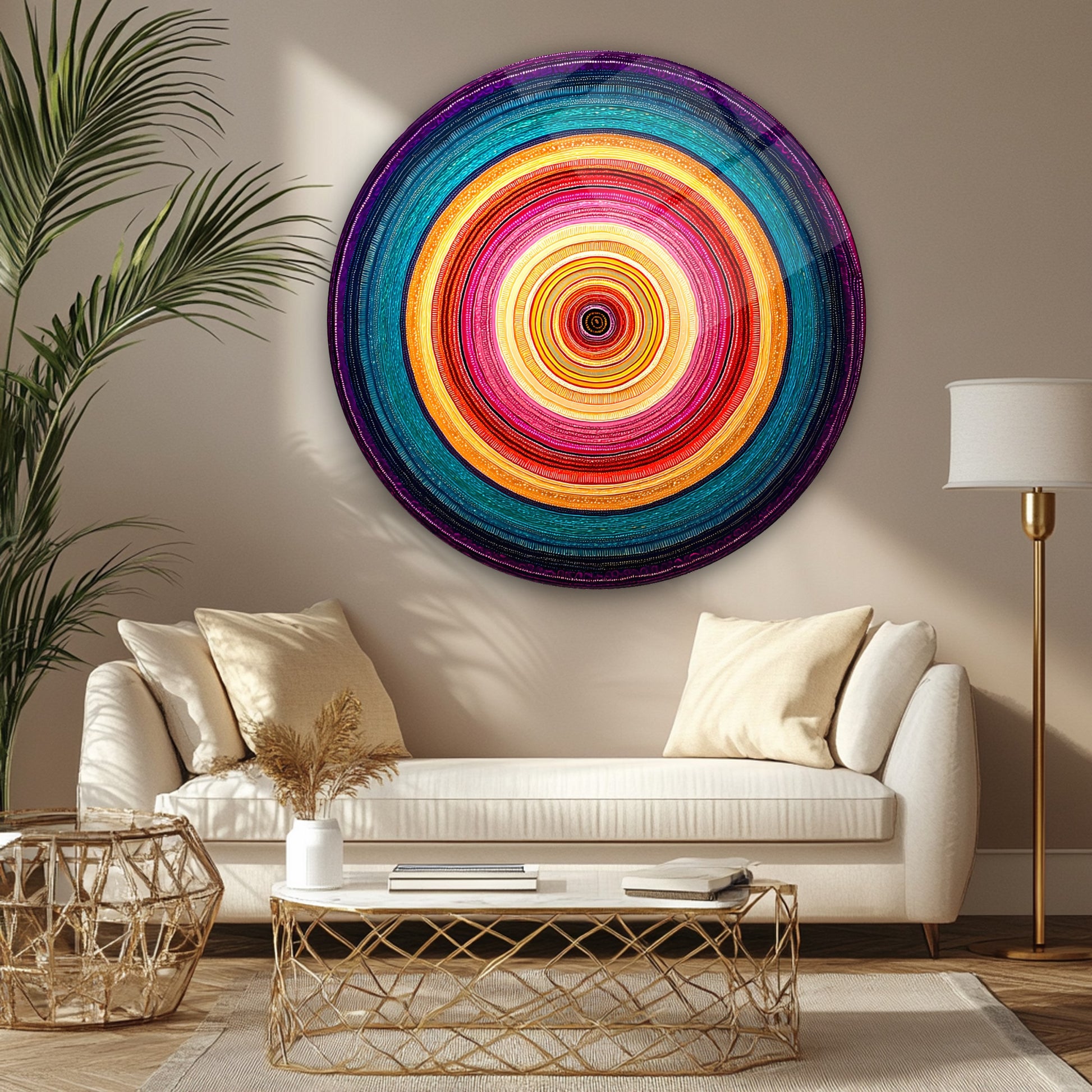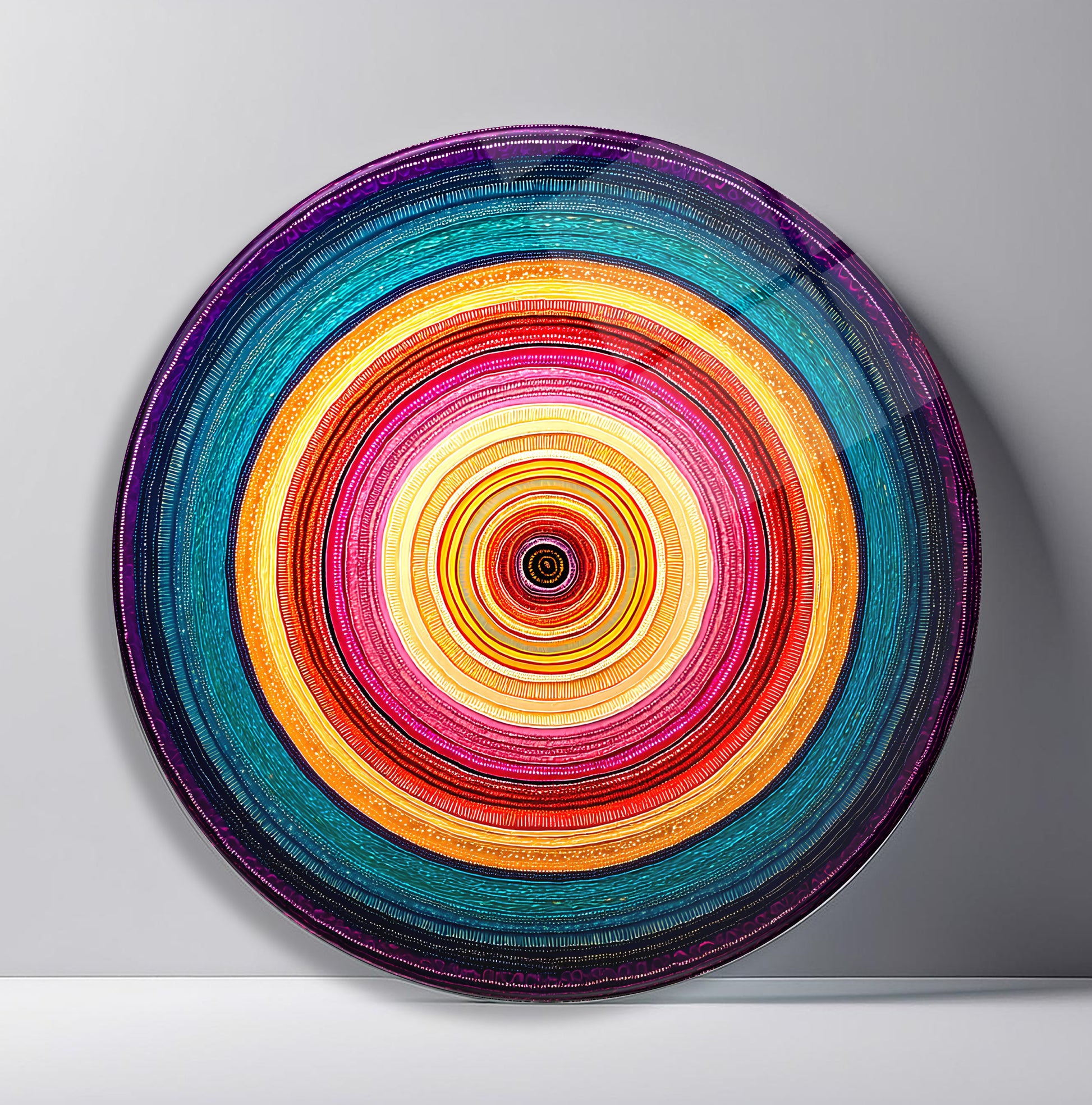 Soyut Renkli Halkalar Yuvarlak Cam Tablo