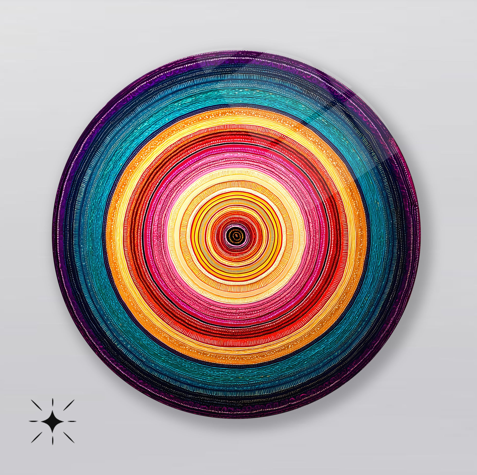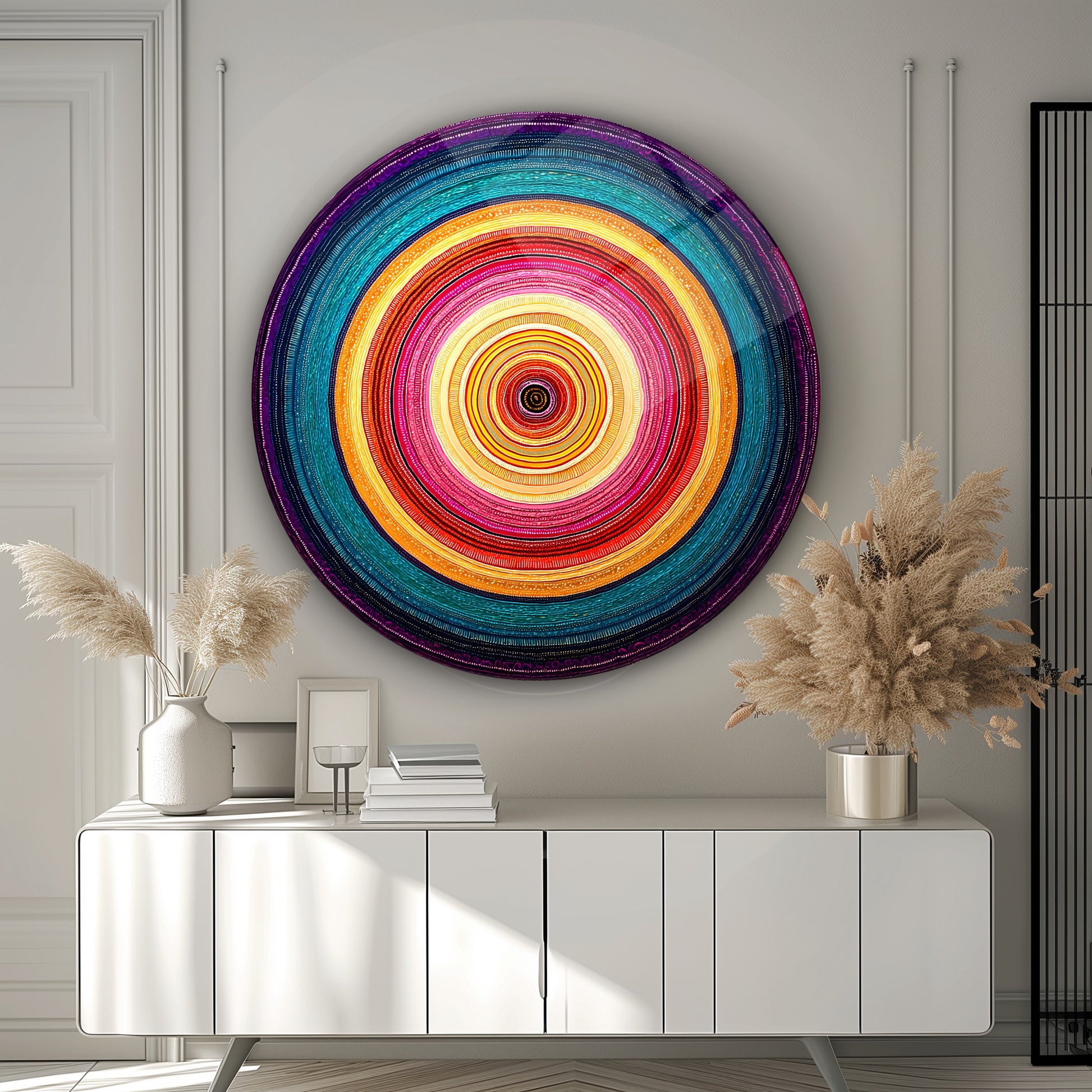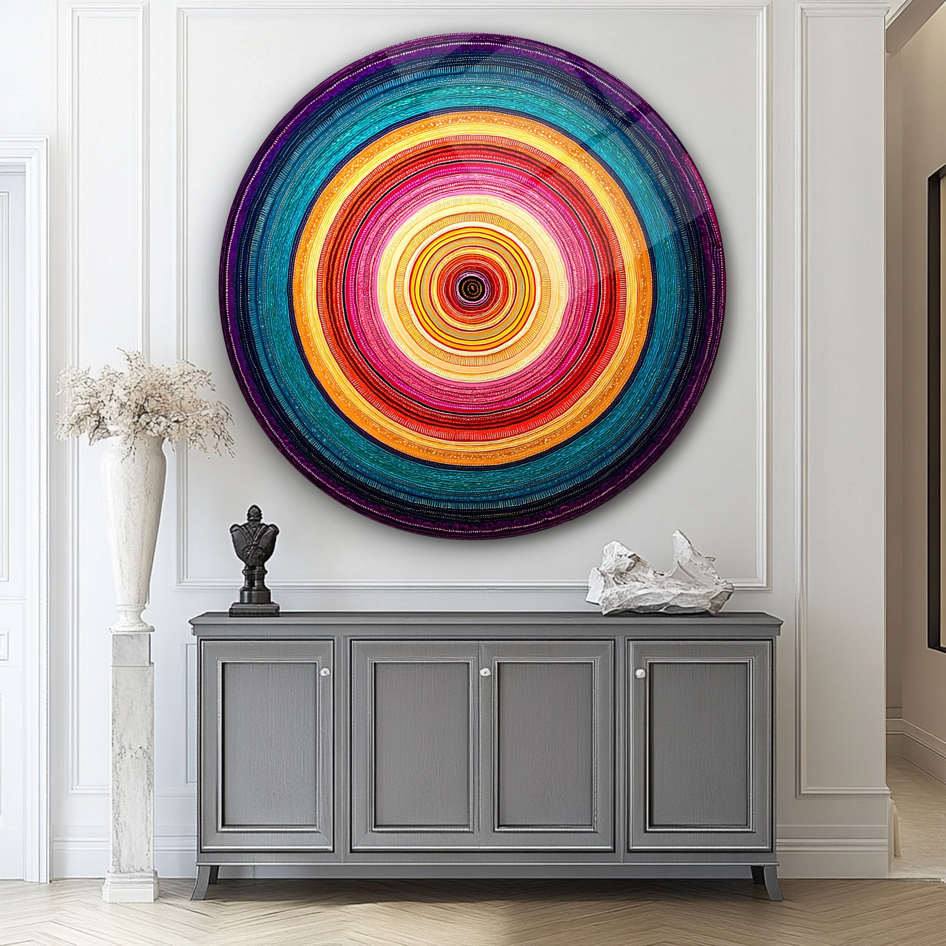 Soyut Renkli Halkalar Yuvarlak Cam Tablo