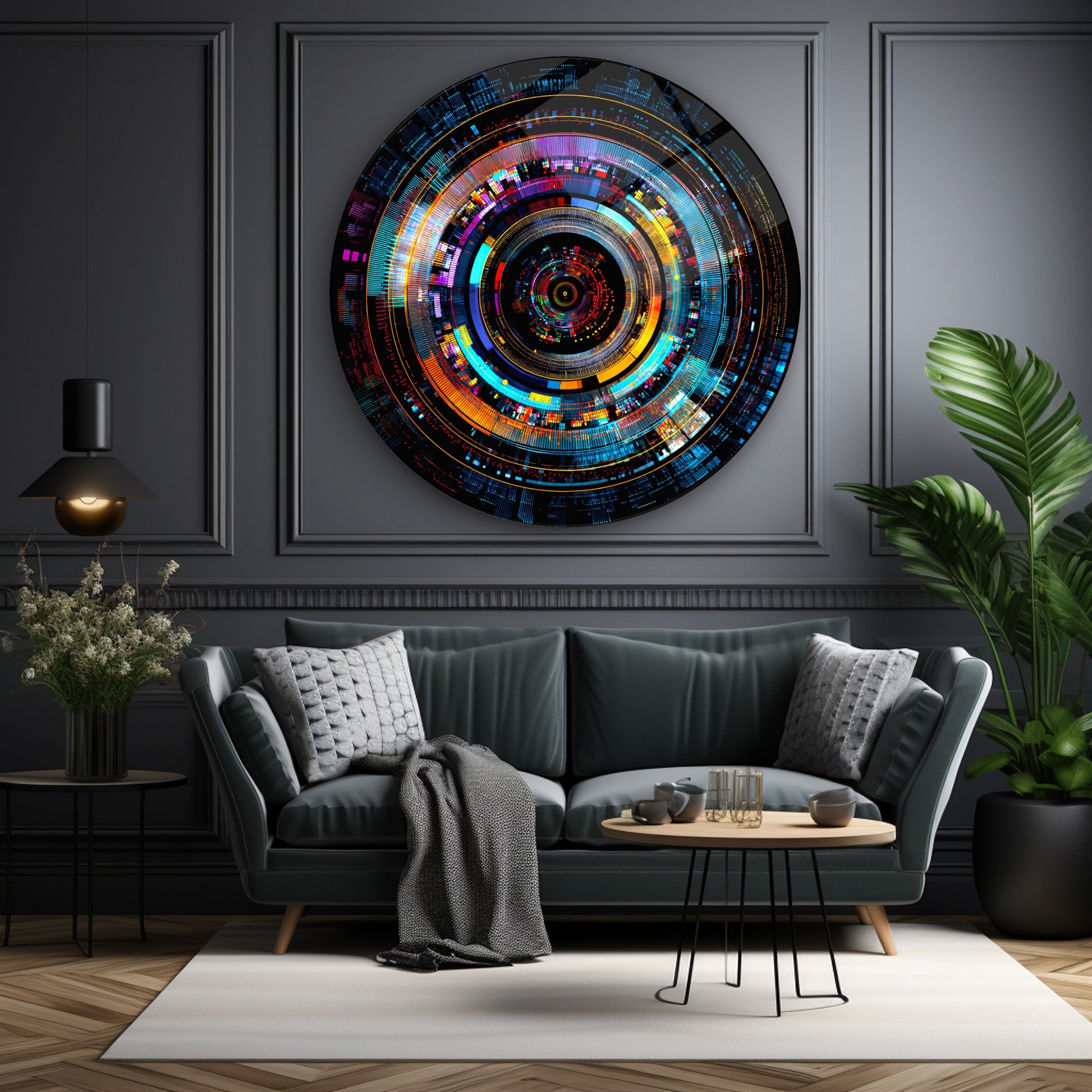 Renkli Soyut Lens Yuvarlak Cam Tablo