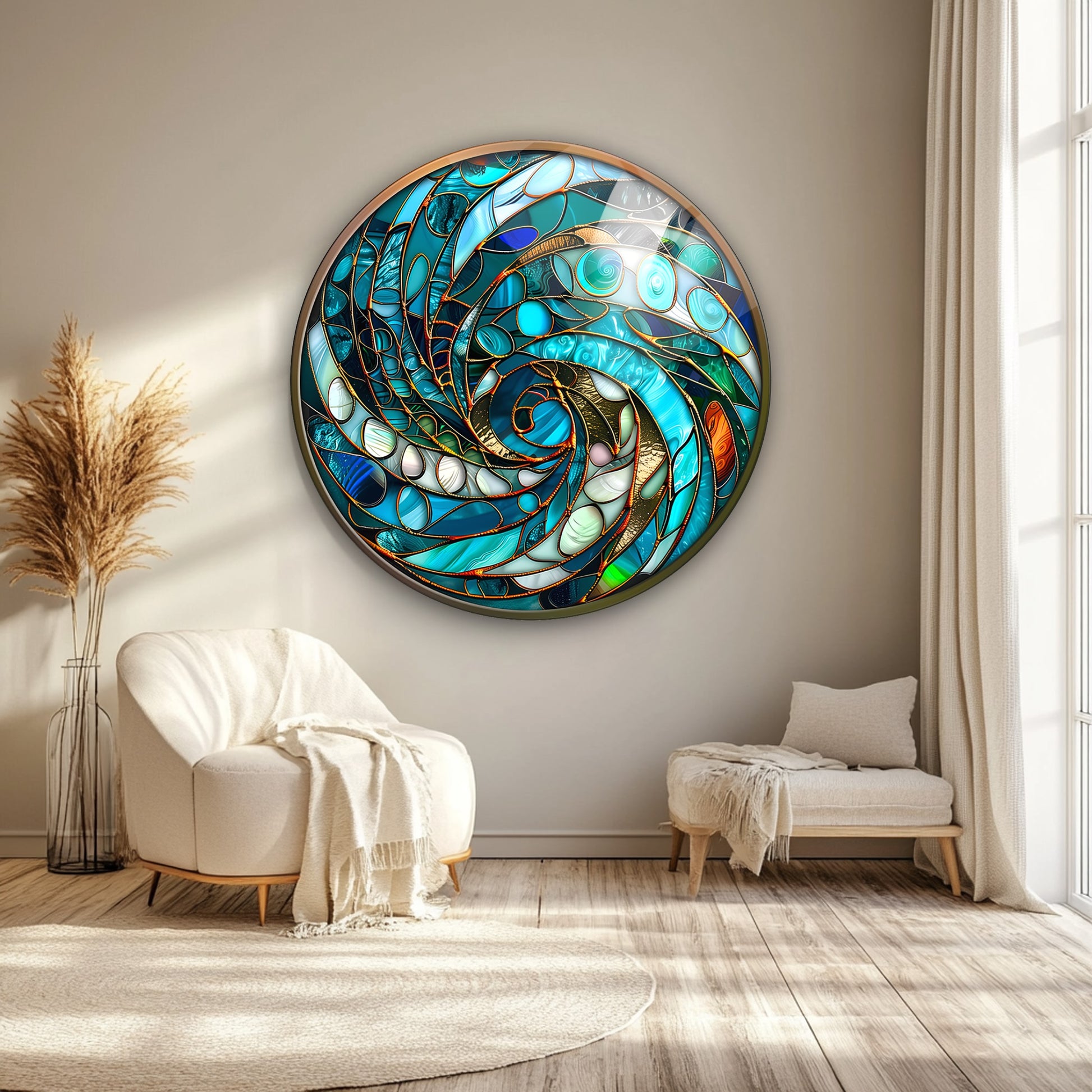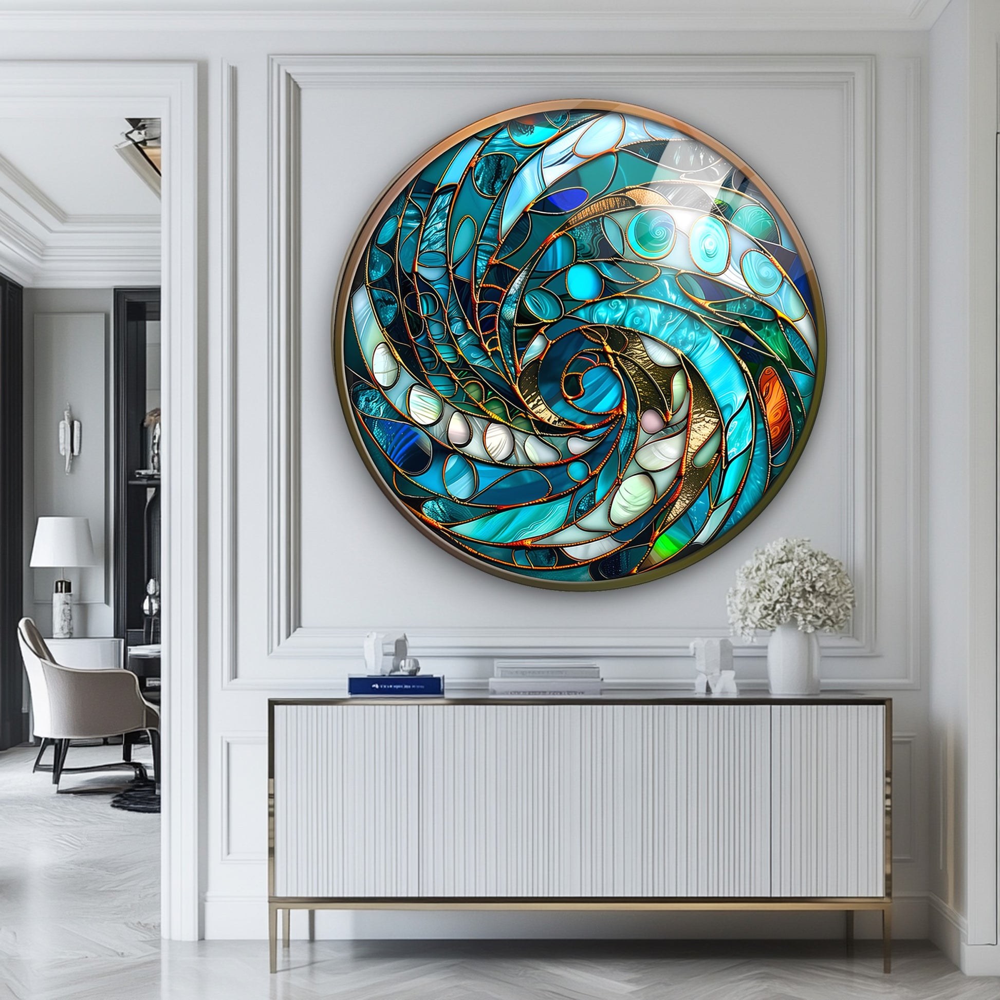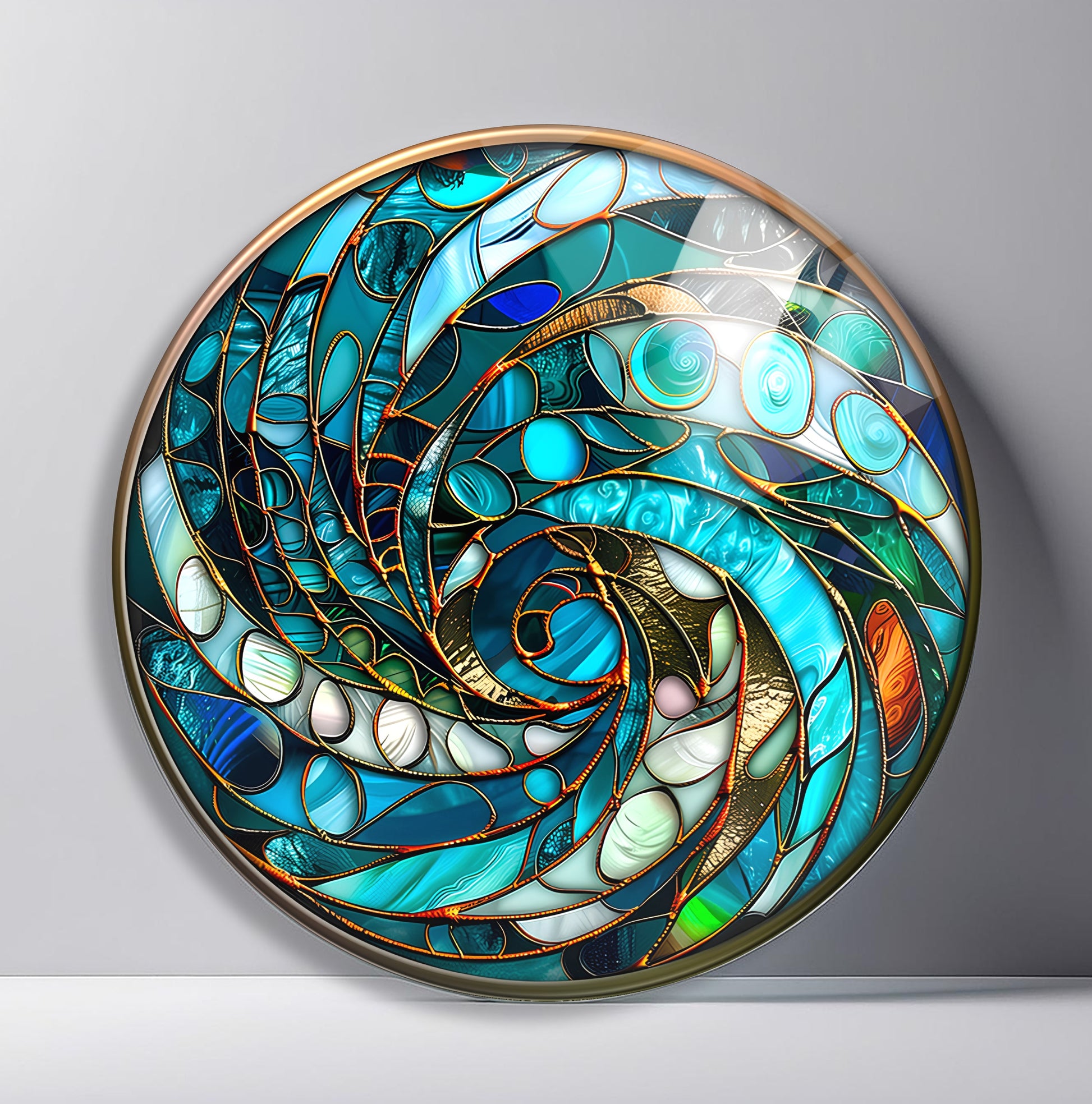 Soyut Renkli Vitray Yuvarlak Cam Tablo