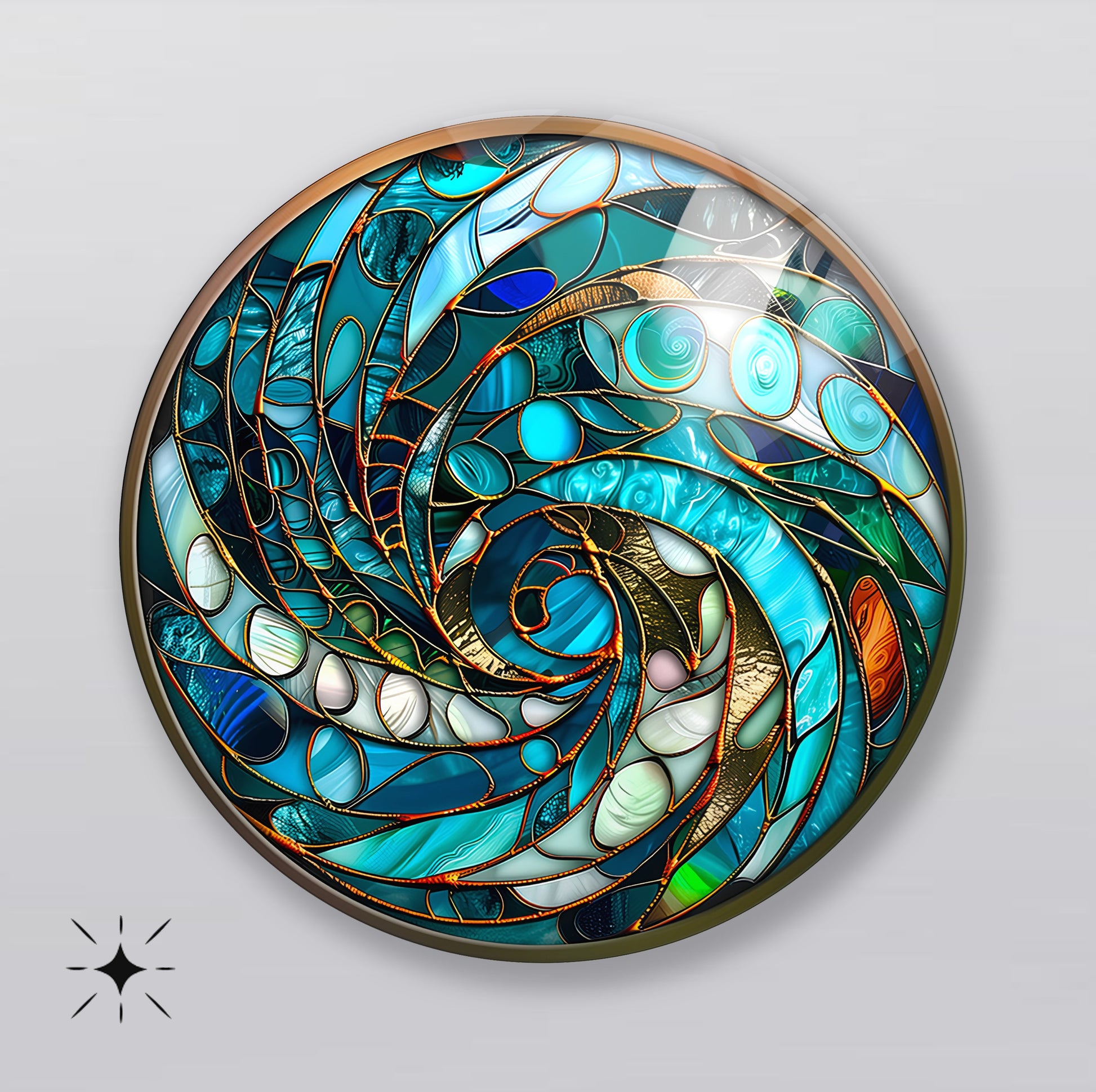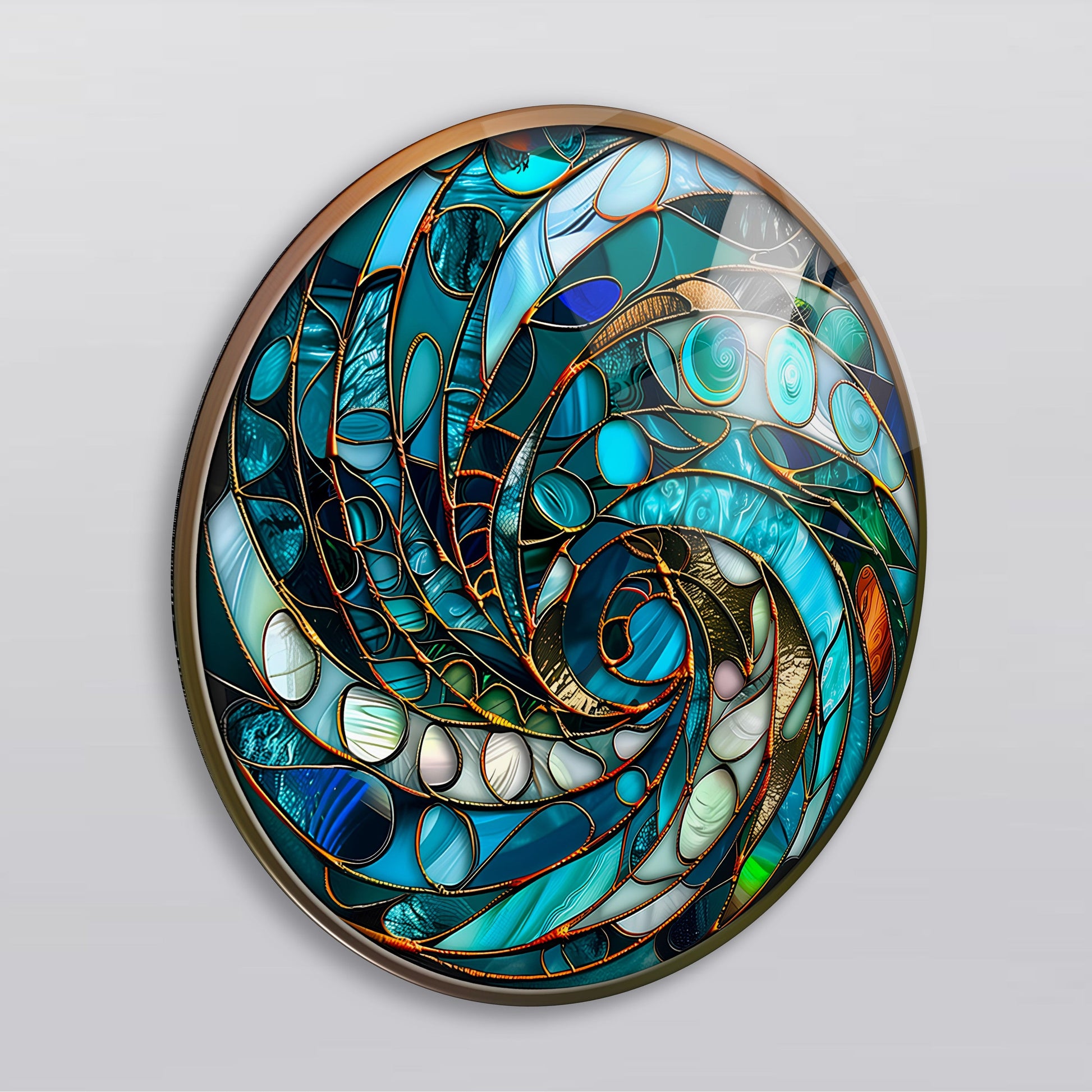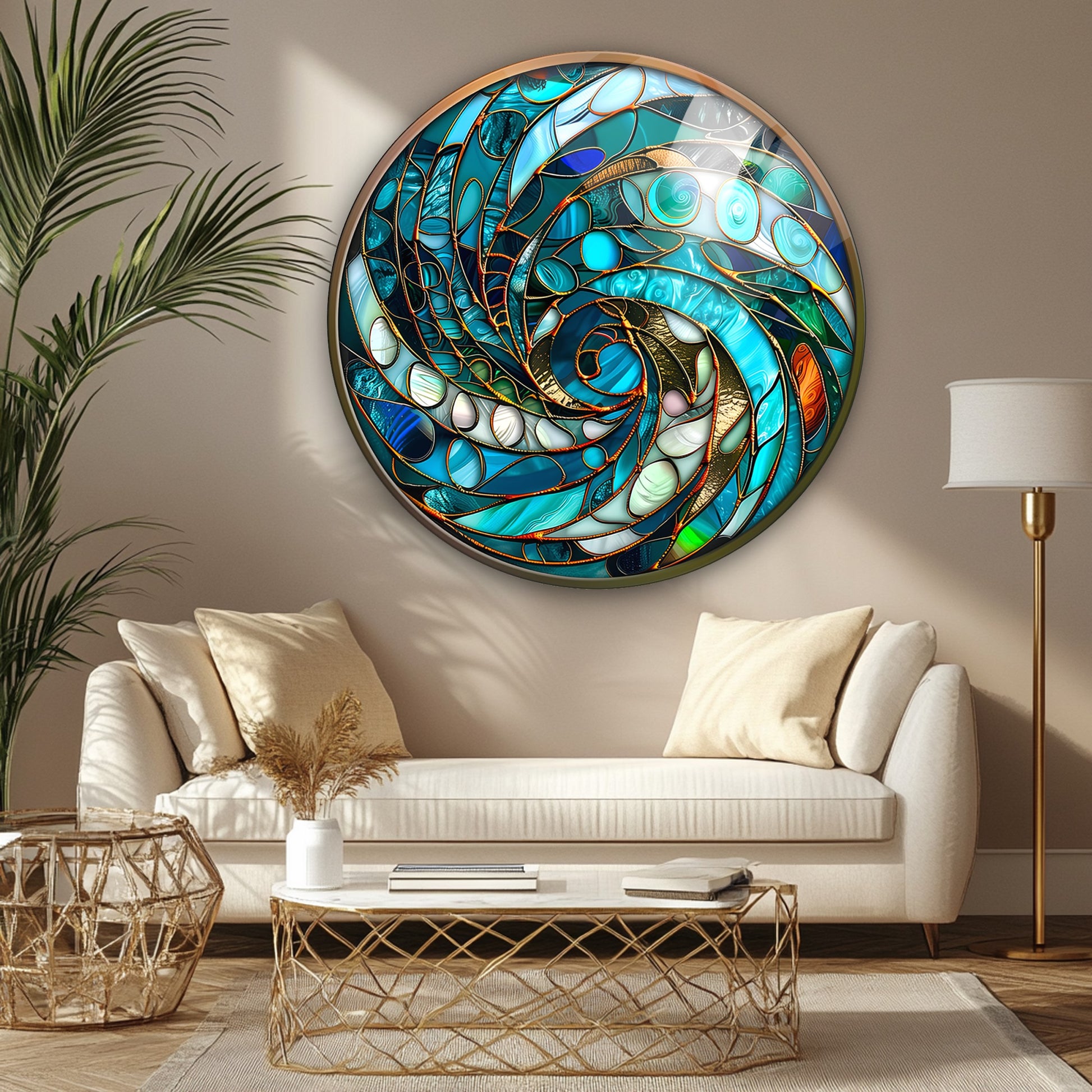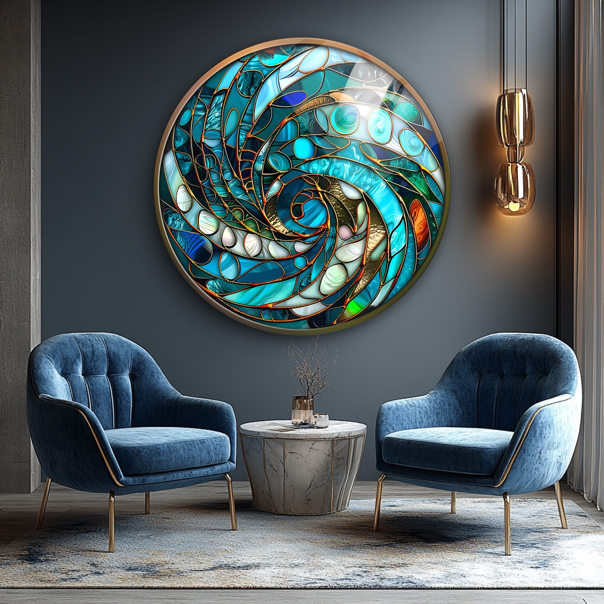Soyut Renkli Vitray Yuvarlak Cam Tablo