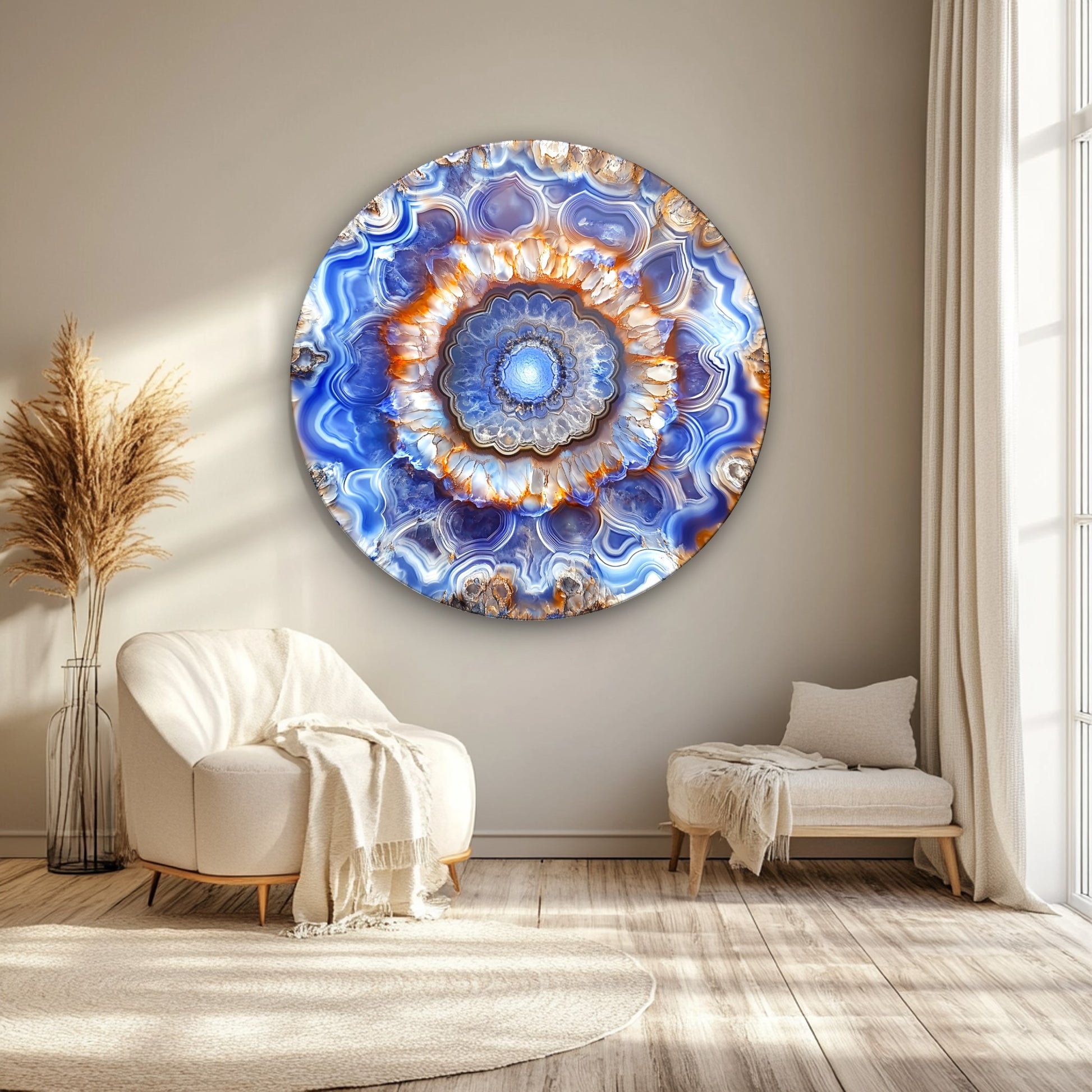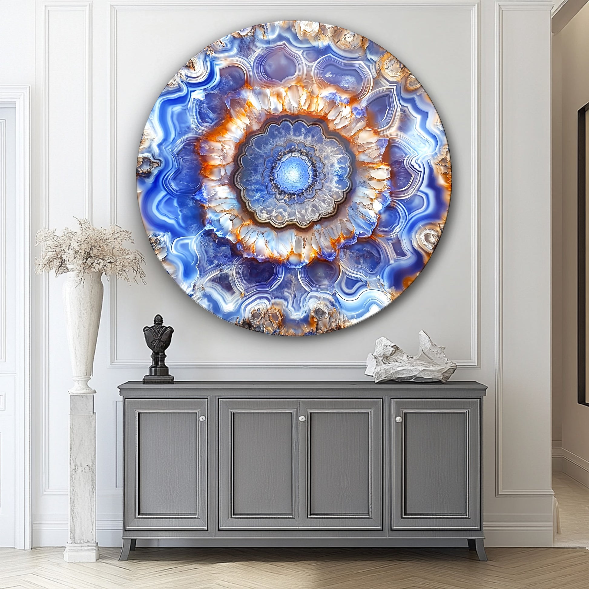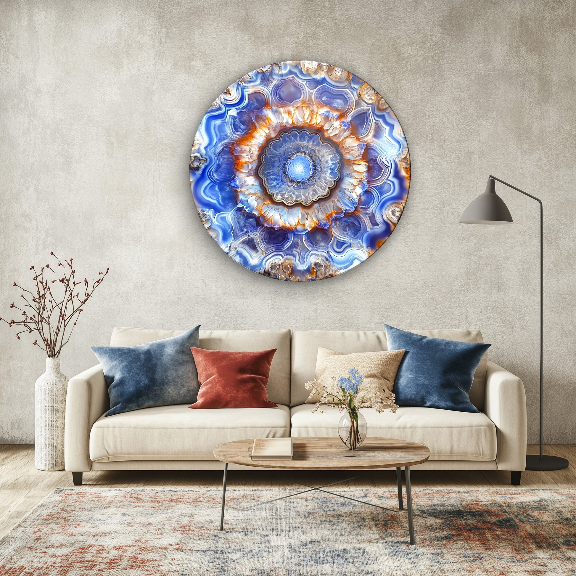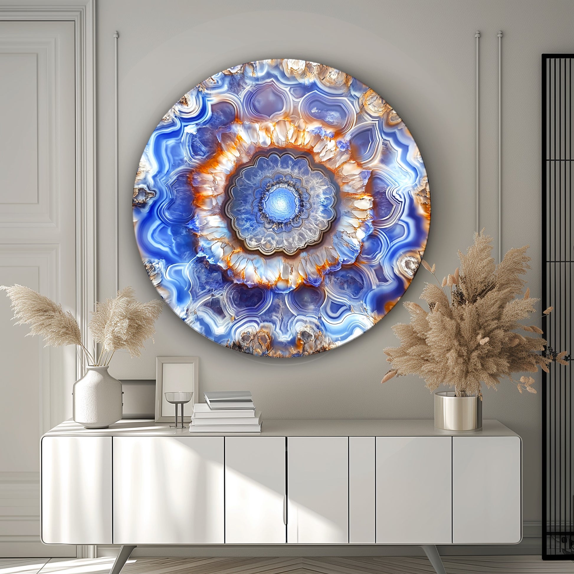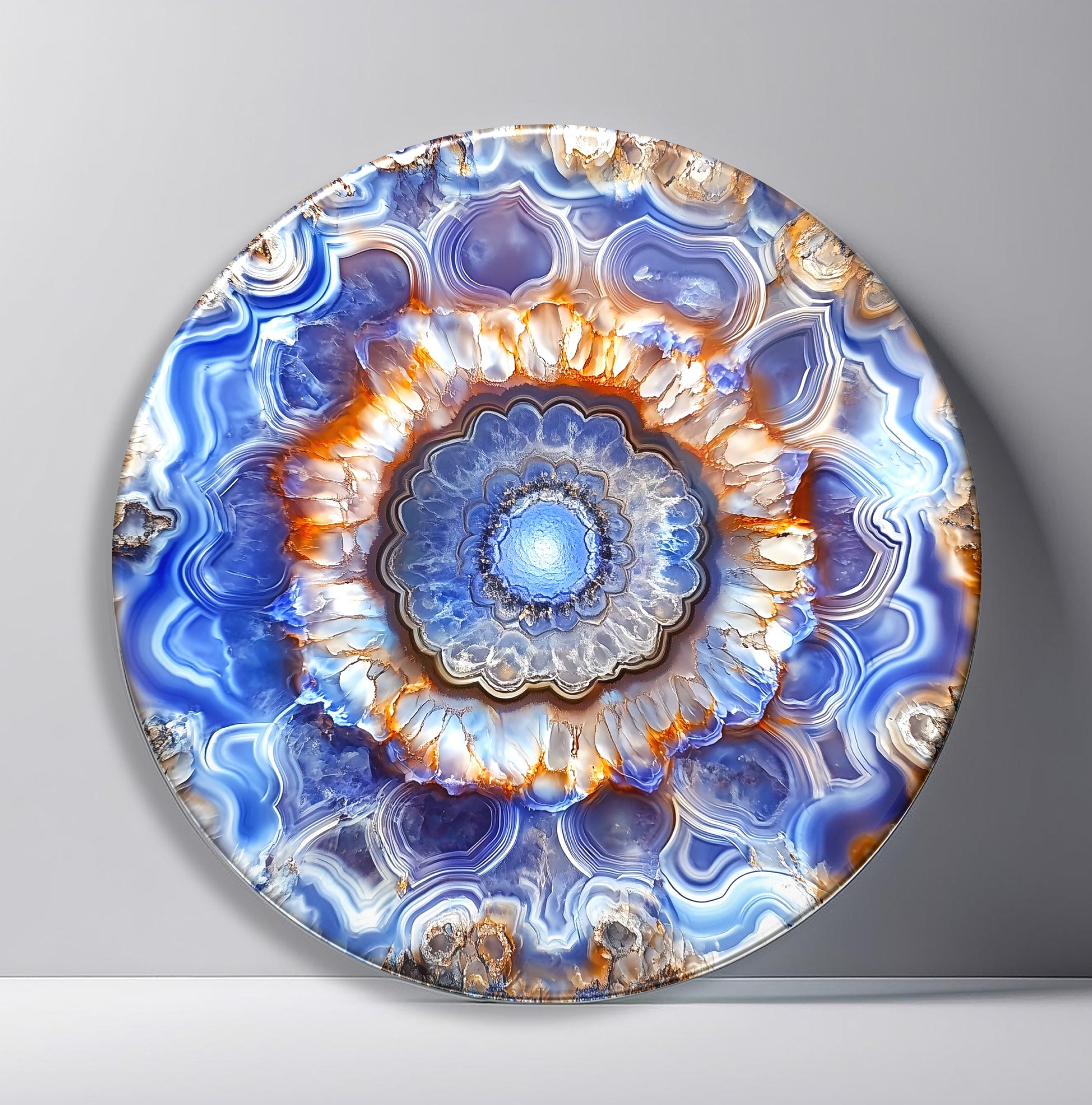 Soyut Mermer Desen Yuvarlak Cam Tablo
