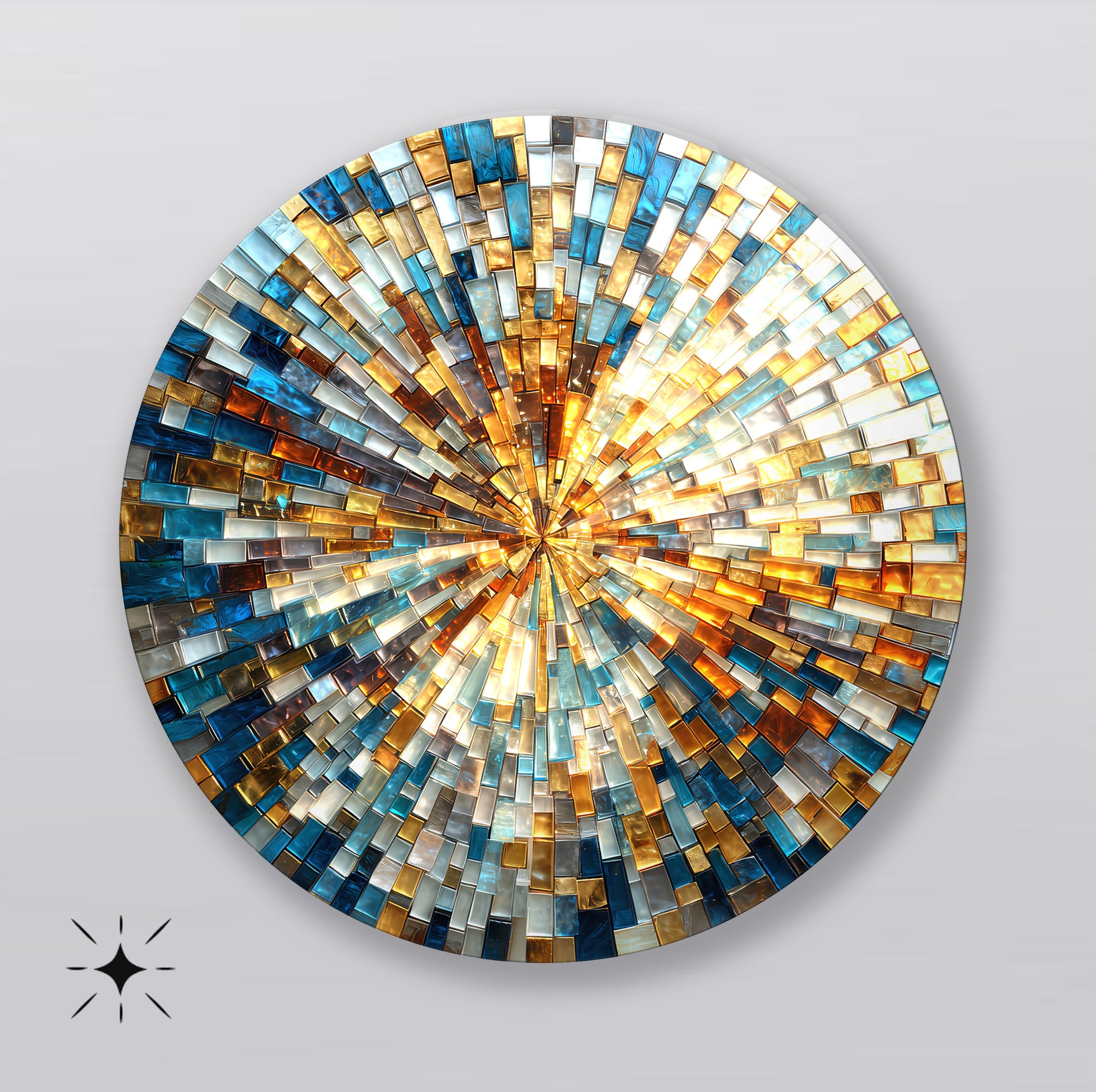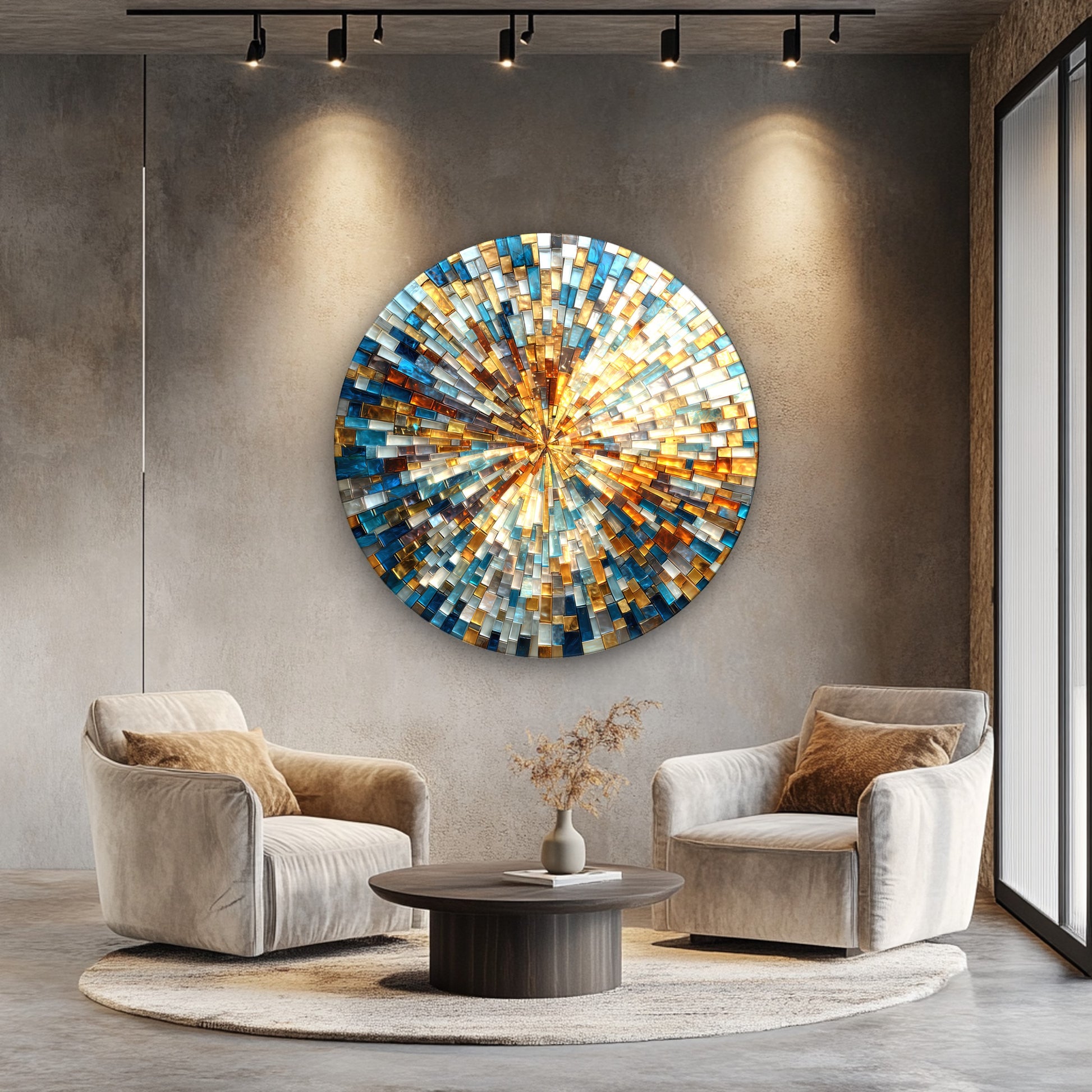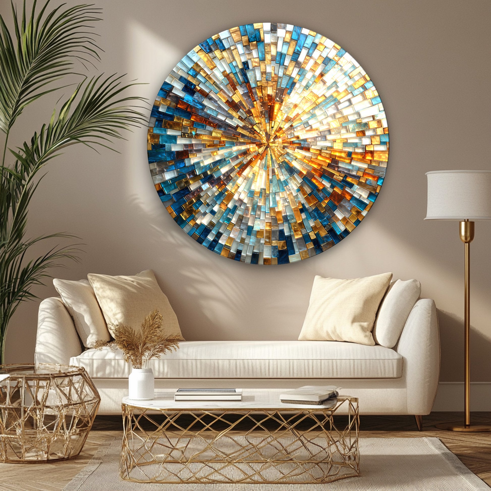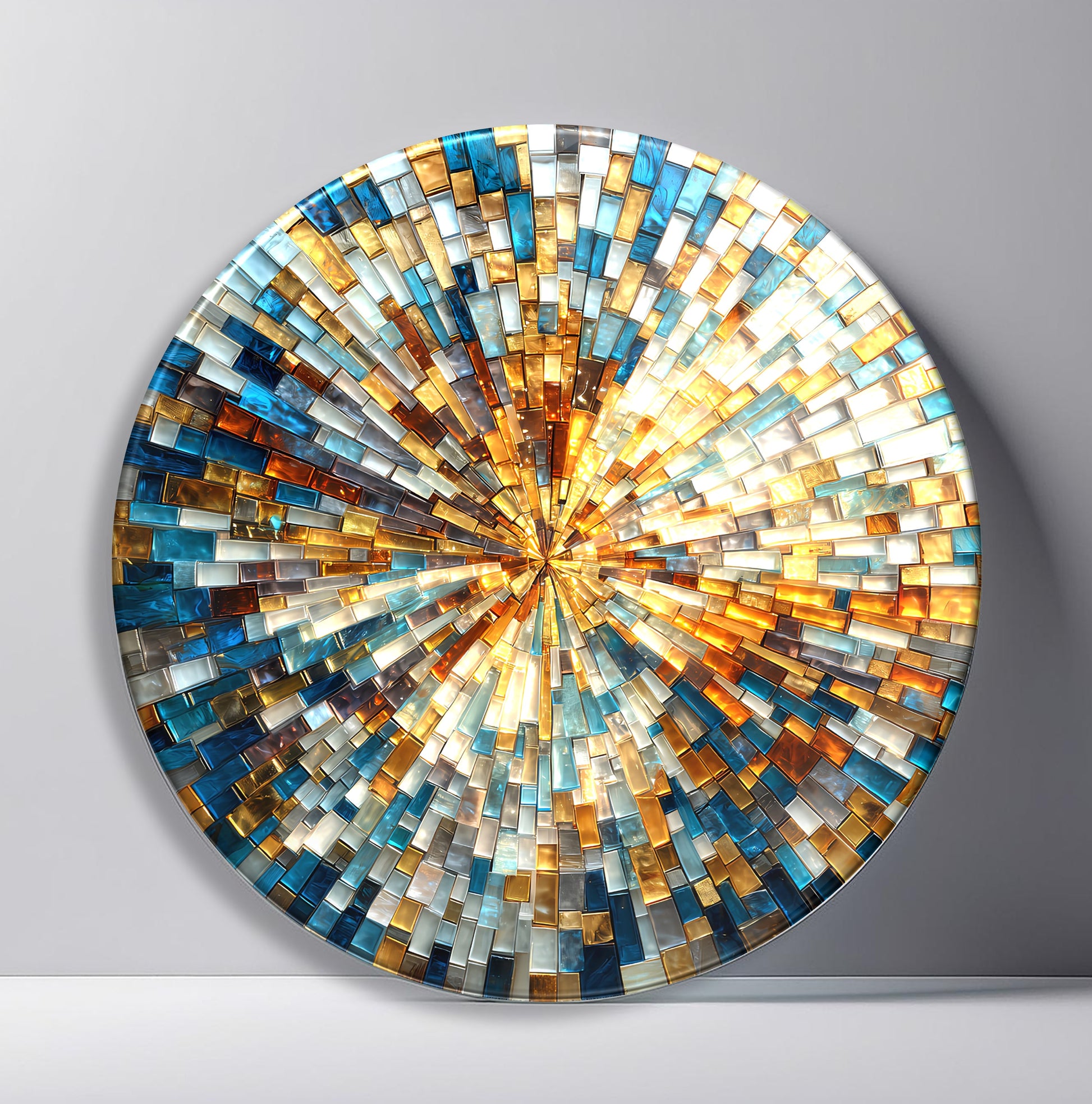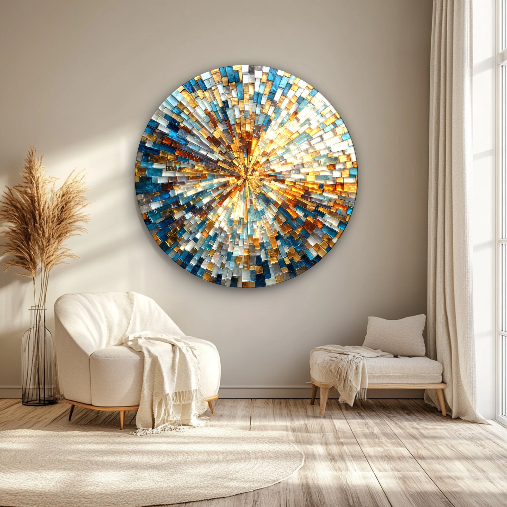 Soyut Renkli Mozaik Yuvarlak Cam Tablo