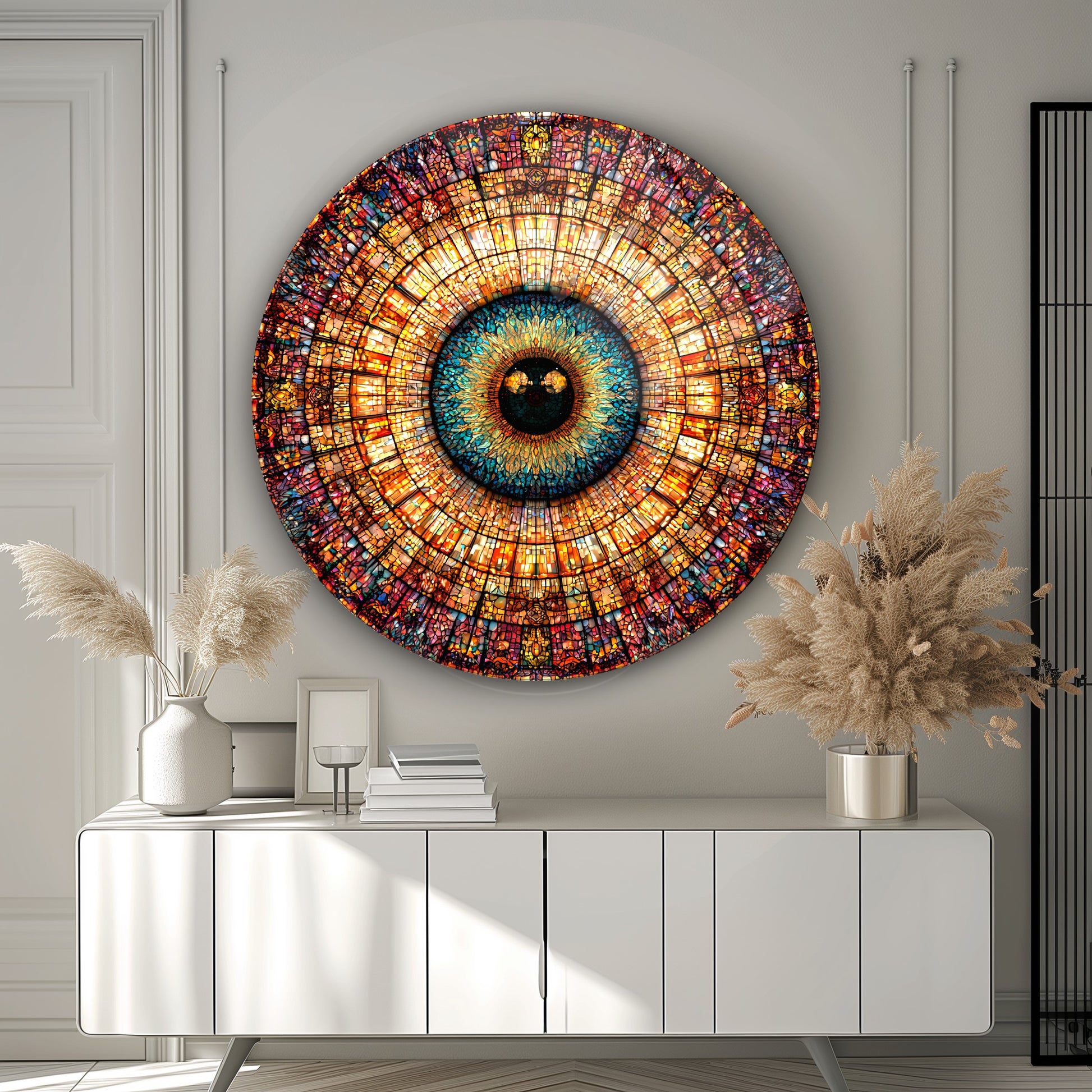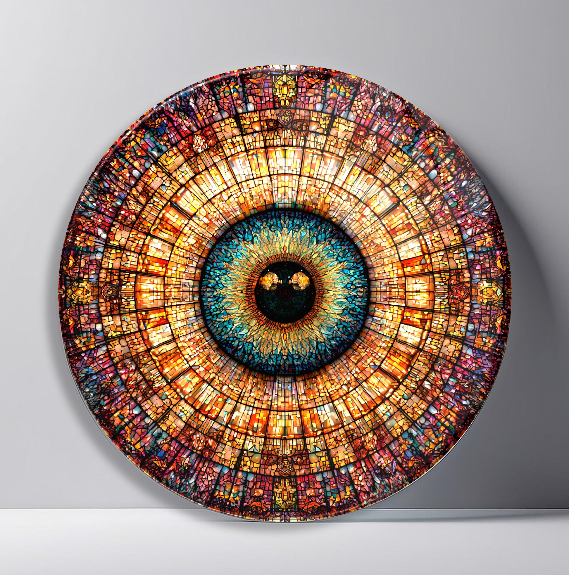 Vitray Desen Göz Bebeği Yuvarlak Cam Tablo