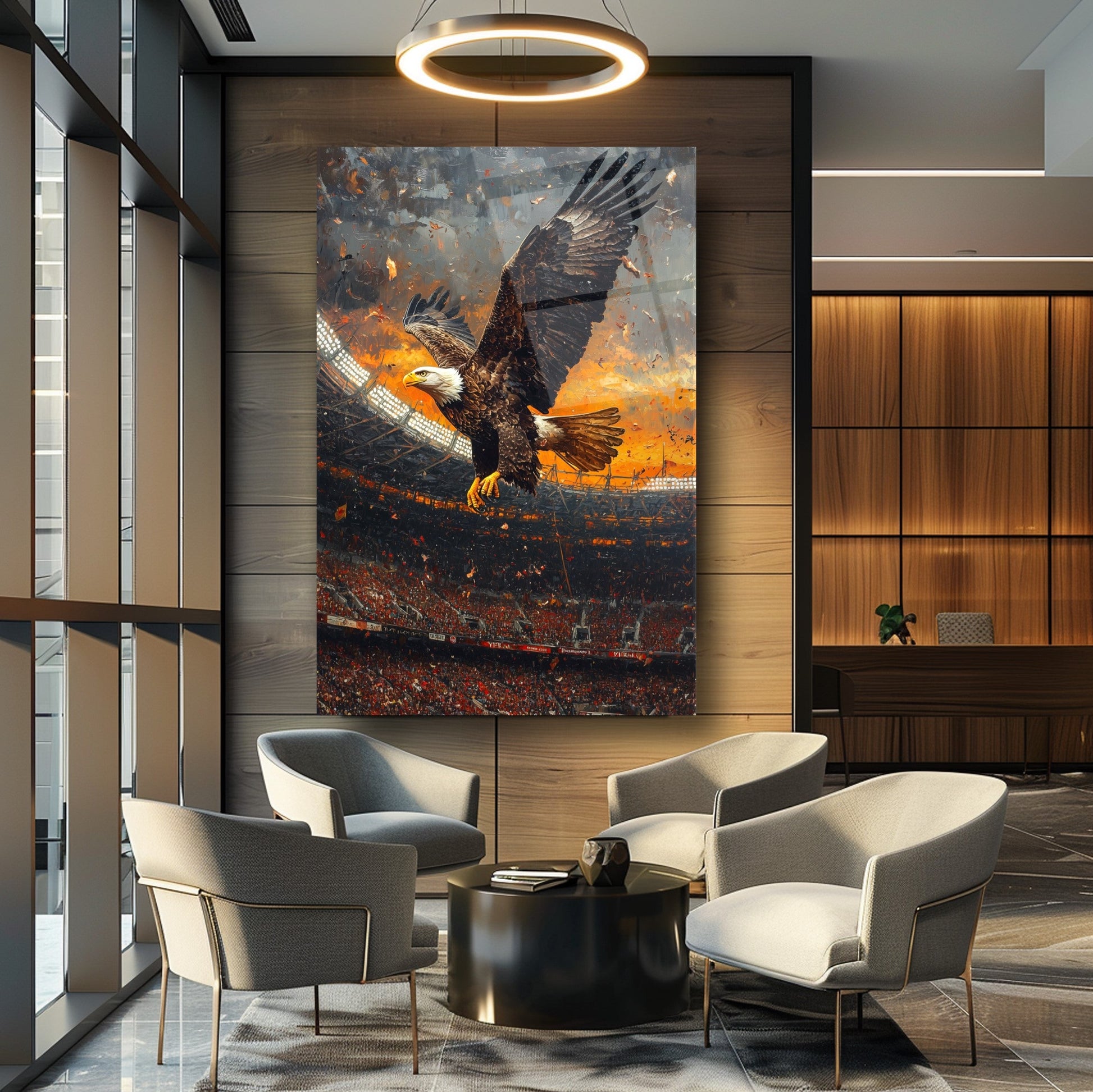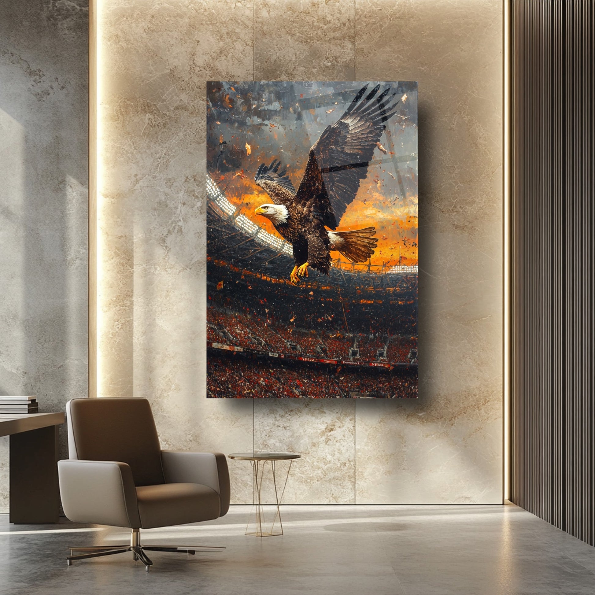 Futbol Aşkını Duvarlarınıza Taşıyın: Stadyum Futbol Kartal Modern Kırılmaz Cam Tablo