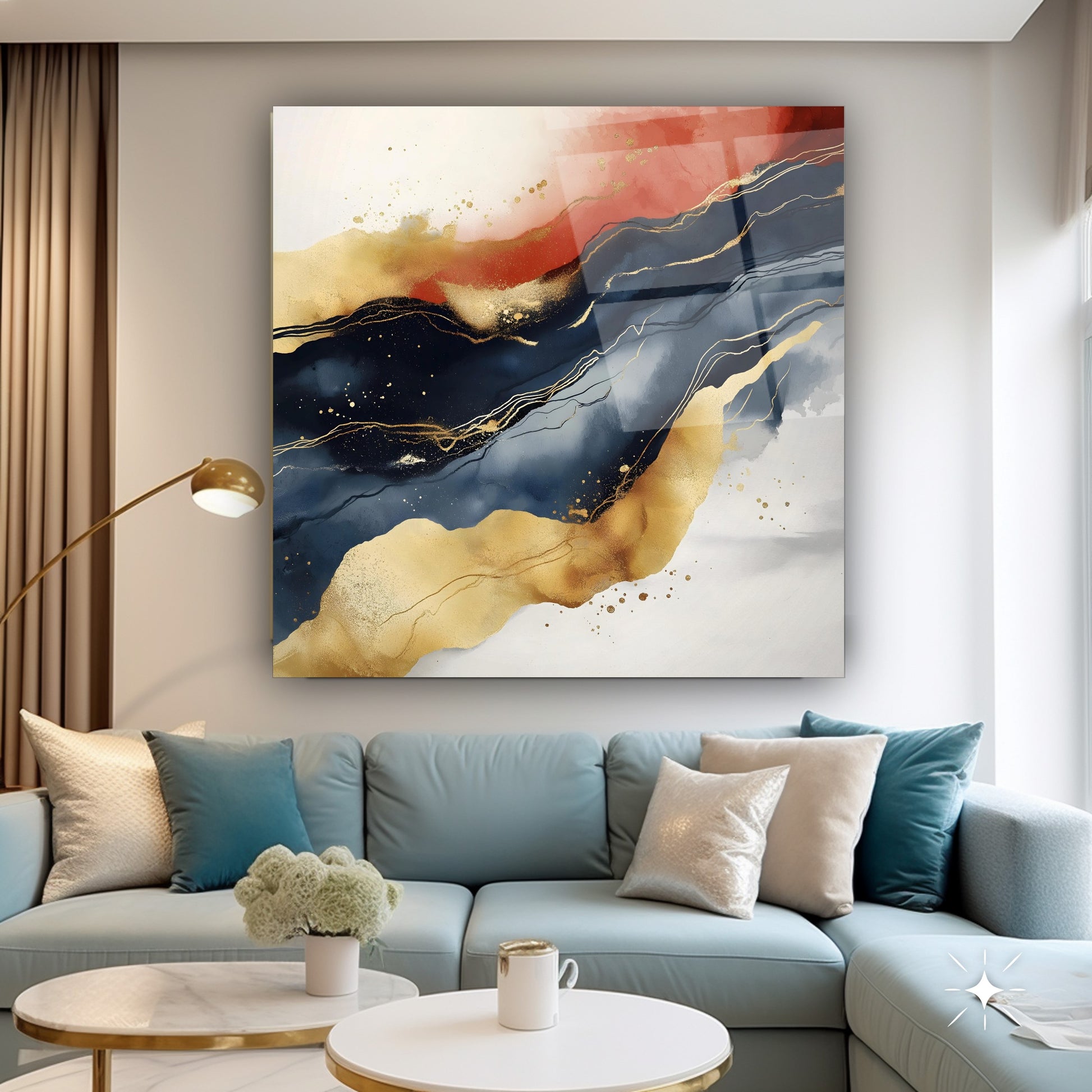 Turuncu, kırmızı, mavi ve gold renklerin enerjik birleşimiyle tasarlanan bu soyut desenli cam tablo, yaşam alanlarınıza canlılık ve hareket katıyor. CamDeko kalitesiyle kırılmaz temperli cam üzerine UV baskı teknolojisiyle üretilen bu eser, dinamik renk geçişleri ve özgün desenleriyle mekâna modern ve etkileyici bir atmosfer sunar. Evler, ofisler ve yaratıcı çalışma alanlarında kullanıma uygun olan tablo, dayanıklı yapısıyla uzun yıllar boyunca ilk günkü parlaklığını korur. Renkli ve şık dekorasyon arayanlar için estetik ve fonksiyonelliği bir arada sunan bu tasarım, mekanlarınıza enerji ve özgünlük kazandırmak isteyenler için ideal bir tercihtir.
