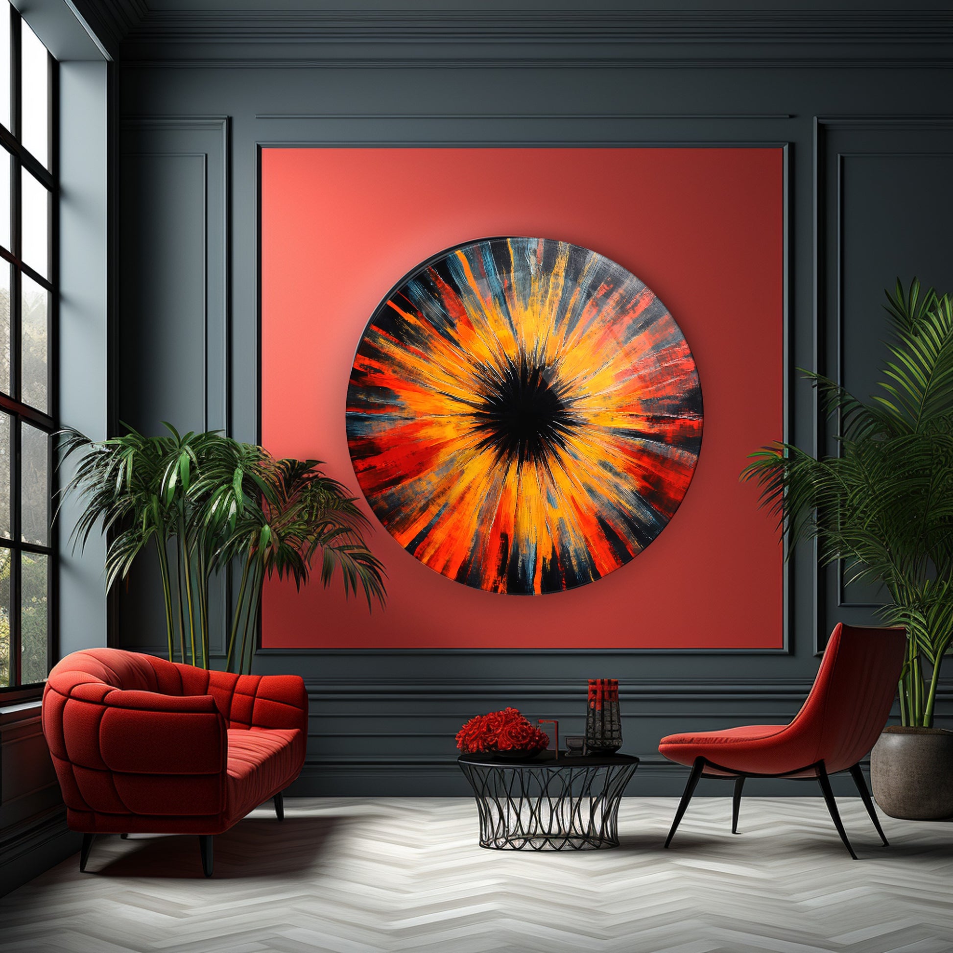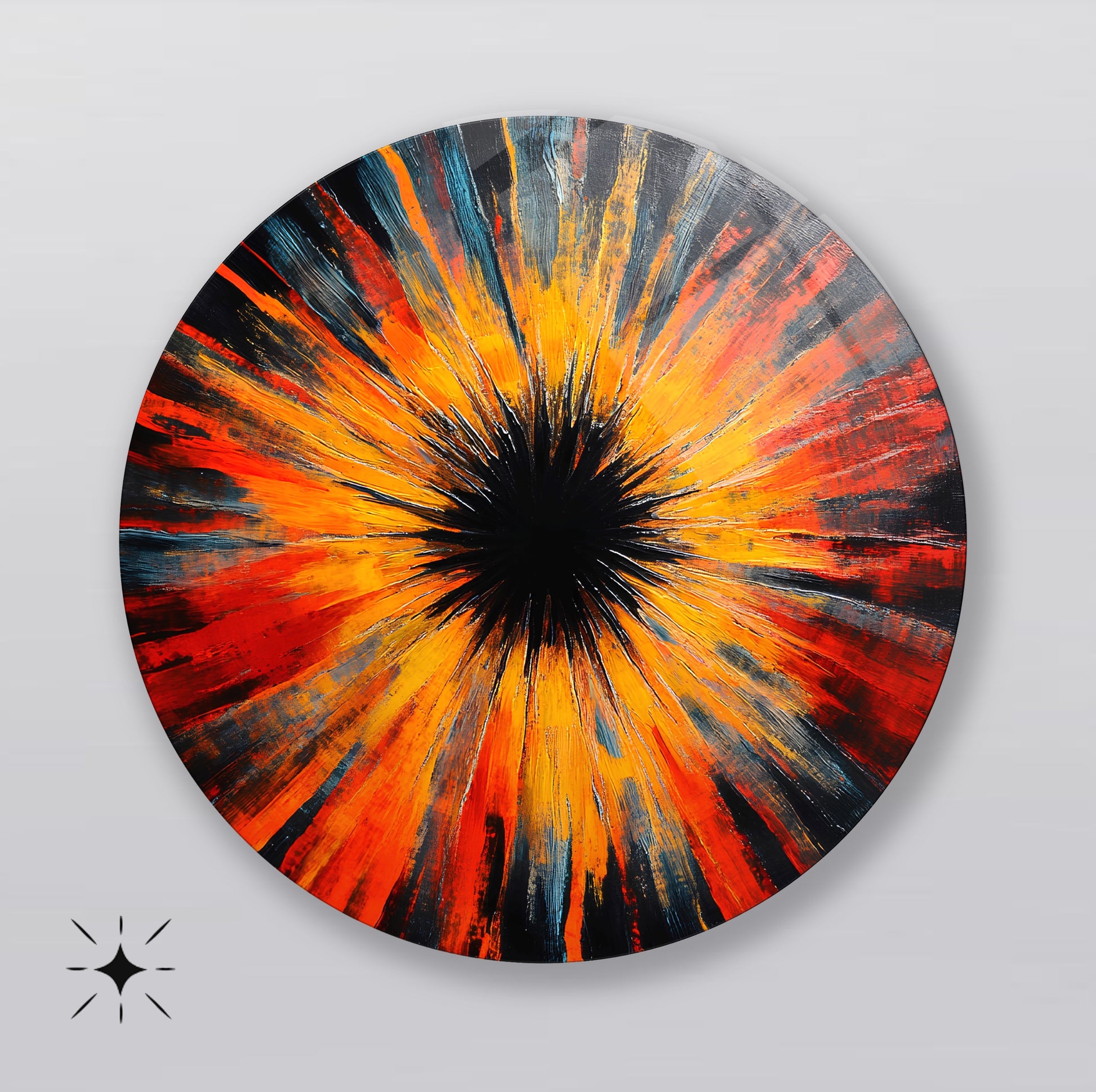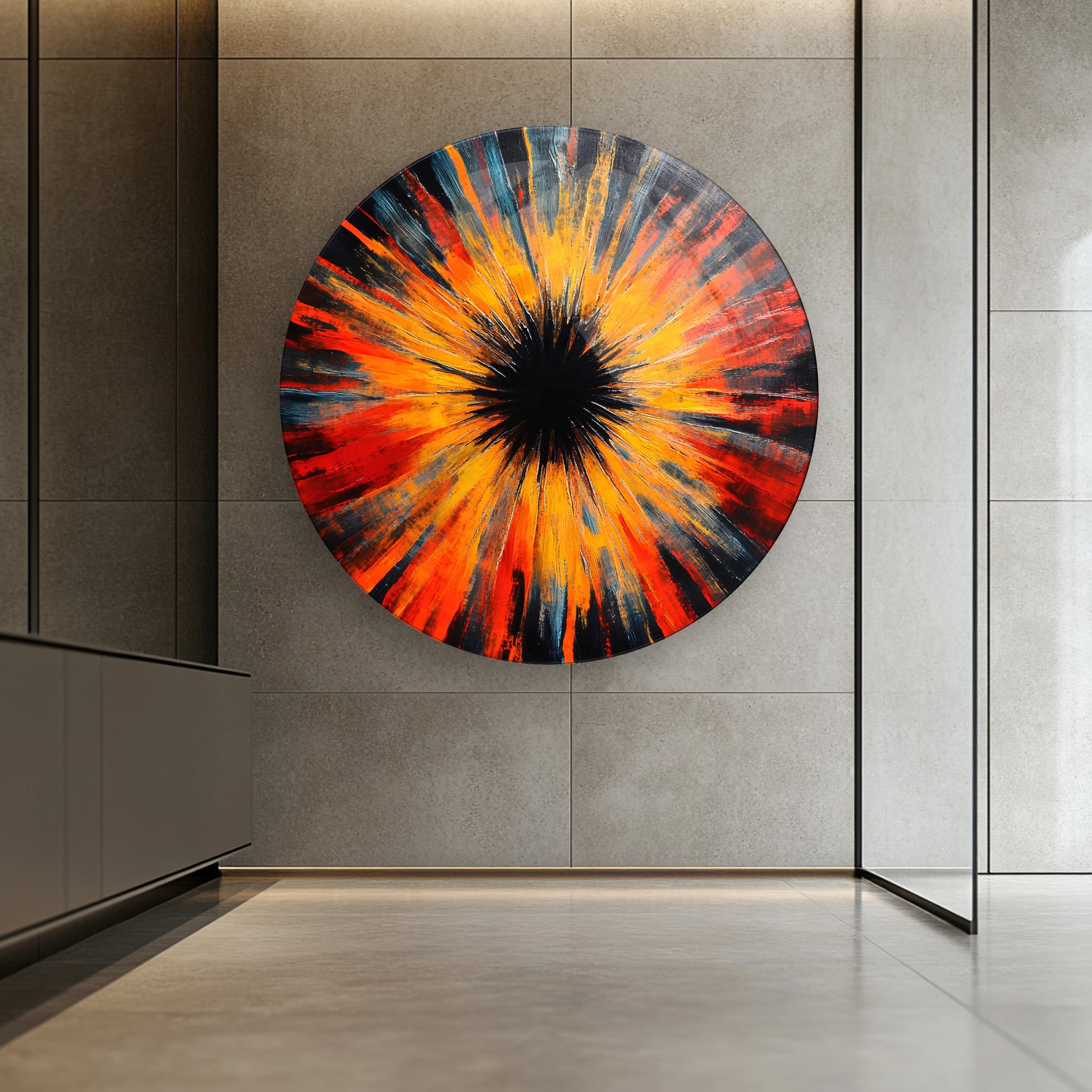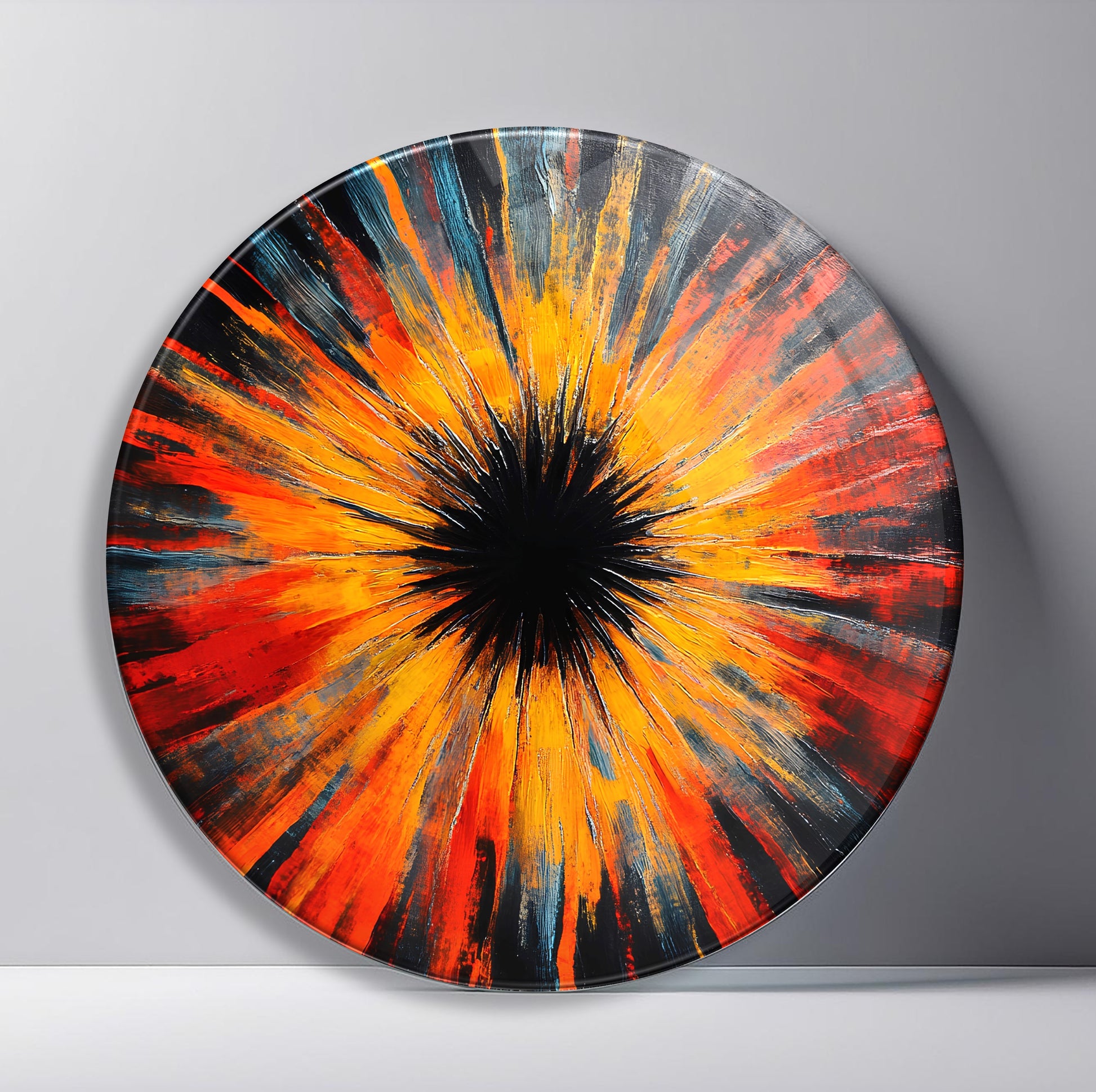 Turuncu, kırmızı ve siyah tonların birleşimiyle oluşan ejderha gözü etkisi, bu yuvarlak gerçek cam tabloya güçlü ve gizemli bir hava kazandırır. Kırılmaz cam yapısı sayesinde uzun ömürlü ve estetik bir dekorasyon sunar. Yuvarlak formu, duvarlarda dengeli ve dikkat çekici bir görünüm oluşturur. Cesur ve iddialı tasarımları sevenler için ideal bir cam tablo tercihidir.