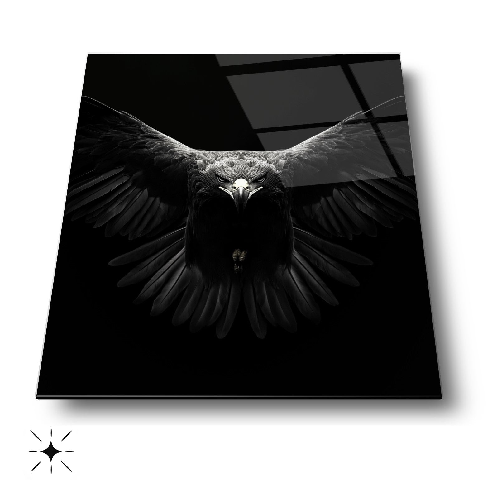 CamDeko'dan gerçek futbol tutkunlarına özel bir başyapıt: Uçan Kara Kartal Kırılmaz Modern UV Baskı Siyah Arka Plan Temperli Gerçek Büyük Boy Cam Tablo! Gökyüzünde süzülen Uçan Kara Kartal figürü, şık siyah arka planı ve modern tasarımıyla ev, ofis veya özel spor alanlarınıza coşku ve dinamizm katıyor.