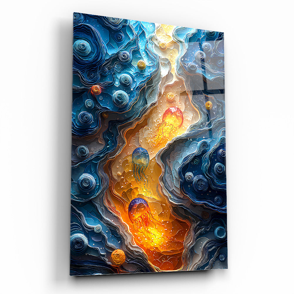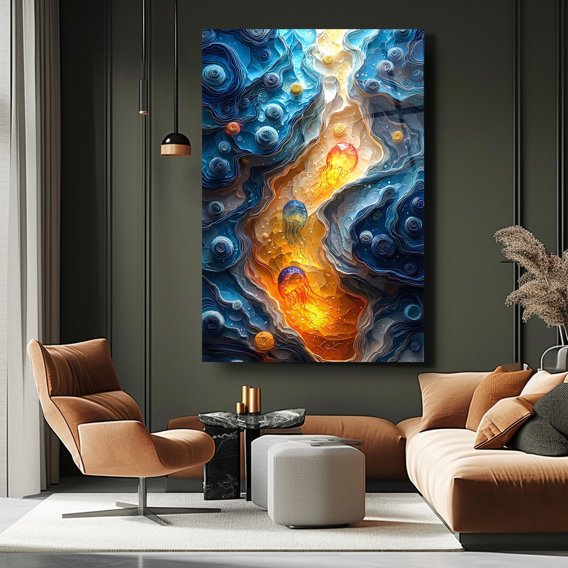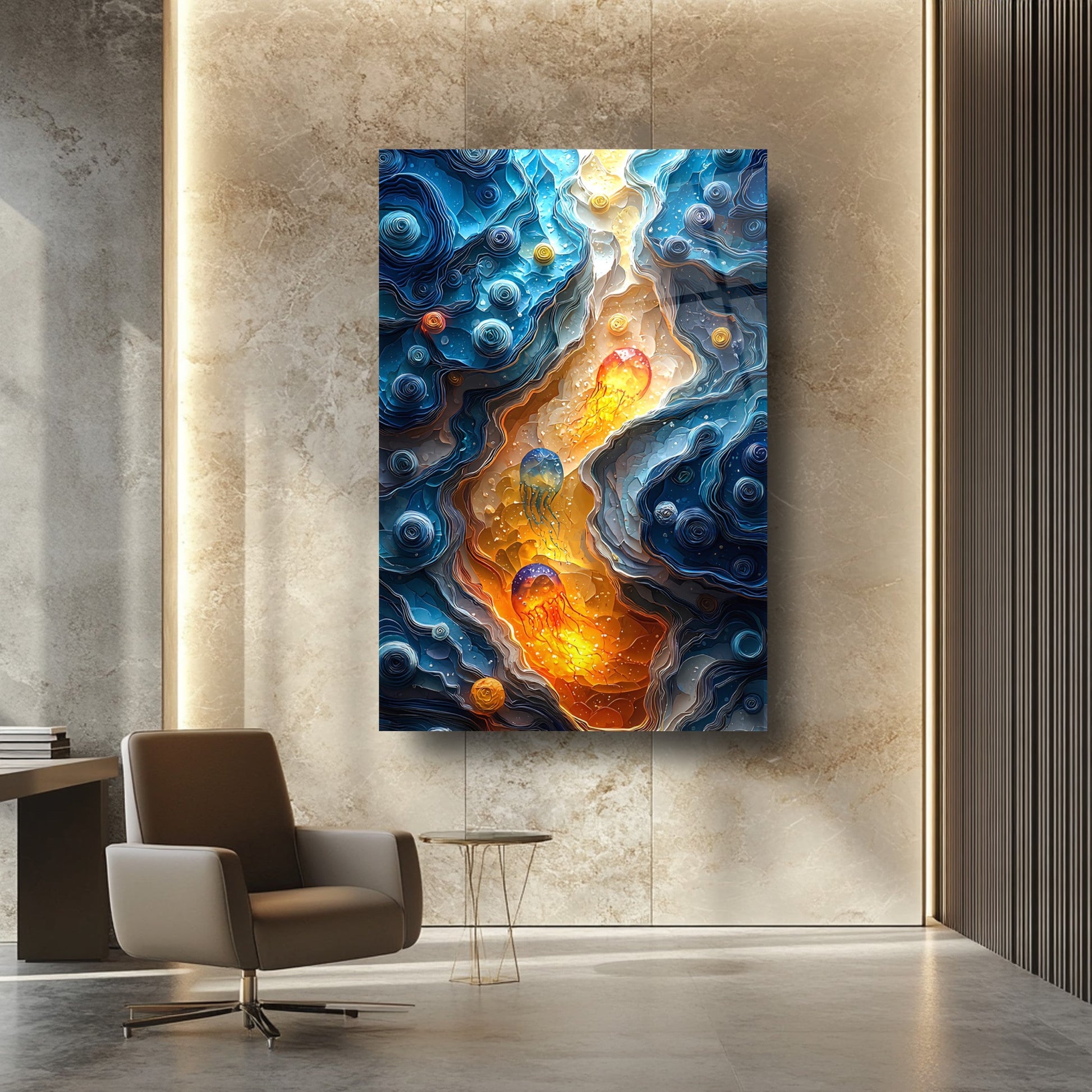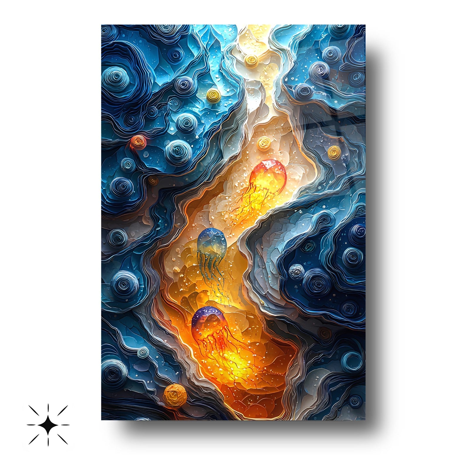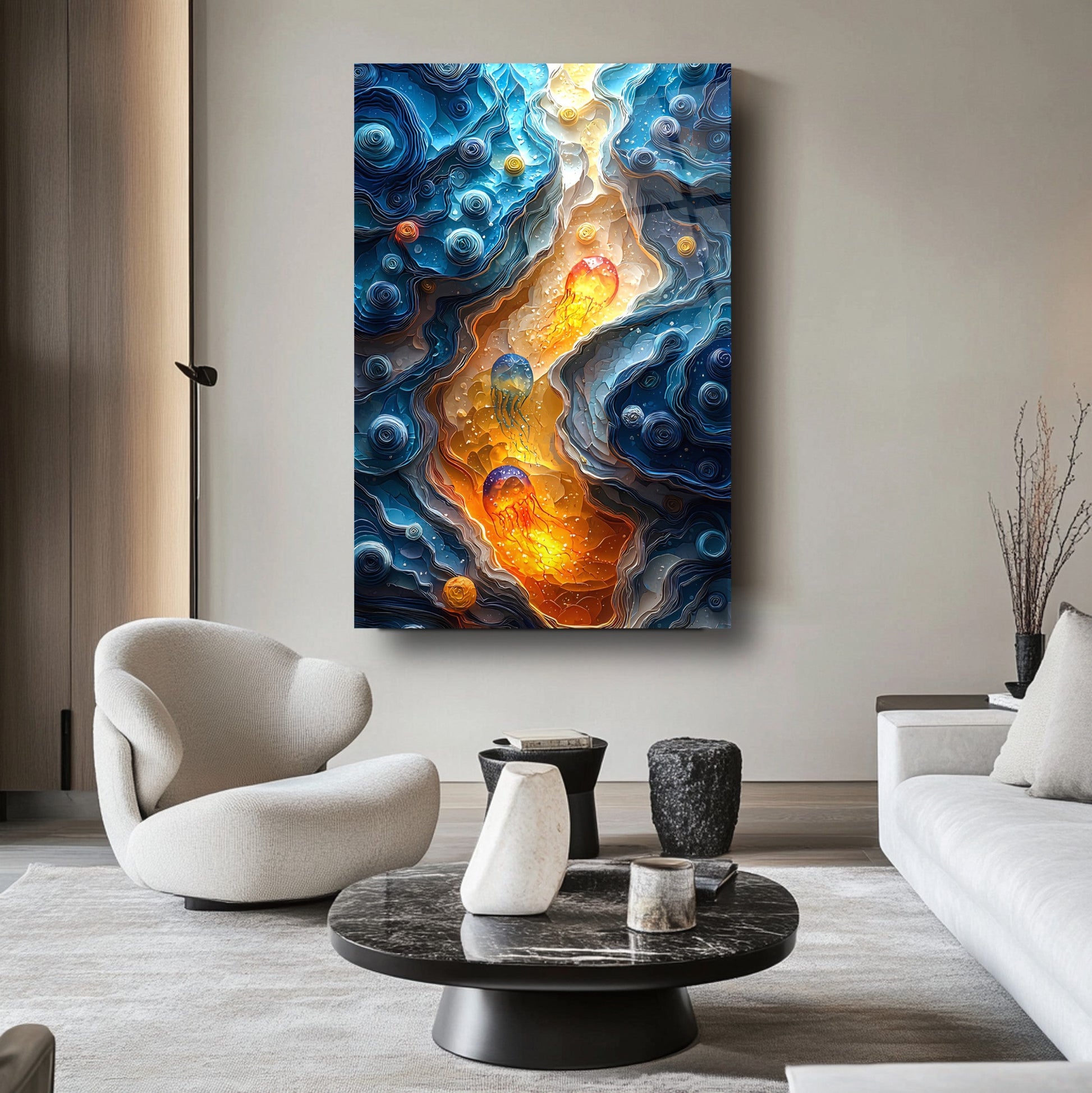 Modern ve sofistike bir atmosfer yaratmak isteyenler için ideal bir seçenek olan bu tablo, mavi ve sarı tonlarındaki soyut nehir figürüyle dikkat çekiyor. Yapay zeka destekli tasarım ve üç boyutlu kabartma efekti, mekânınıza derinlik ve estetik bir dokunuş katıyor. 4 mm kalınlığındaki ultra-clear temperli cam, standart camlara göre 10 kat daha dayanıklıdır ve rodajlanmış kenarlarıyla güvenli kullanım sağlar. UV dijital baskı teknolojisiyle uygulanan yüksek çözünürlüklü baskı, renklerin solmasını engeller ve uzun ömürlü kullanım sunar. Kolay montajı sayesinde hemen duvarınıza asılabilir. Salon, oturma odası veya ofis gibi farklı alanlarda şıklığıyla öne çıkar. Evinize veya iş yerinize modern bir atmosfer kazandırmak için bu tablo mükemmel bir tercih olacaktır.