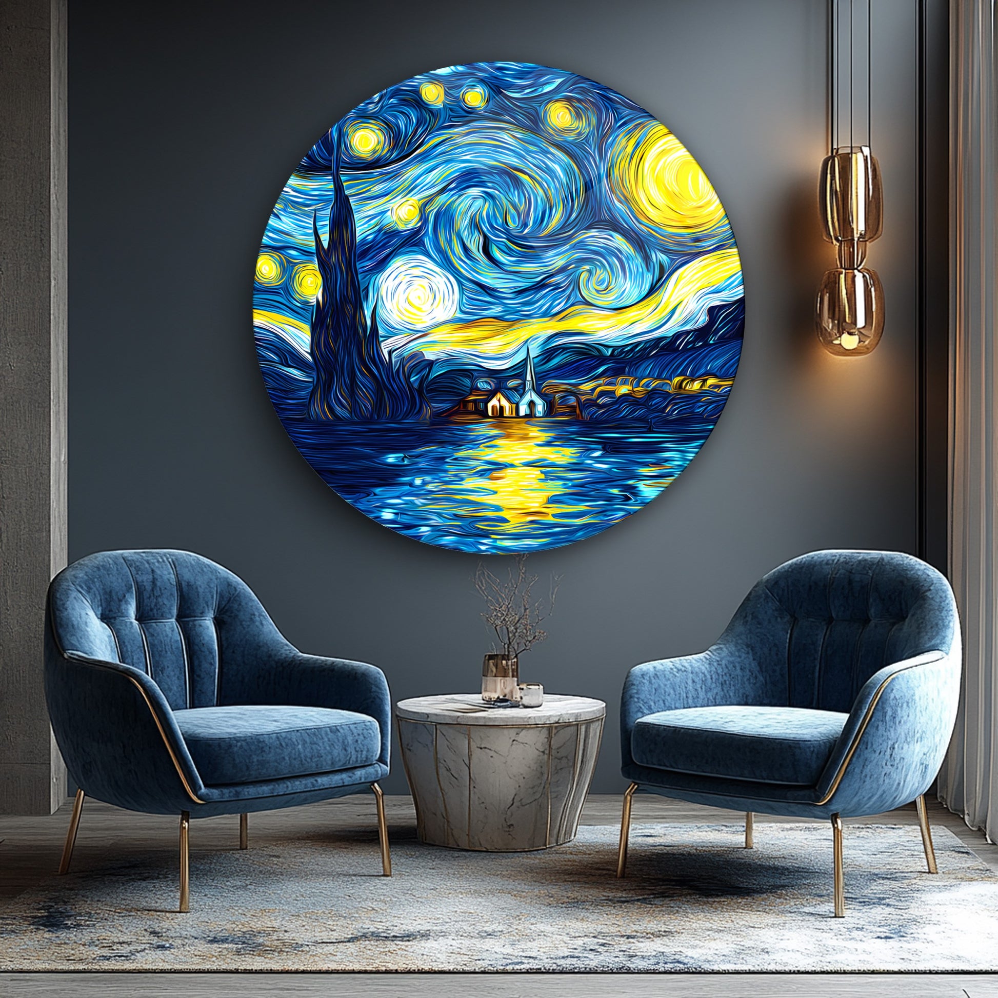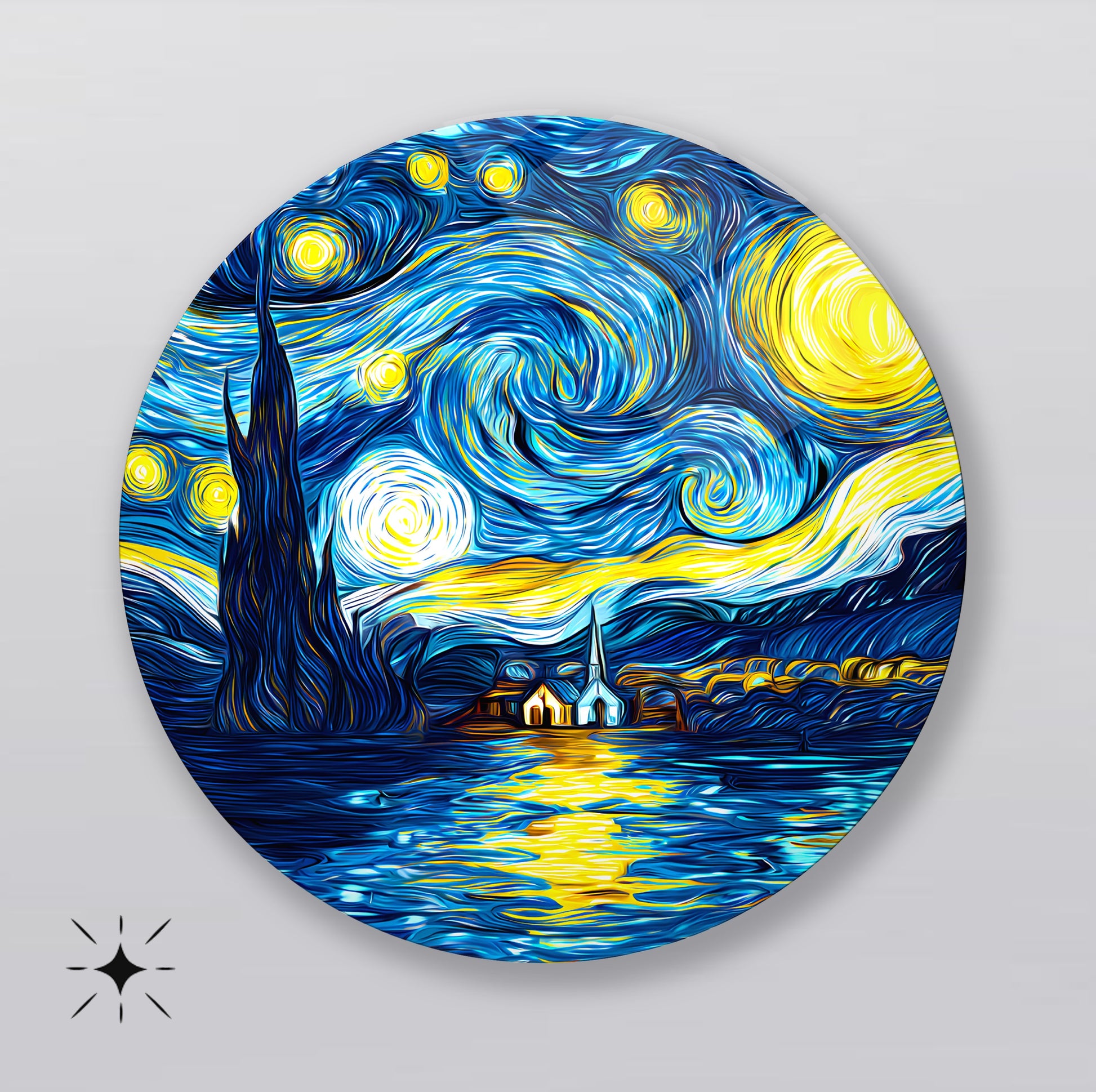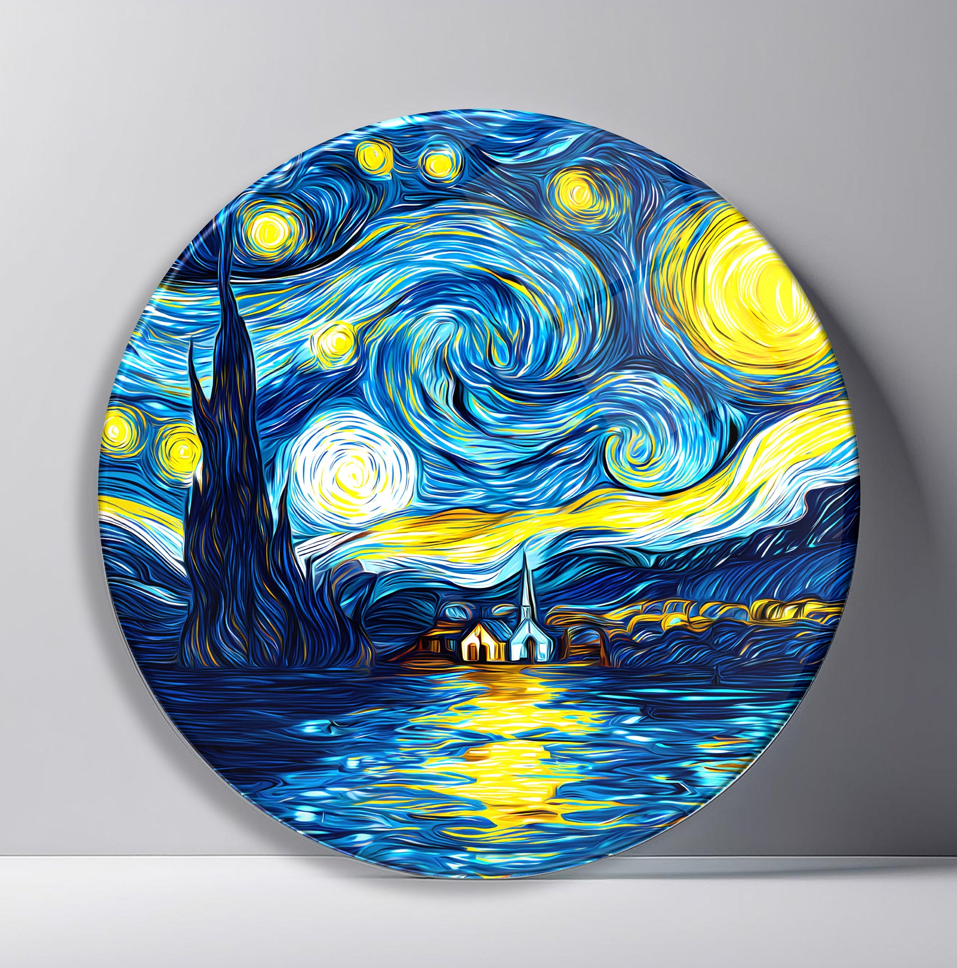 Yıldızlı Gece Yuvarlak Cam Tablo
