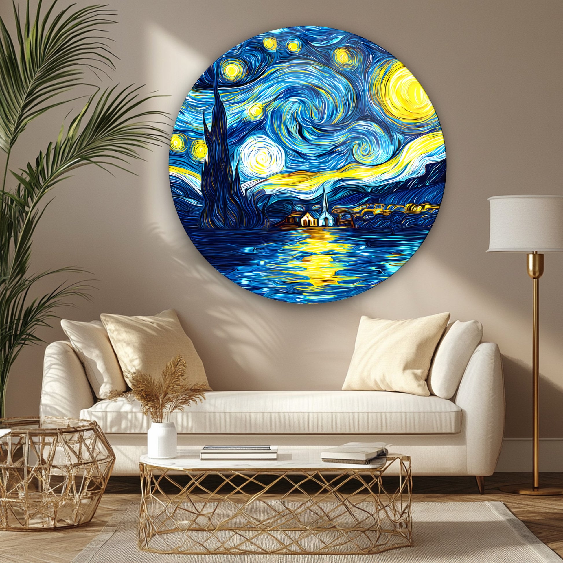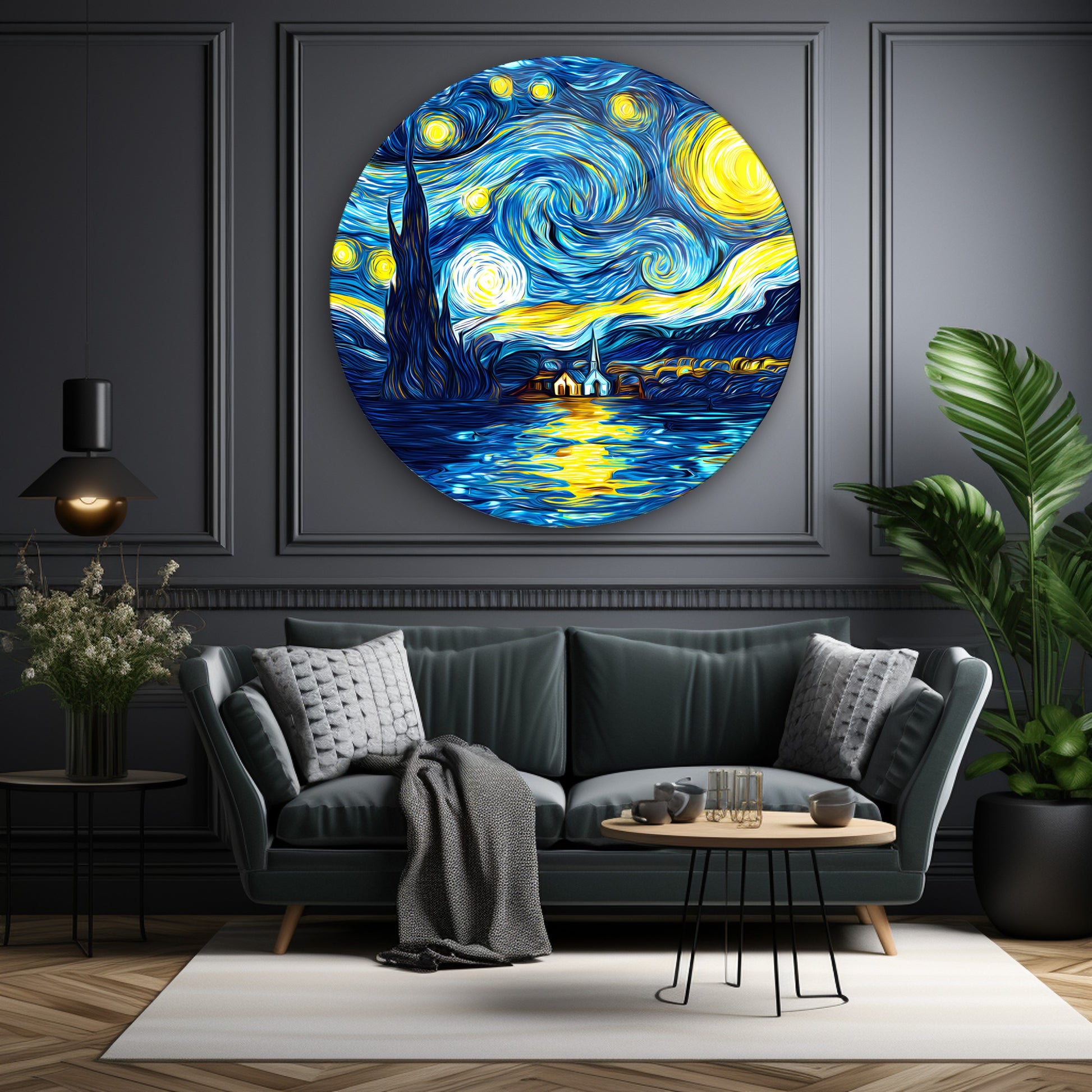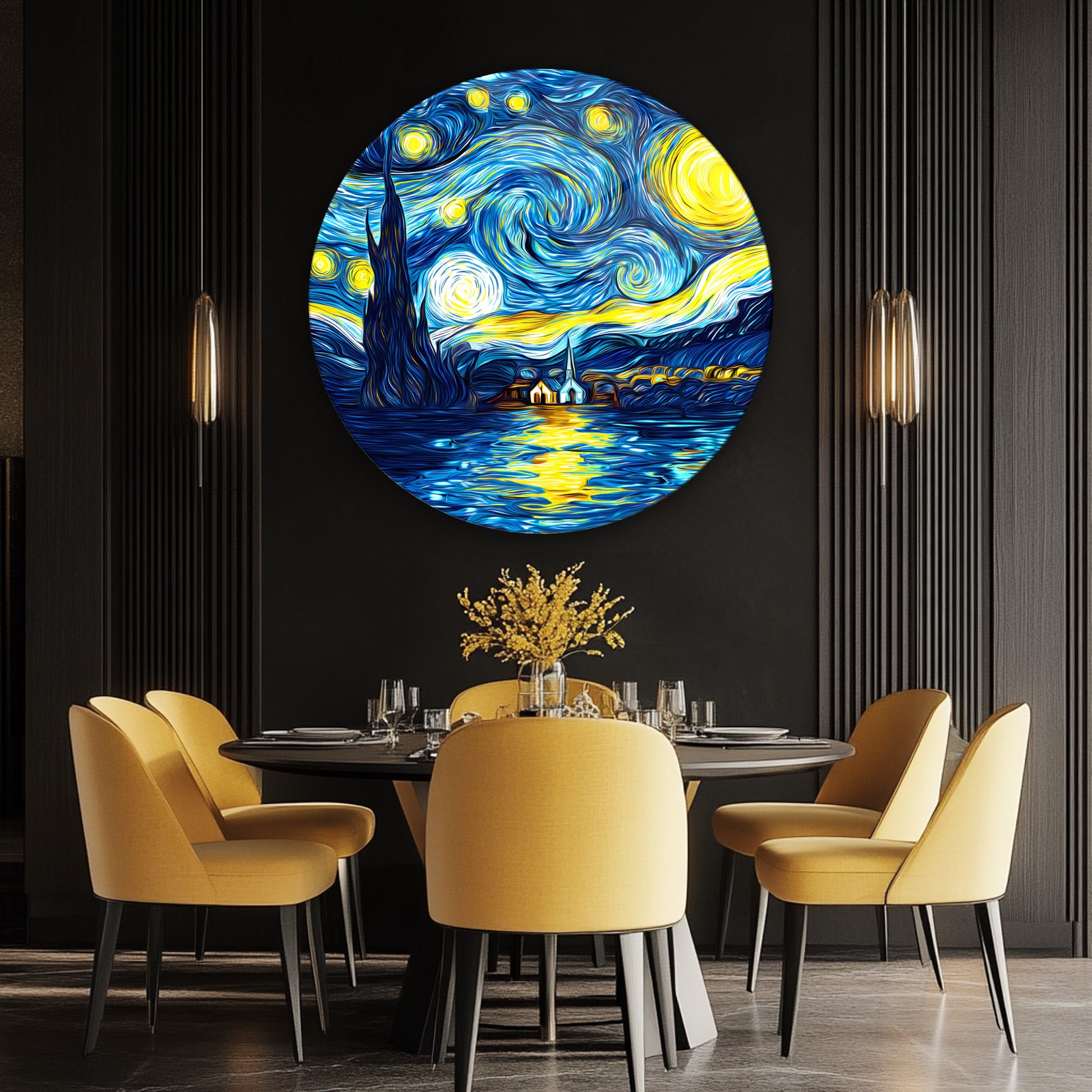 Yıldızlı Gece Yuvarlak Cam Tablo