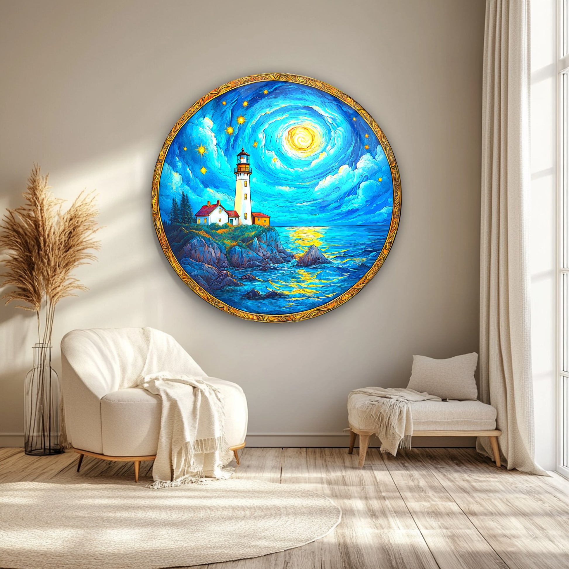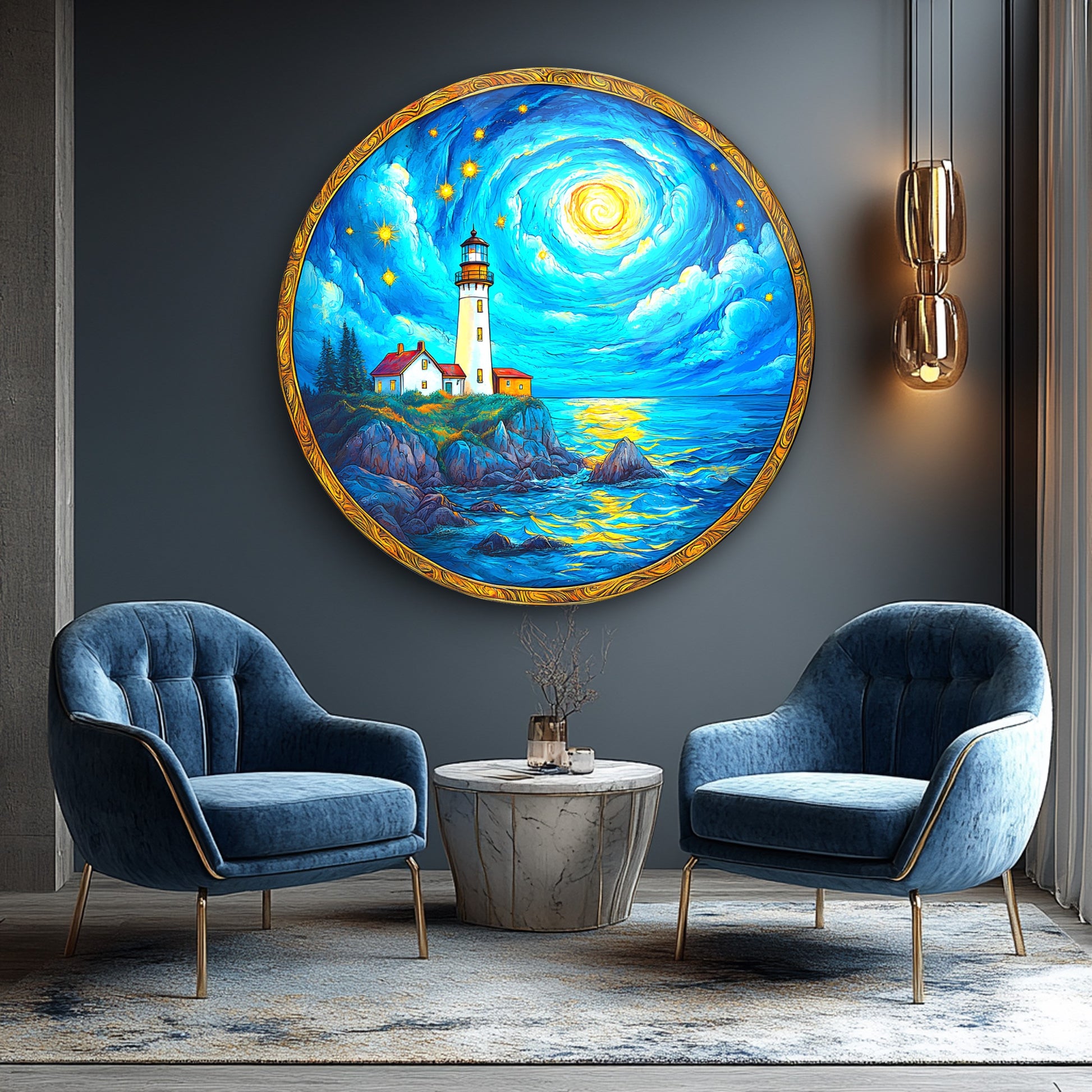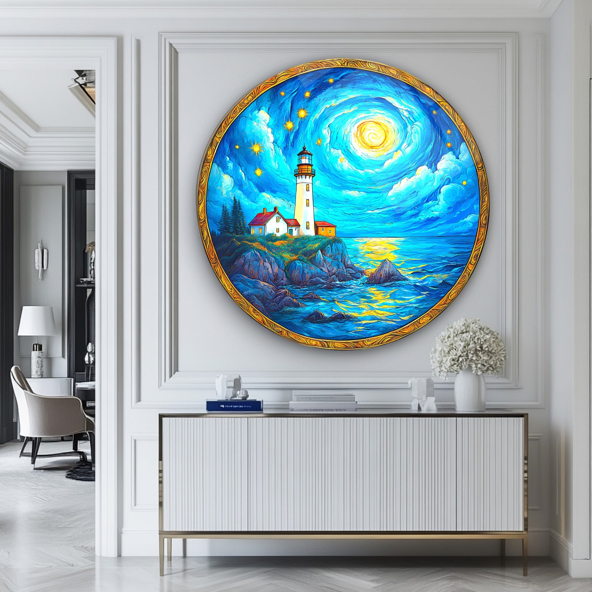 Yıldızlı Gece Manzarası Yuvarlak Cam Tablo