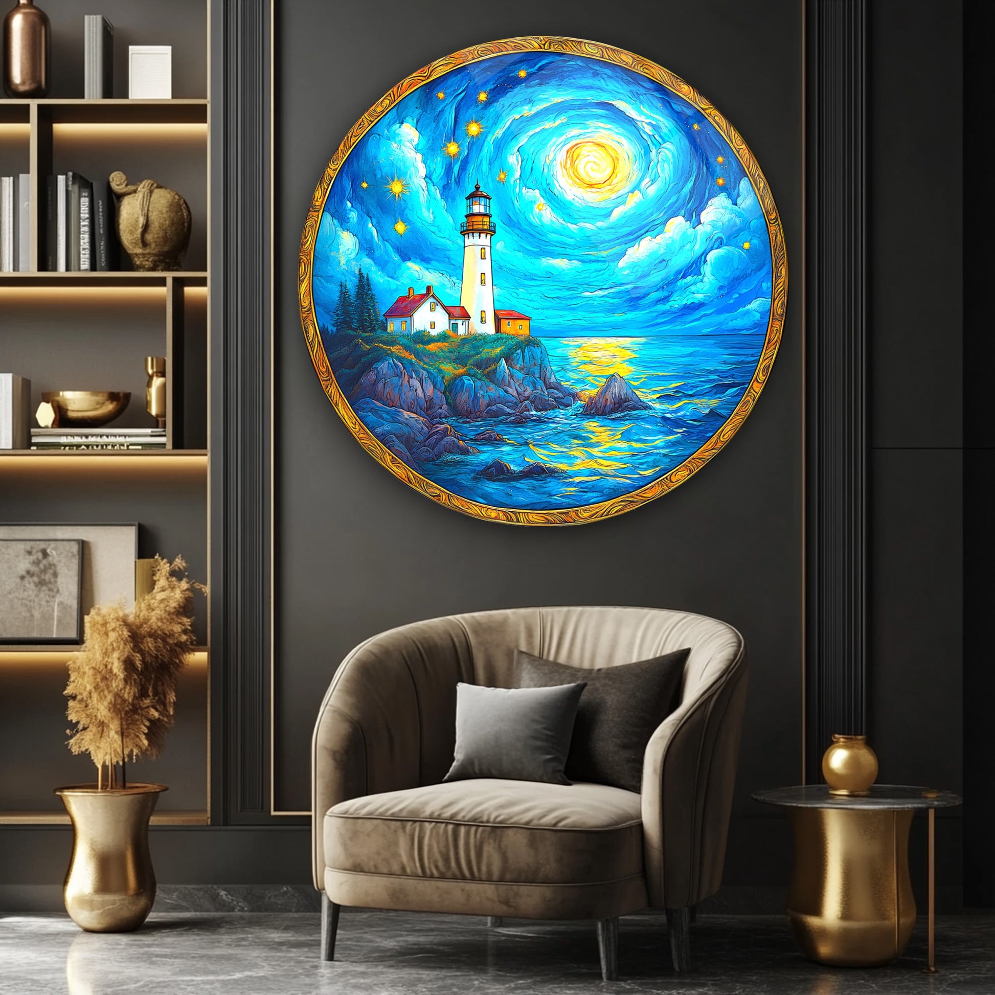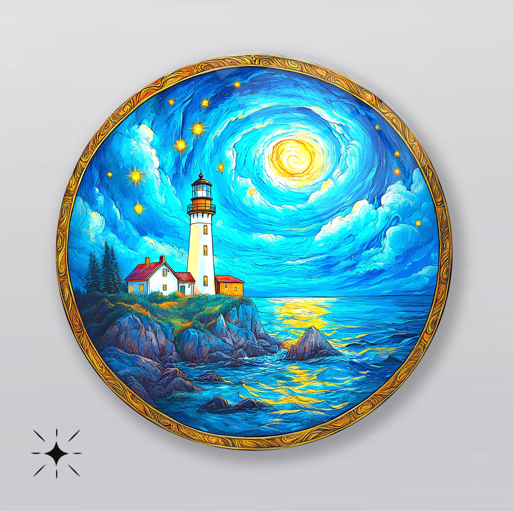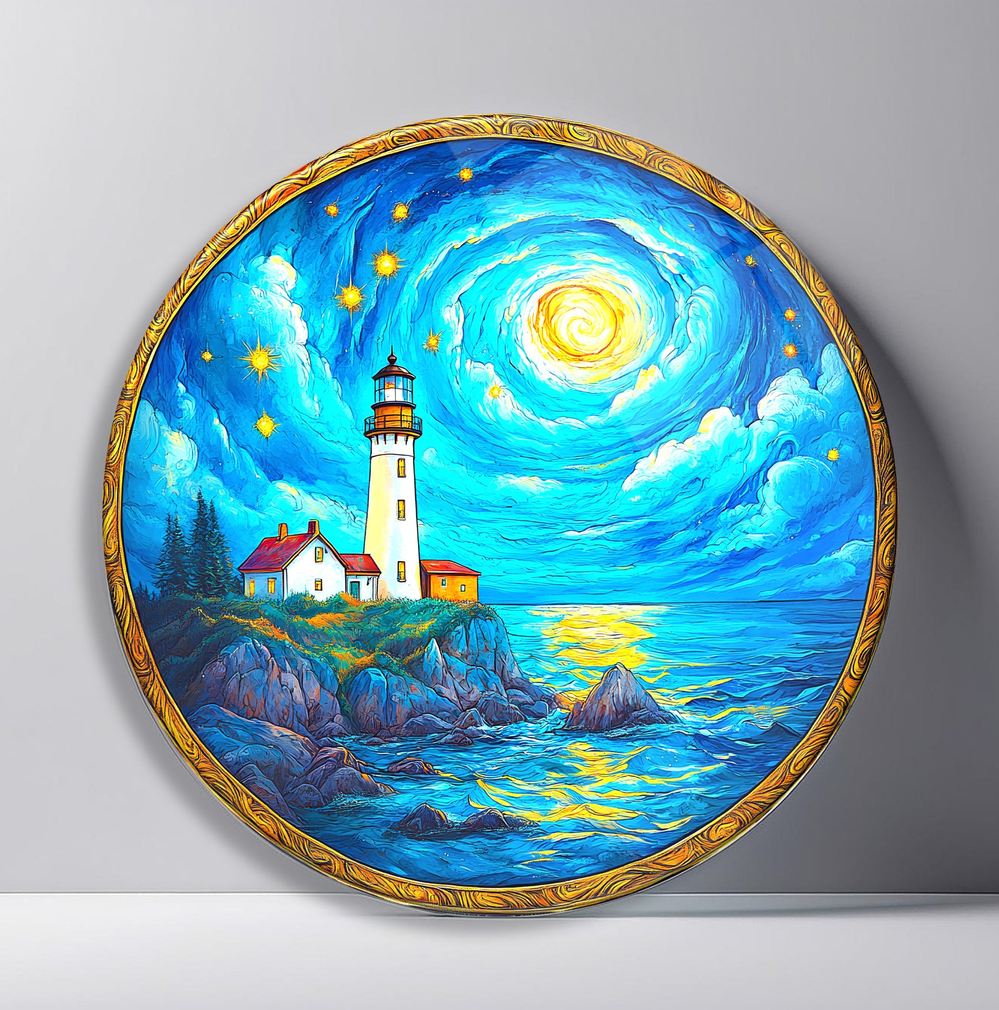 Yıldızlı Gece Manzarası Yuvarlak Cam Tablo