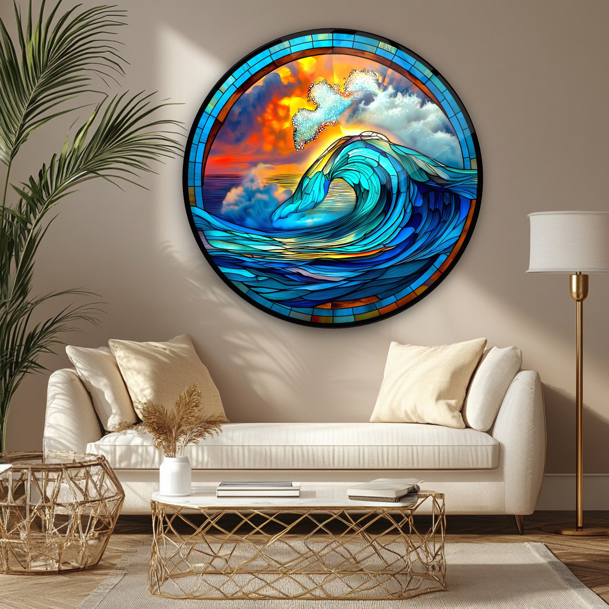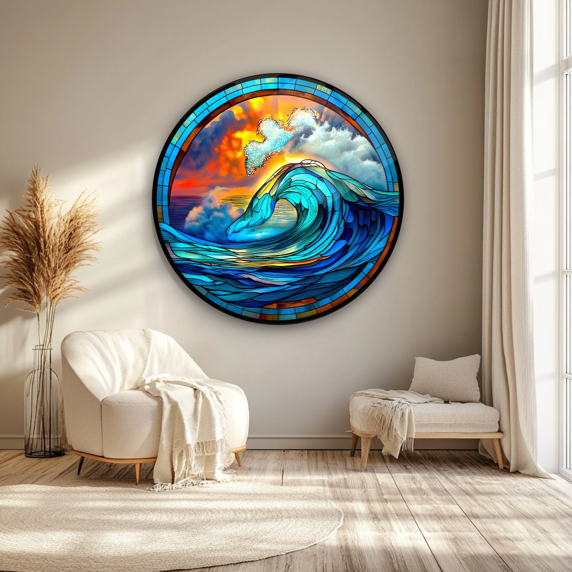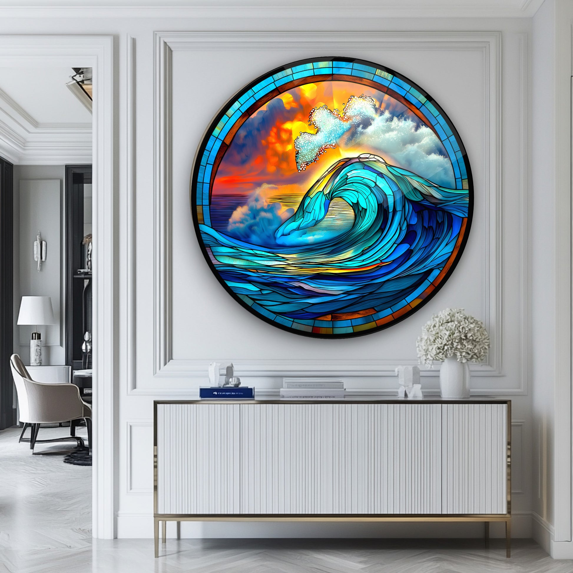 Vitray Desen Deniz Yuvarlak Cam Tablo