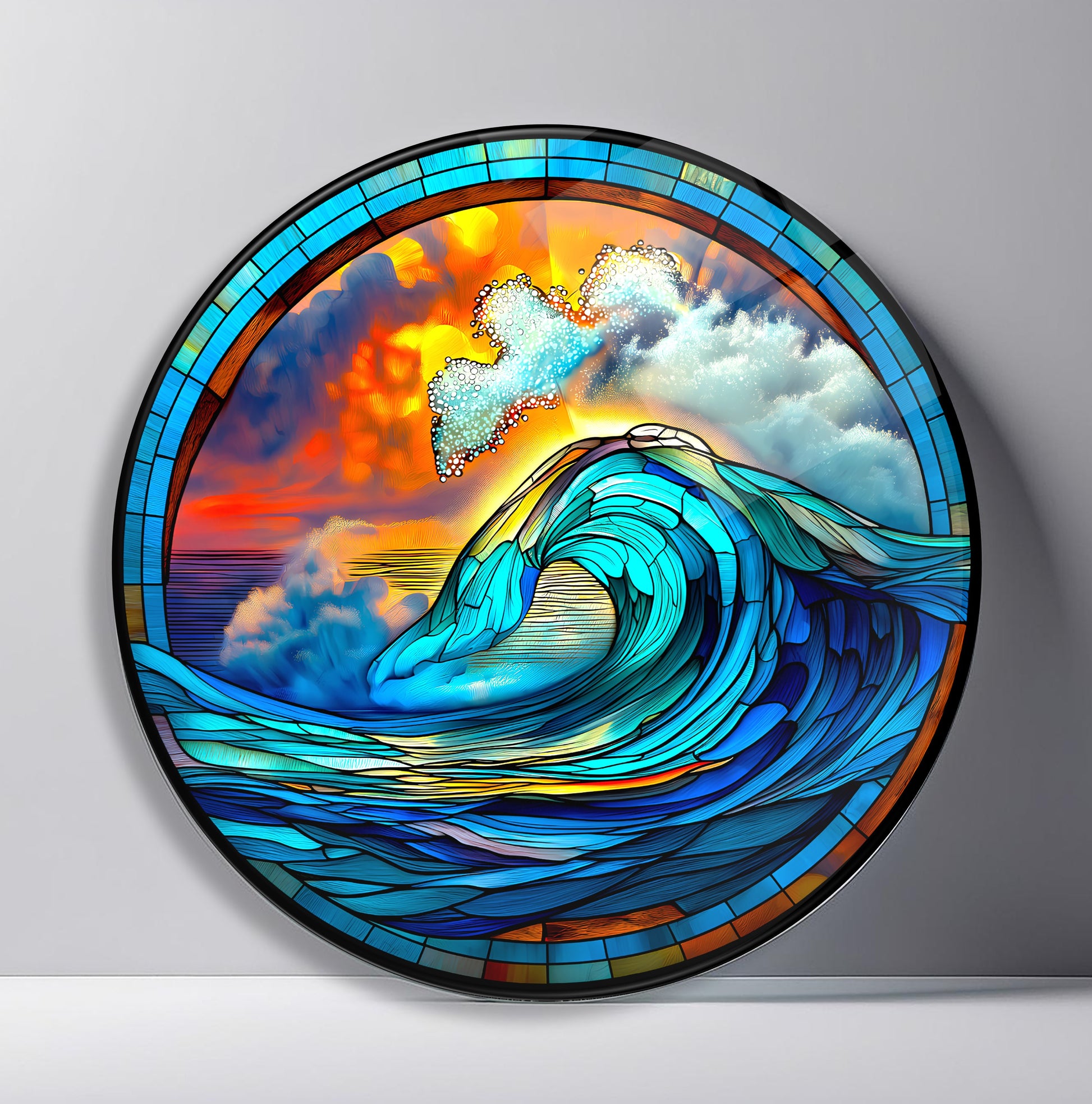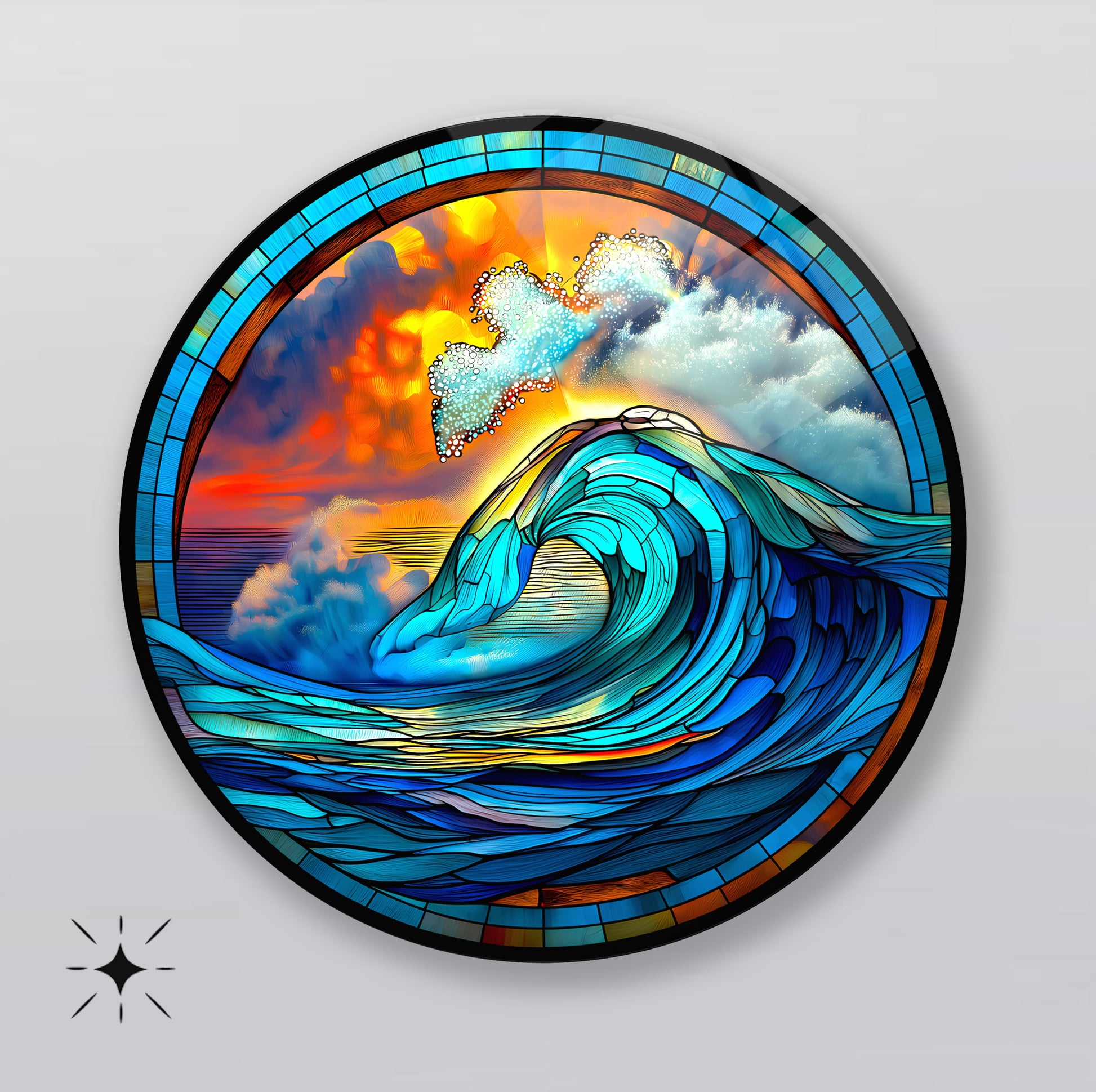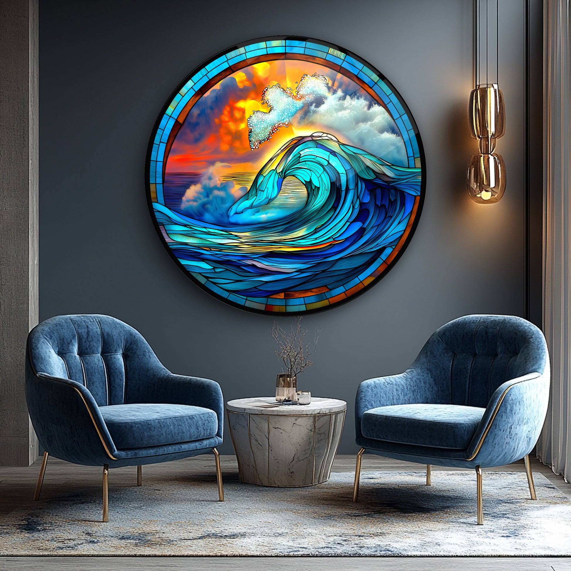 Vitray Desen Deniz Yuvarlak Cam Tablo