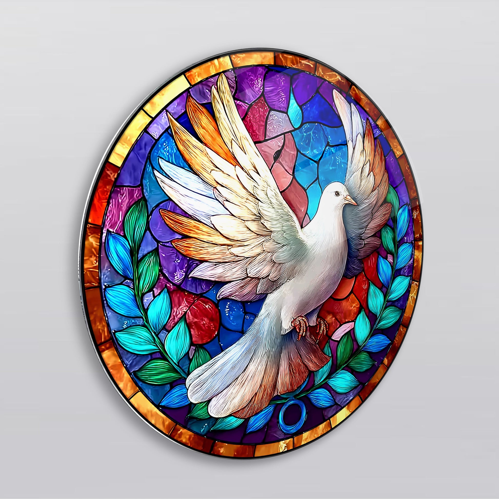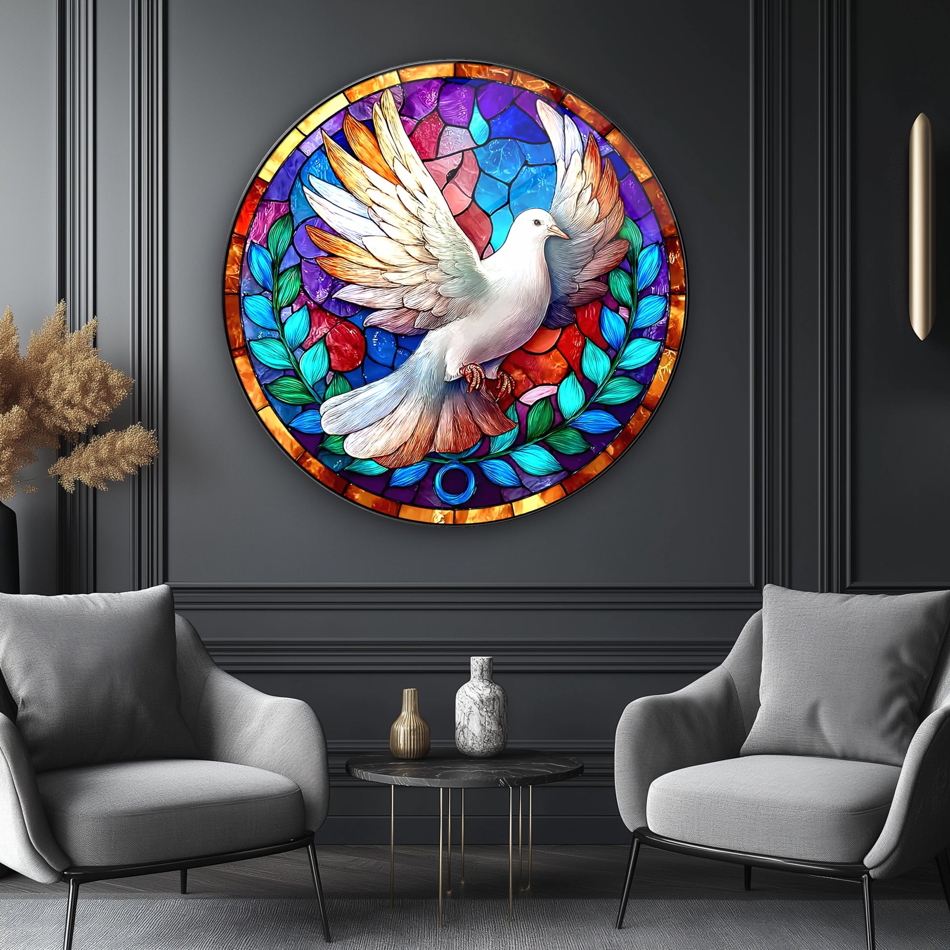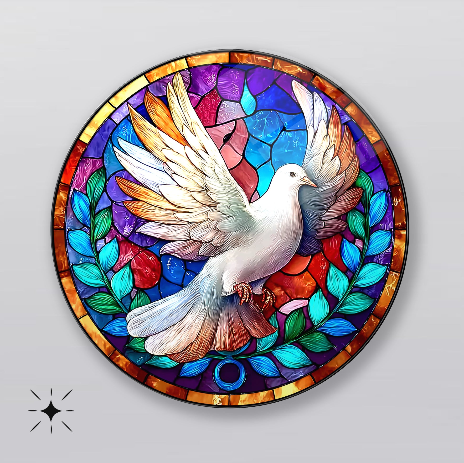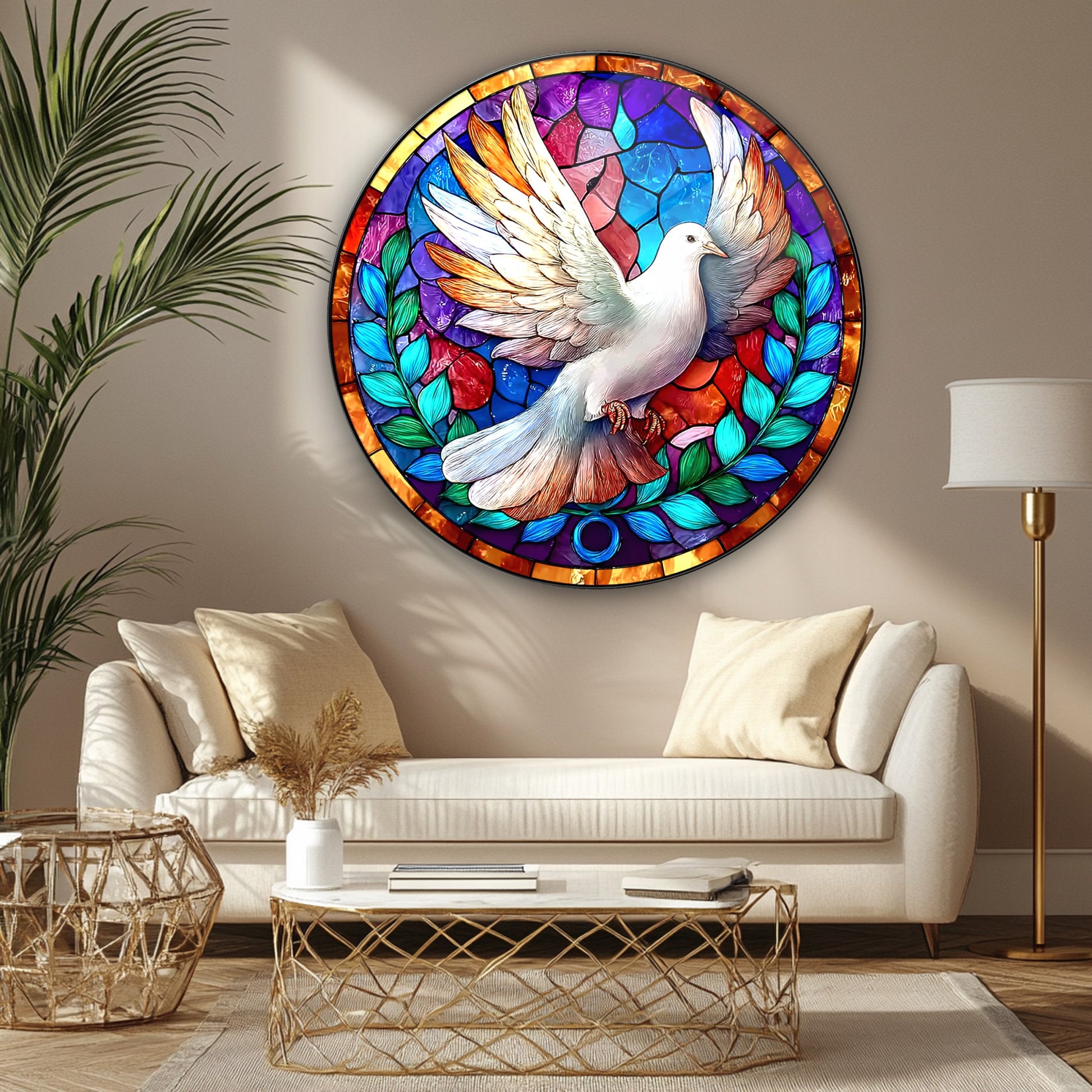 Vitray Desen Güvercin Yuvarlak Cam Tablo