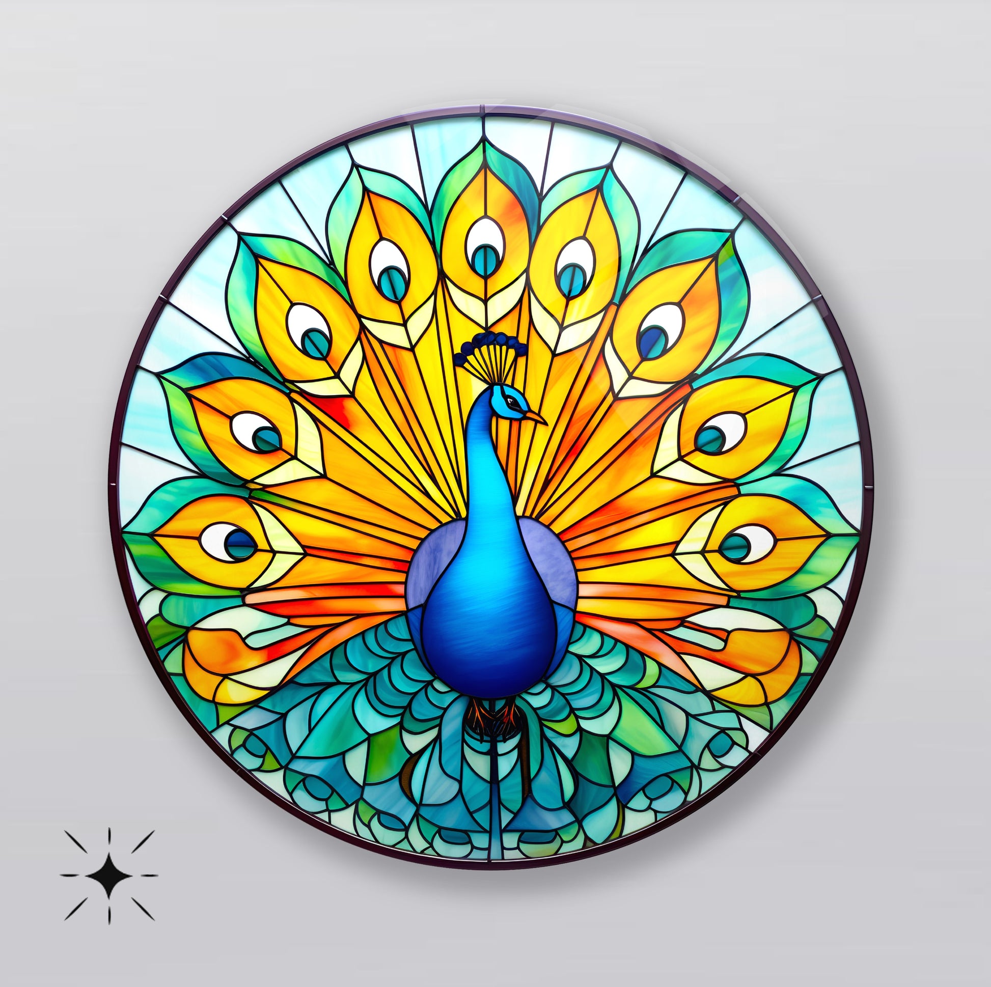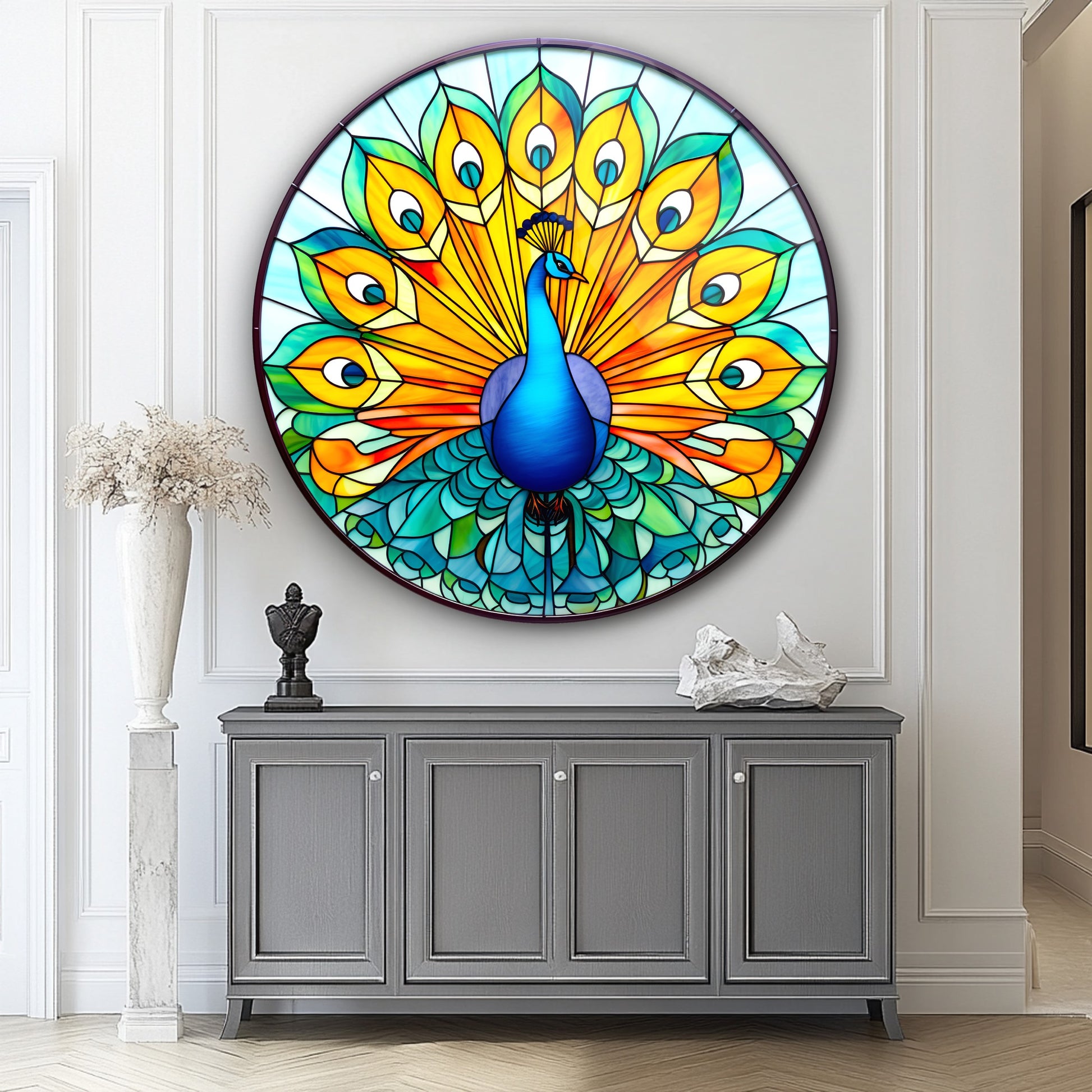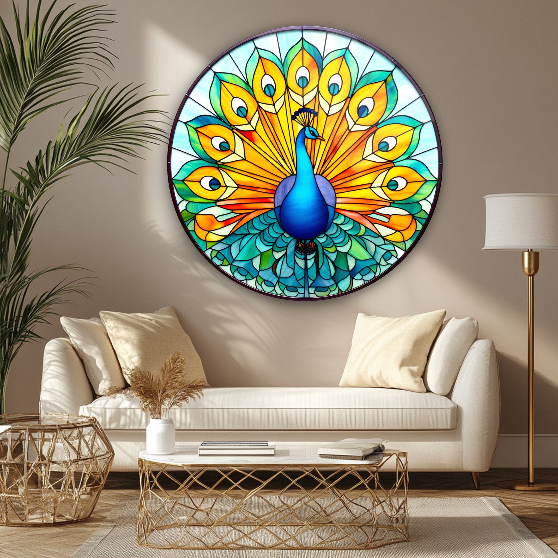 Vitray Desen Tavus Kuşu Yuvarlak Cam Tablo