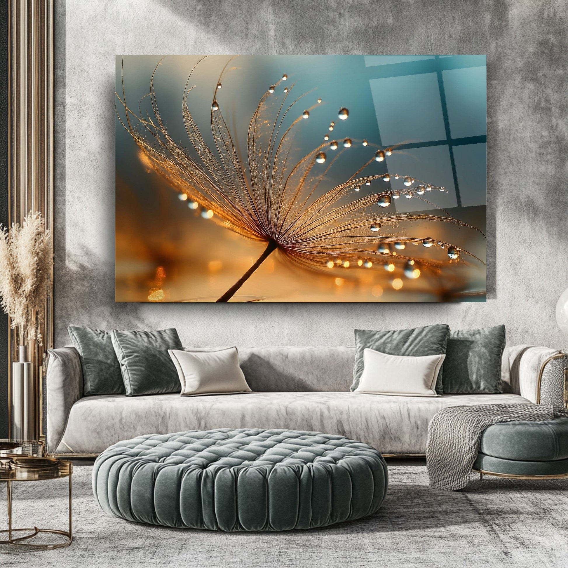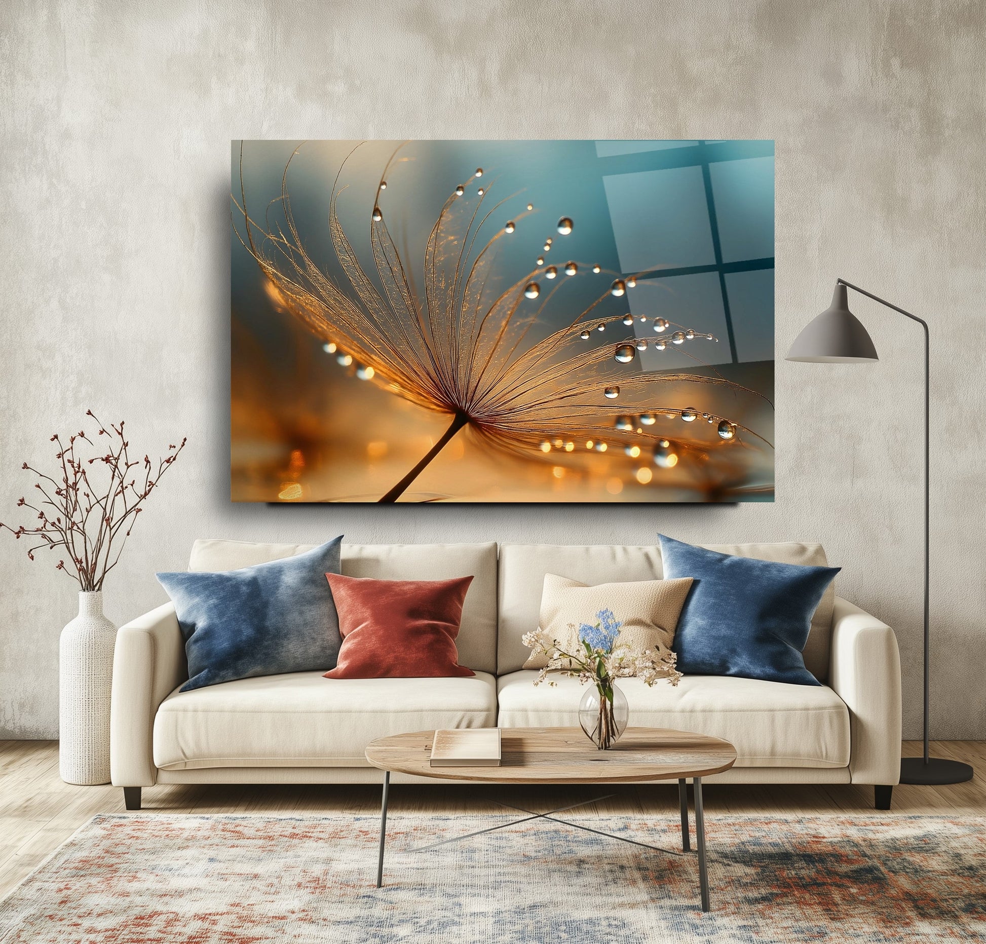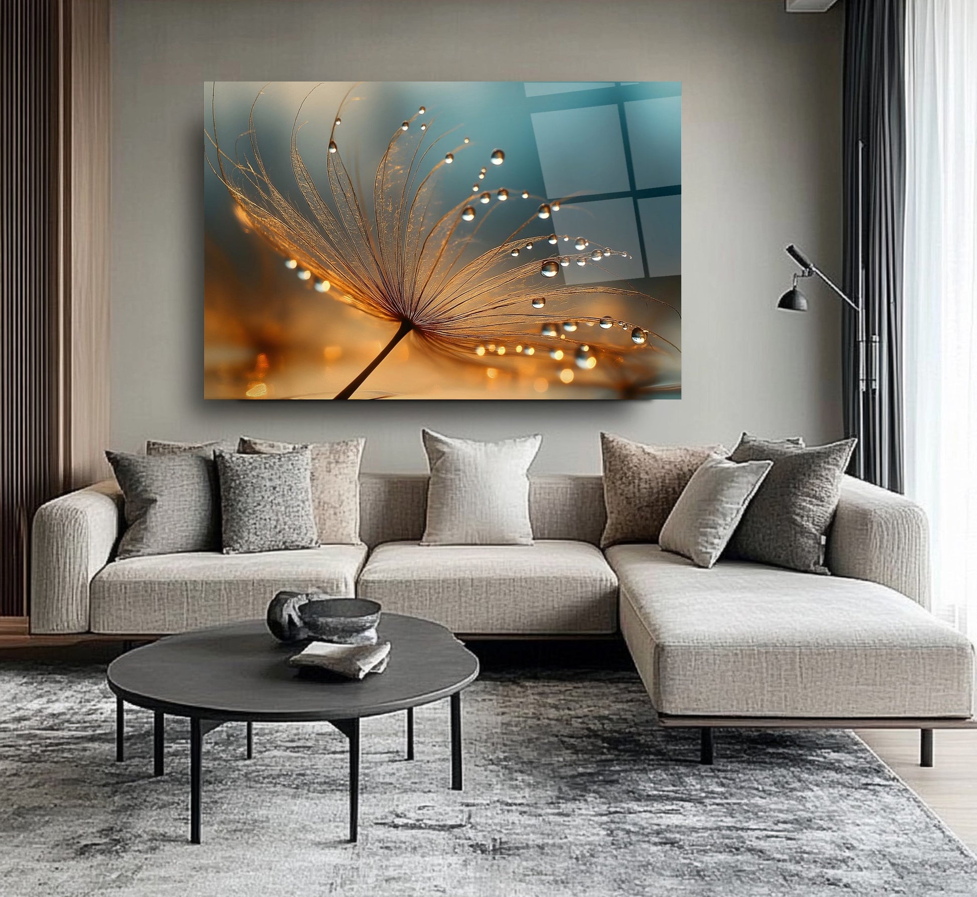 Bu modern cam tabloda, karahindiba tohumu üzerindeki zarif yağmur damlaları mavi arka planla birleşerek mekânınıza ferahlık ve sakinlik getiriyor. Doğanın en narin anlarını estetik bir sanat formuna dönüştüren tasarımıyla salon, çalışma odası veya yatak odasına huzurlu bir vurgu yaratır. UV baskı kalitesi sayesinde damlaların parlaklığı ve mavi tonların derinliği solmadan uzun süre korunur. Çerçevesiz ve kolay montajlı bu cam tablo, minimal dekorasyon tercih edenler için ideal. Doğa temalı cam baskı, yağmur damlalı duvar süsü veya mavi karahindiba tablosu arayanlar için anlamlı ve etkileyici bir tercih.