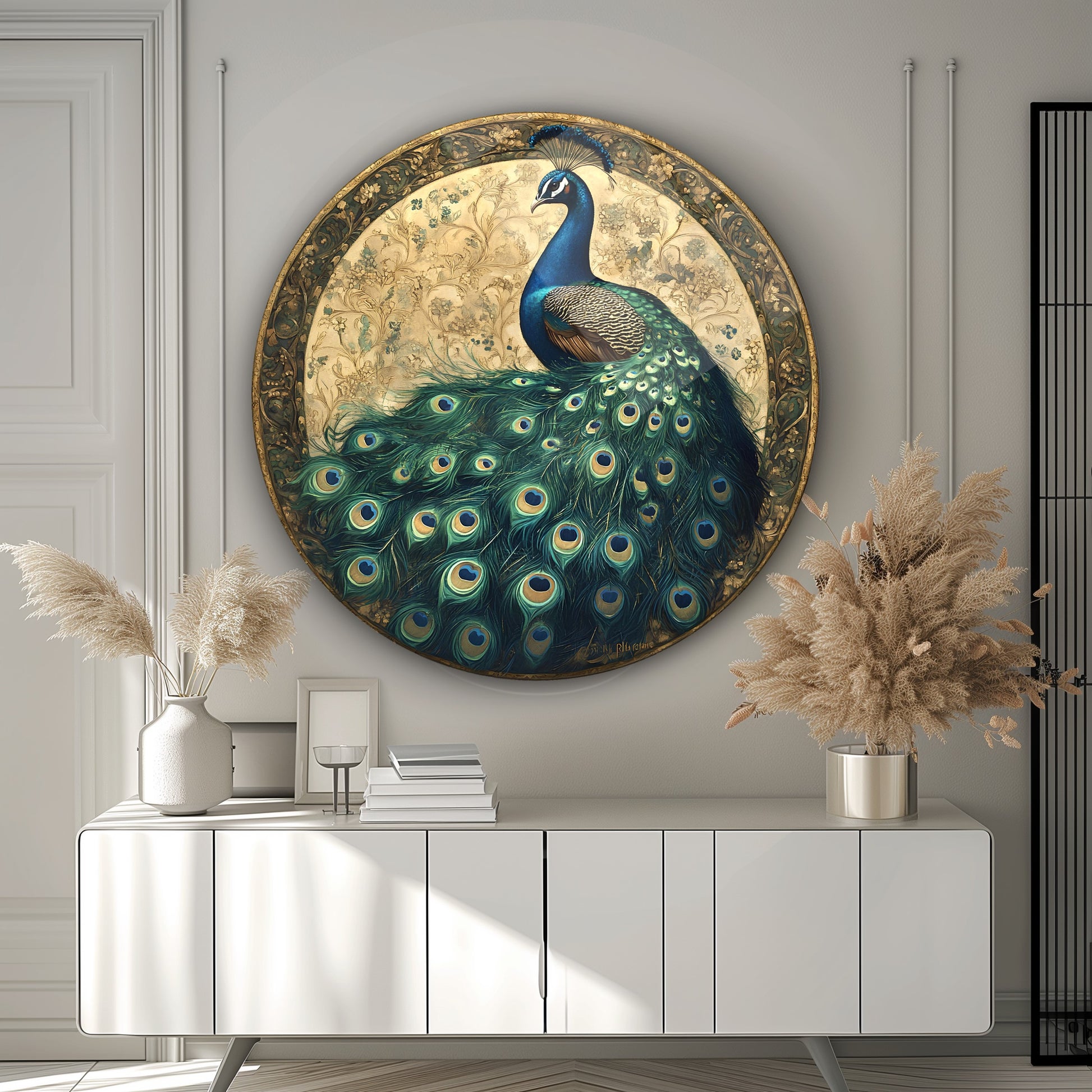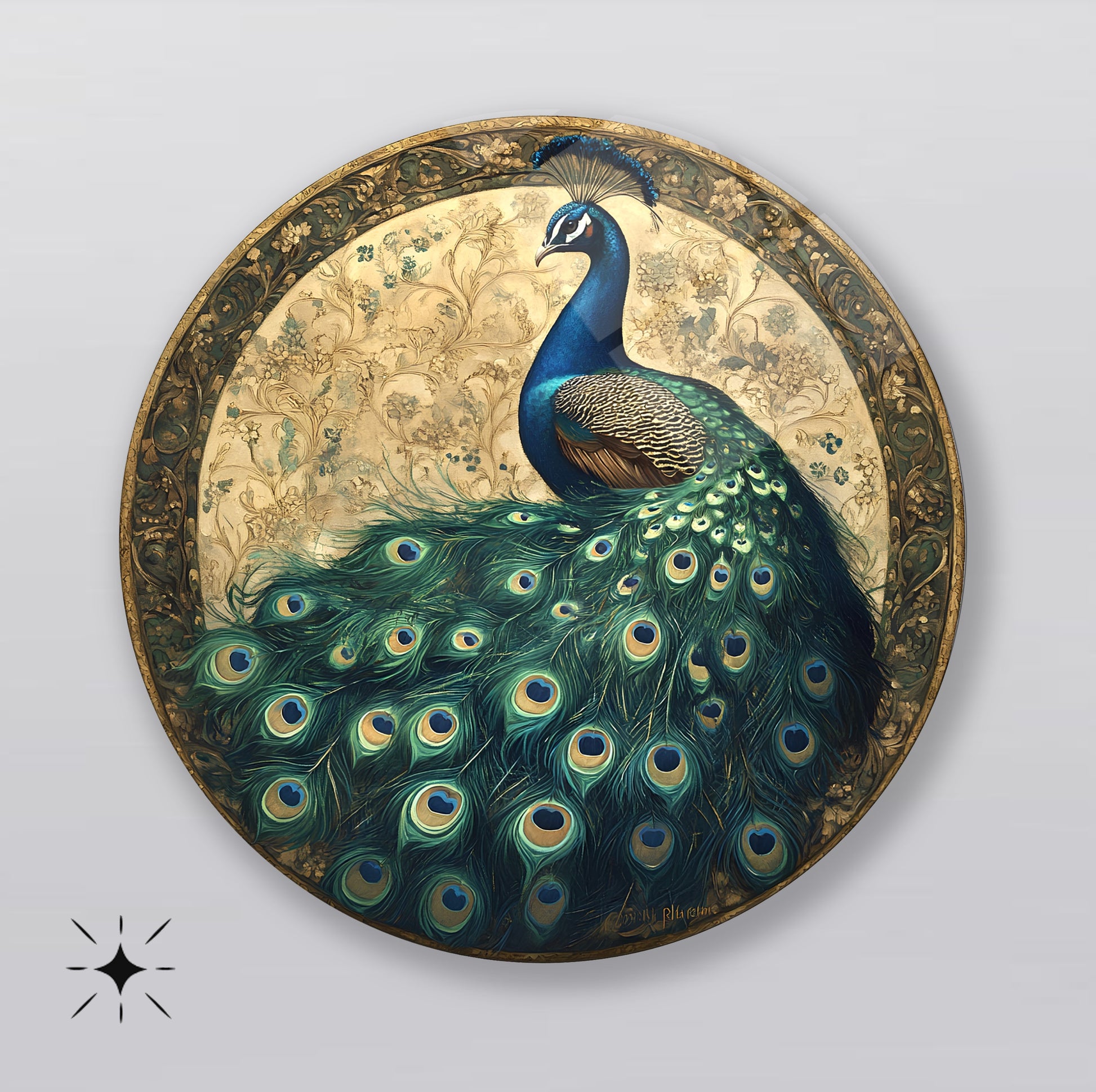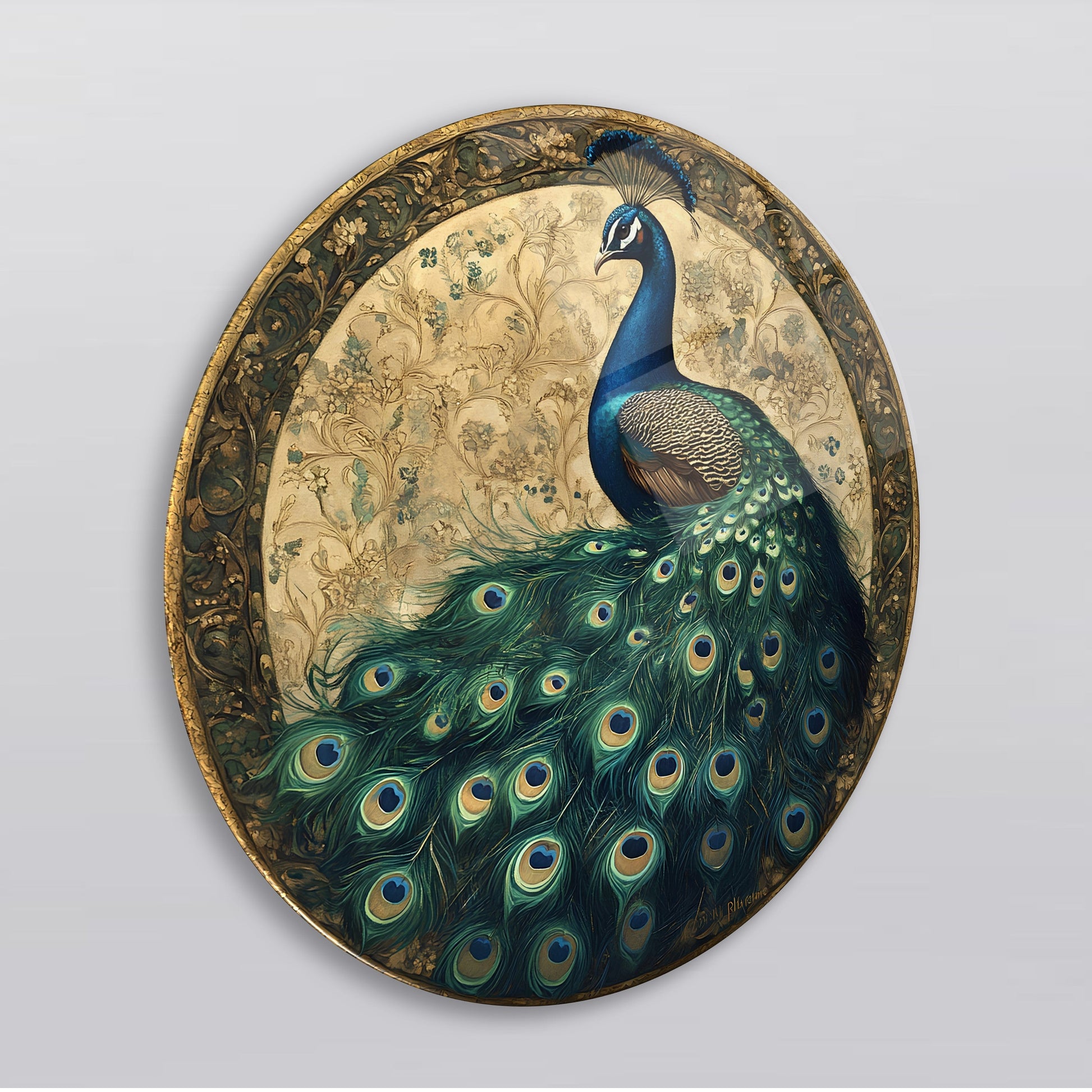 Yeşil ve gold tonlarının zarif uyumuyla tasarlanmış yaprak desenli tavus kuşu figürü, bu yuvarlak cam tabloya hem egzotik hem de sofistike bir hava katıyor. CamDeko kalitesiyle kırılmaz temperli cam üzerine UV baskı teknolojisiyle üretilen ürün, detaylı tasarımı ve canlı renkleriyle bulunduğu ortama dikkat çekici bir şıklık kazandırır. Ev salonlarından butik otellere, kuaför salonlarından ofislere kadar pek çok farklı alanda rahatlıkla kullanılabilir. Estetik duruşuyla doğanın zarafetini yansıtan bu tablo, stil sahibi dekorasyonlar için kusursuz bir tercihtir.
