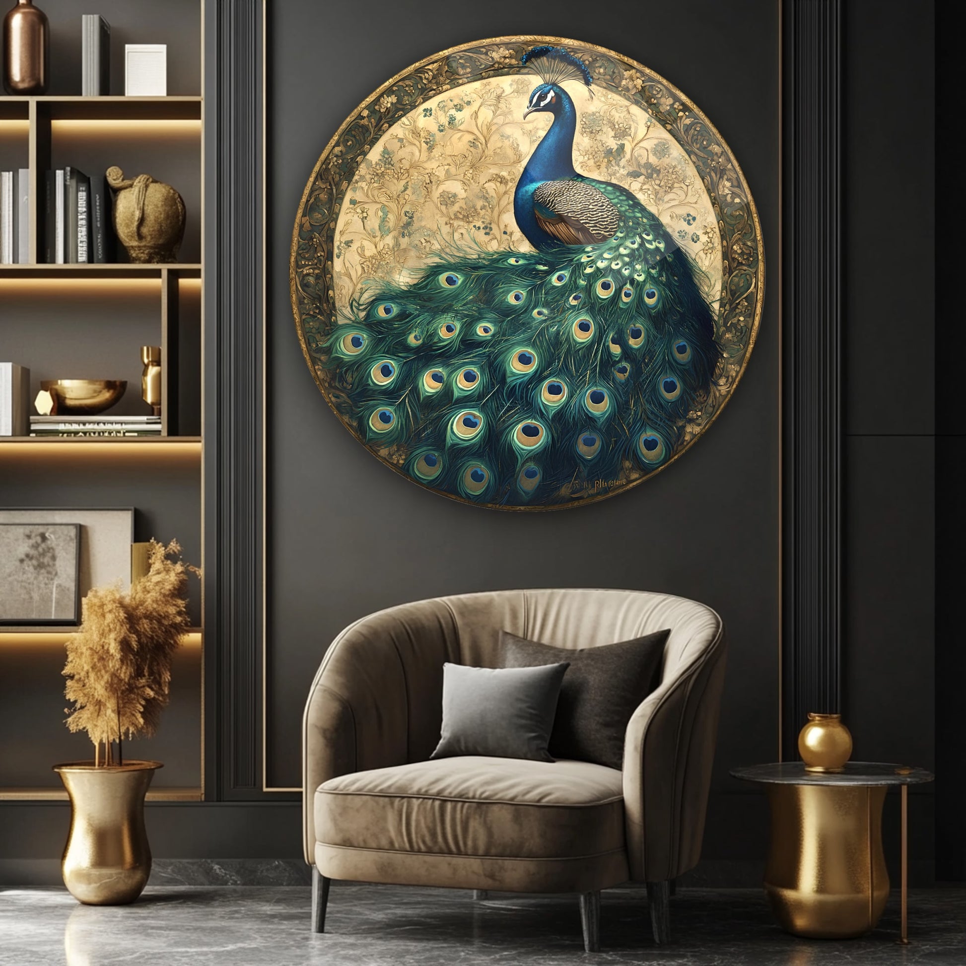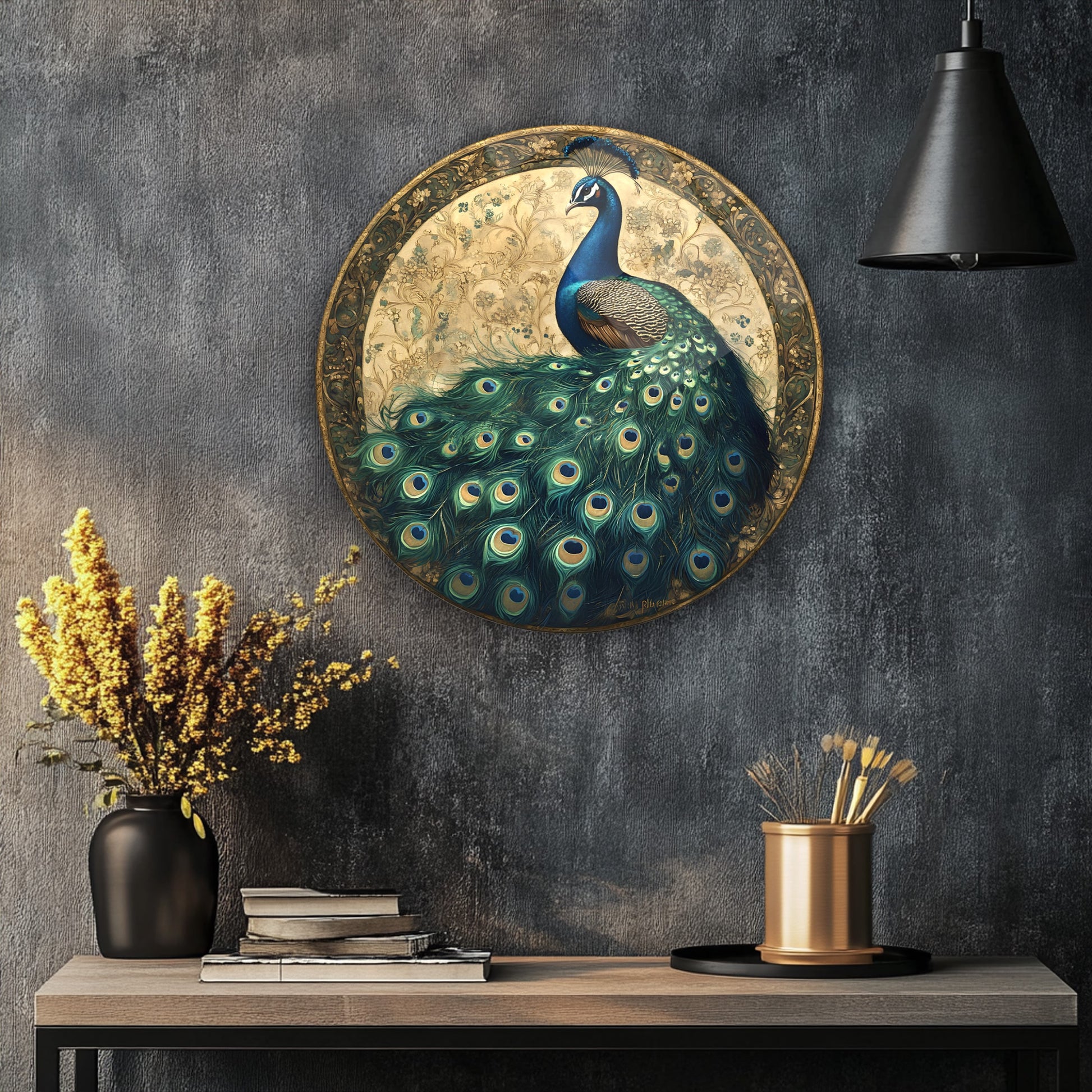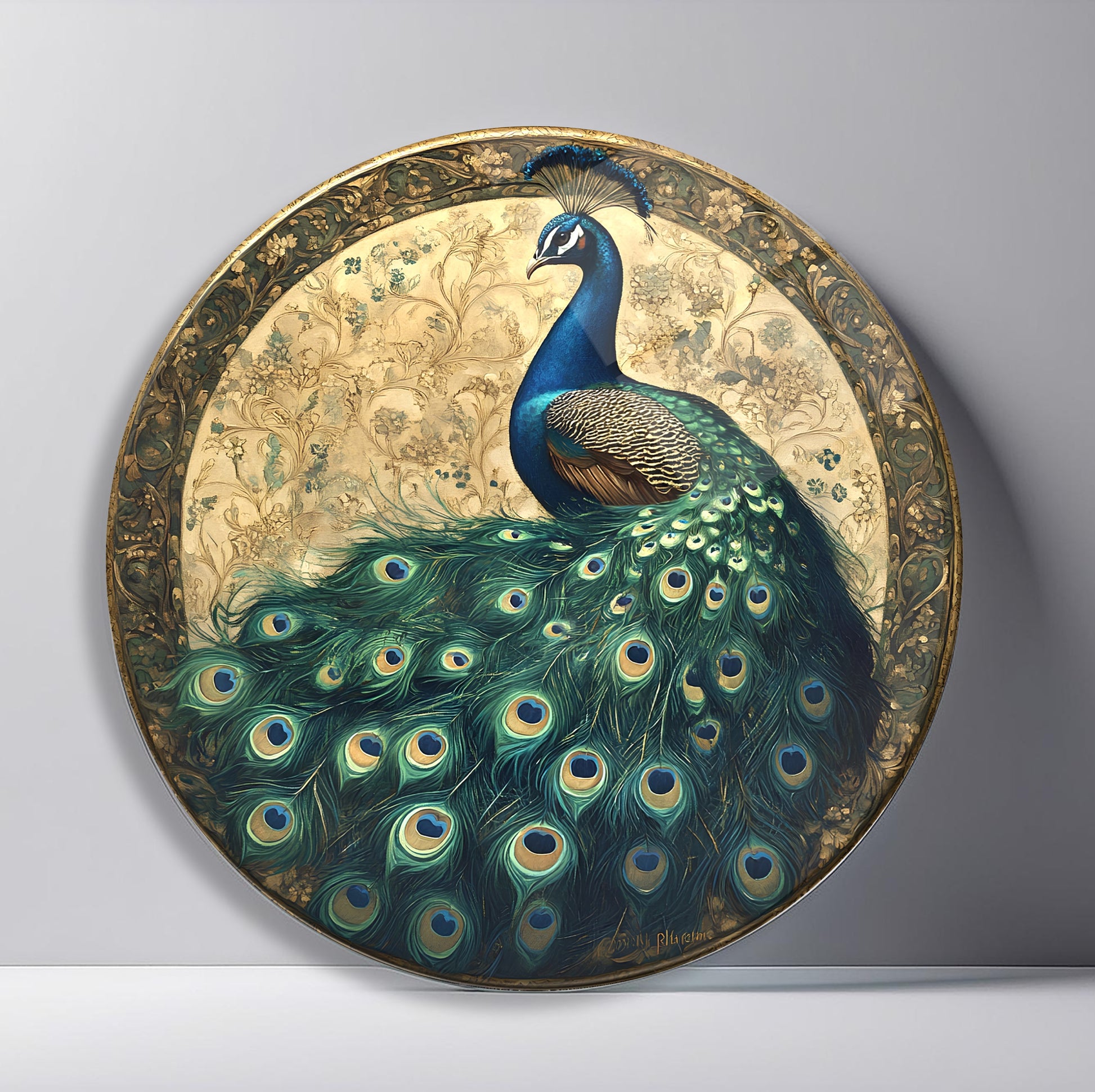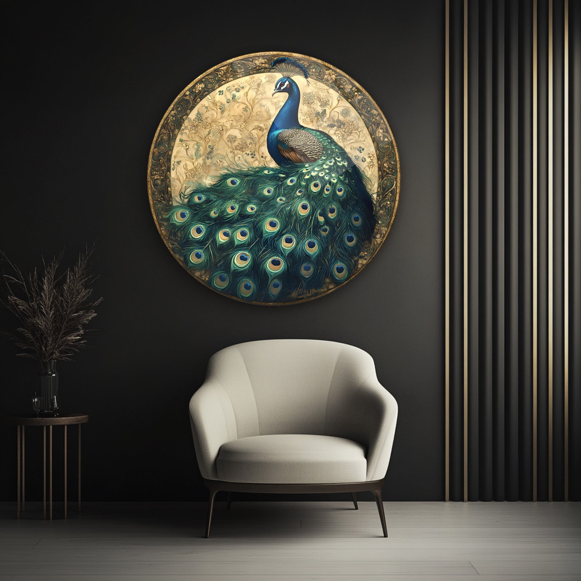 Yeşil ve gold tonlarının zarif uyumuyla tasarlanmış yaprak desenli tavus kuşu figürü, bu yuvarlak cam tabloya hem egzotik hem de sofistike bir hava katıyor. CamDeko kalitesiyle kırılmaz temperli cam üzerine UV baskı teknolojisiyle üretilen ürün, detaylı tasarımı ve canlı renkleriyle bulunduğu ortama dikkat çekici bir şıklık kazandırır. Ev salonlarından butik otellere, kuaför salonlarından ofislere kadar pek çok farklı alanda rahatlıkla kullanılabilir. Estetik duruşuyla doğanın zarafetini yansıtan bu tablo, stil sahibi dekorasyonlar için kusursuz bir tercihtir.
