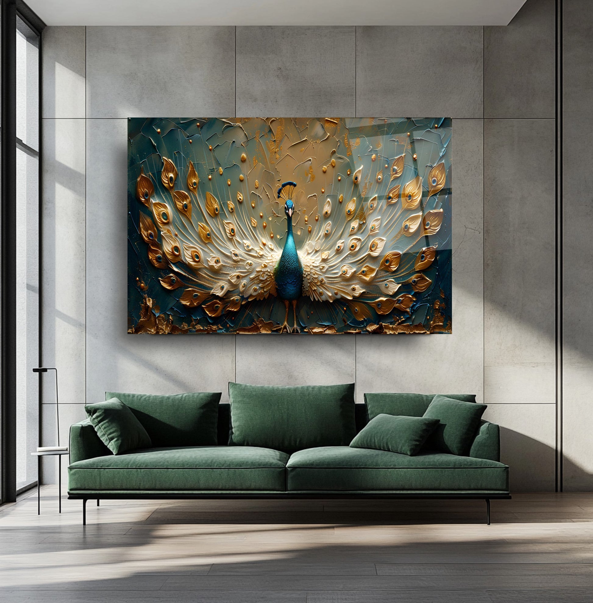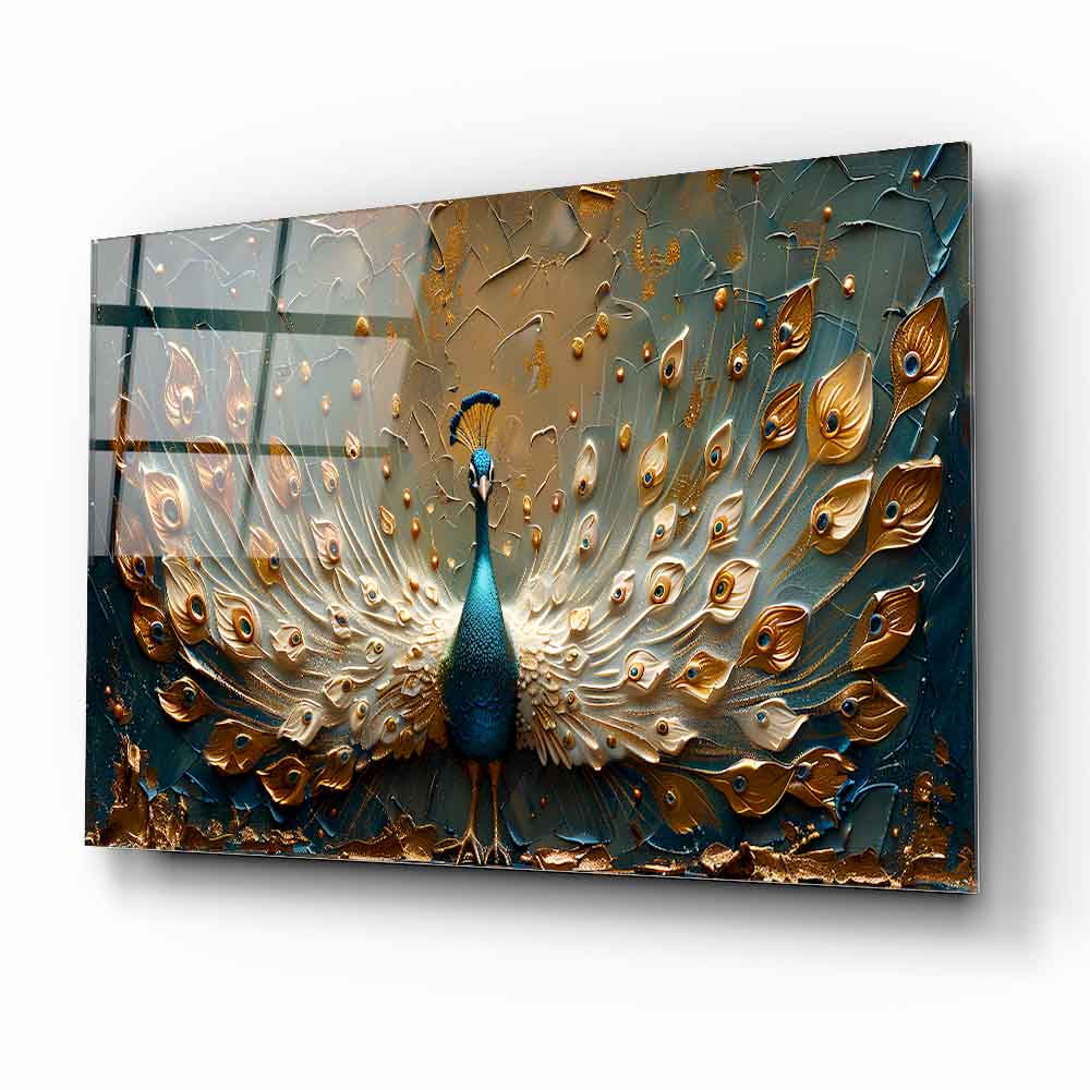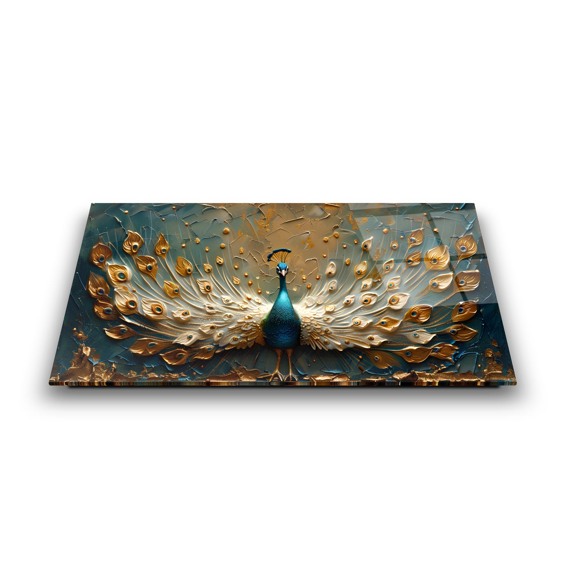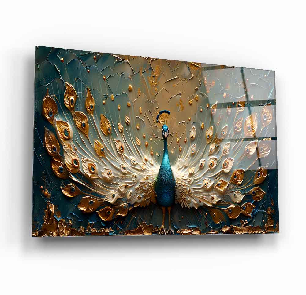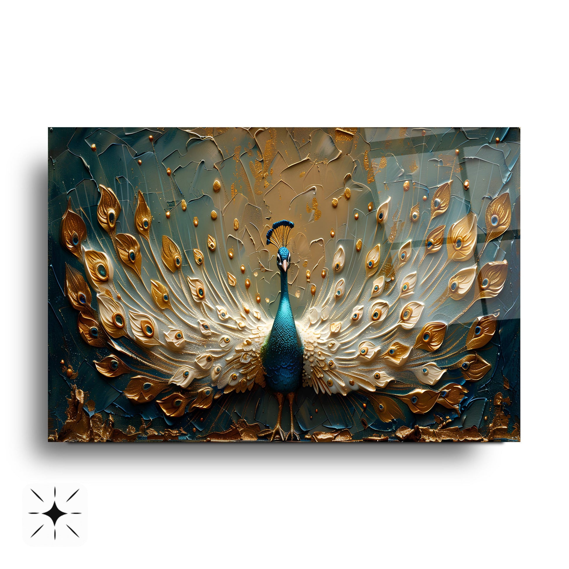Gold detaylı yeşil tavus kuşu temalı cam tablo, zarif 3D kabartmalı tasarımıyla mekânlara lüks ve estetik bir dokunuş katıyor. Canlı yeşil tonları ve parlak altın vurgular, temperli cam üzerine yapılan UV baskı sayesinde uzun süre solmadan kalıcıdır. Modern ve şık tasarımıyla salon, ofis veya yatak odası dekorasyonlarında güçlü bir görsel etki yaratır. Dayanıklı ve kolay montajlı temperli cam tablonun her alan için ideal seçim olduğu bu ürün, dekorasyonda kalite arayanların tercihi.