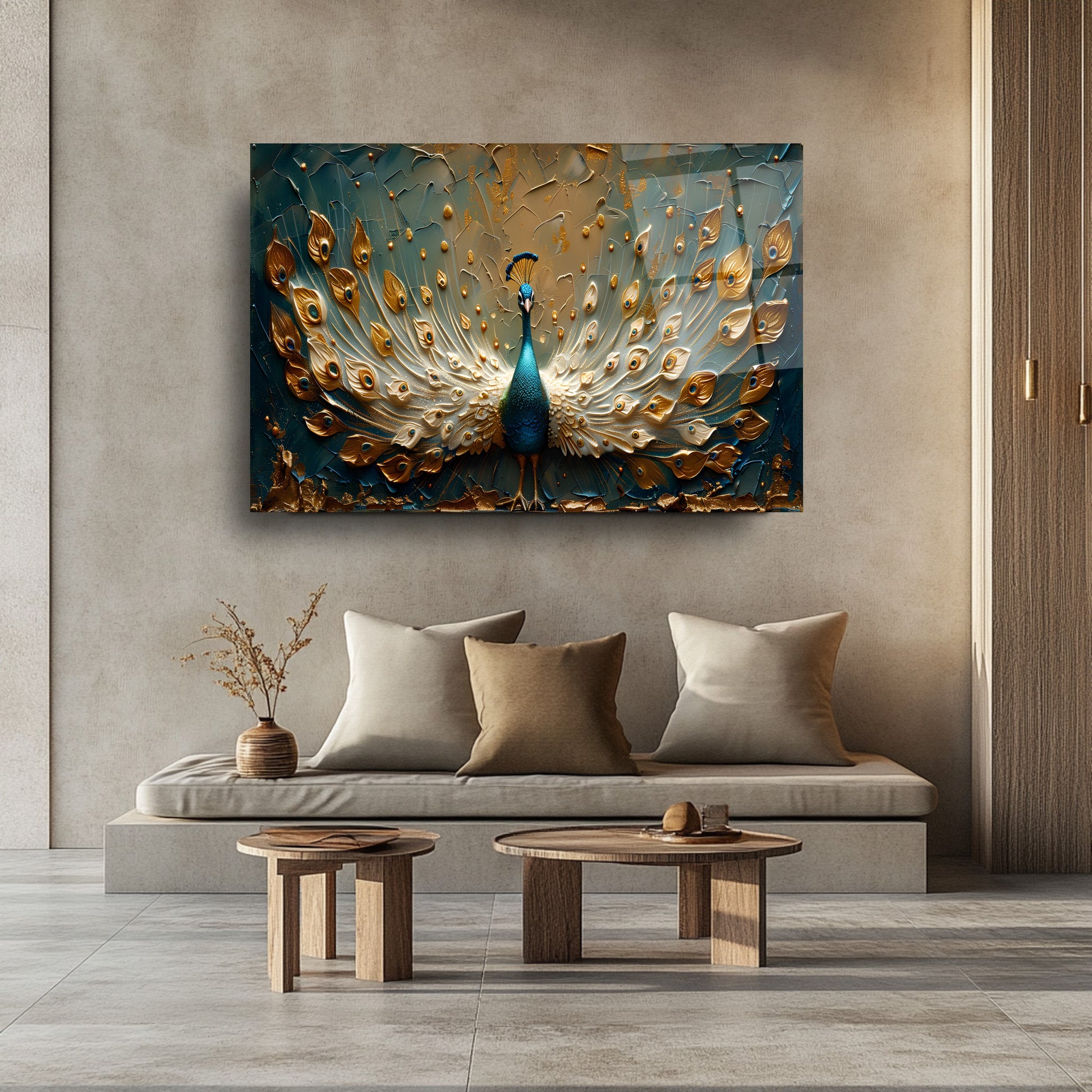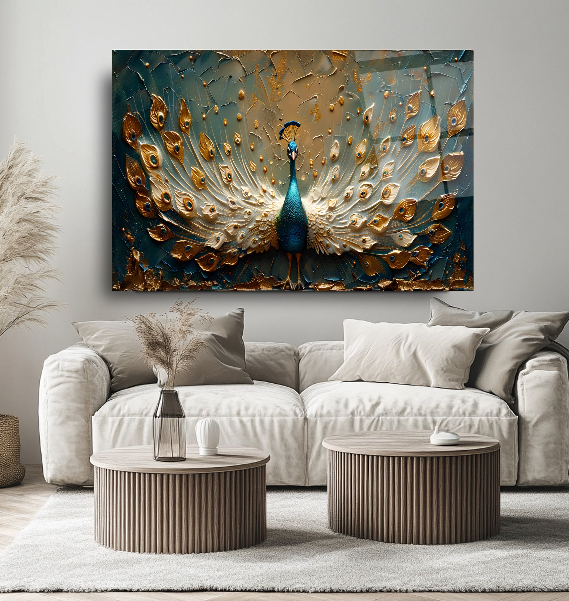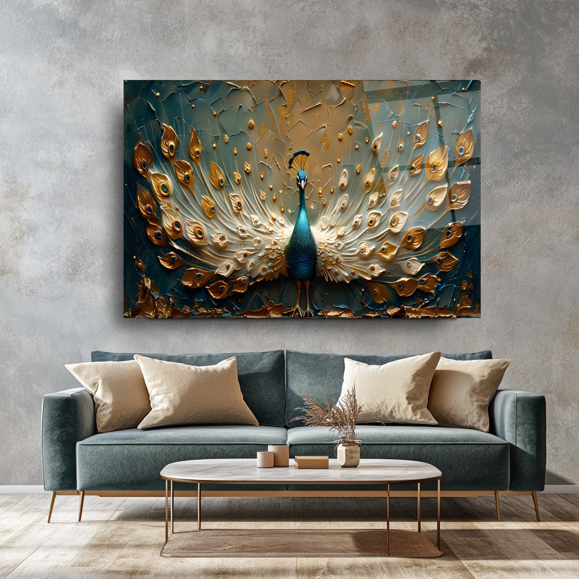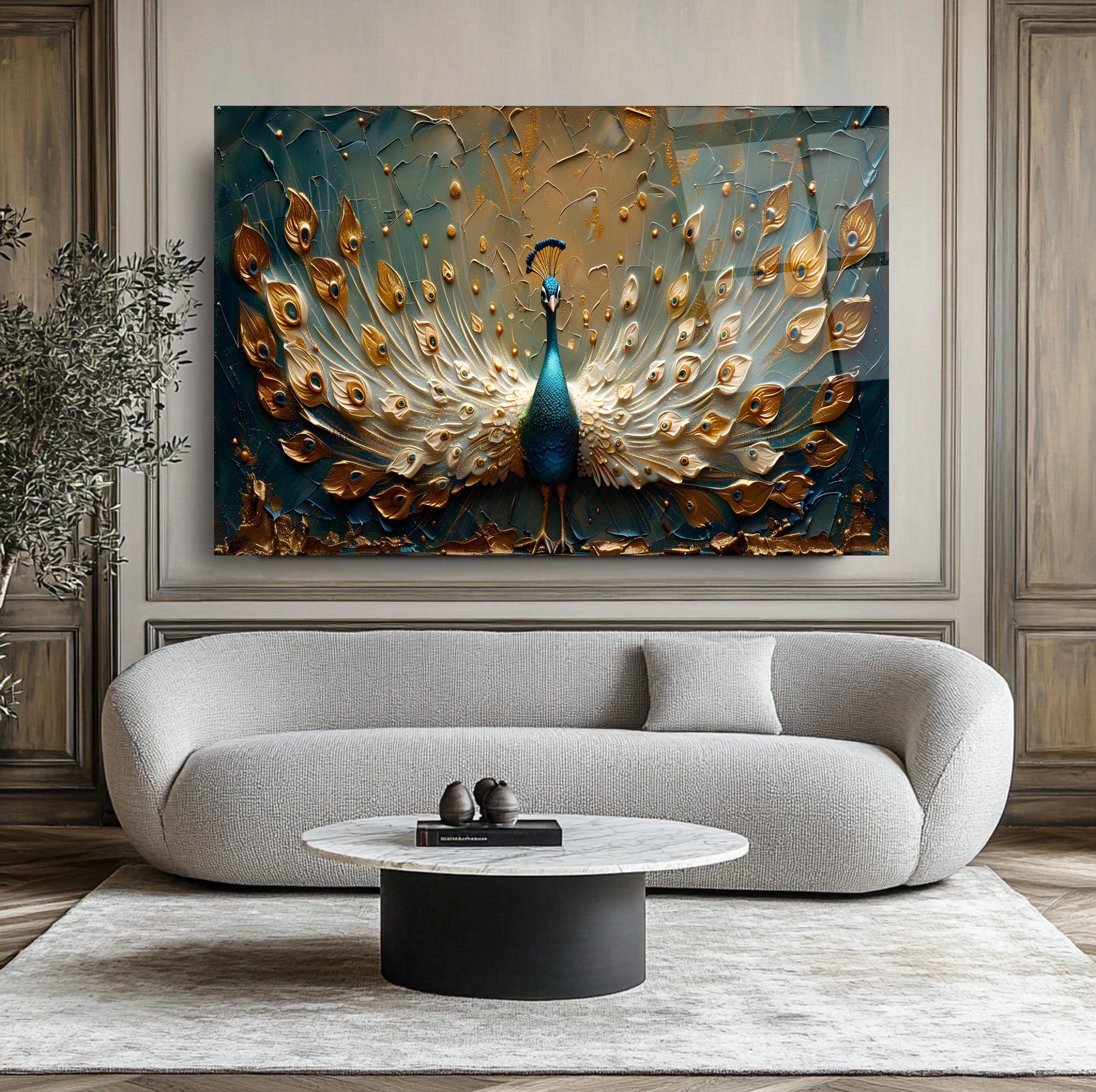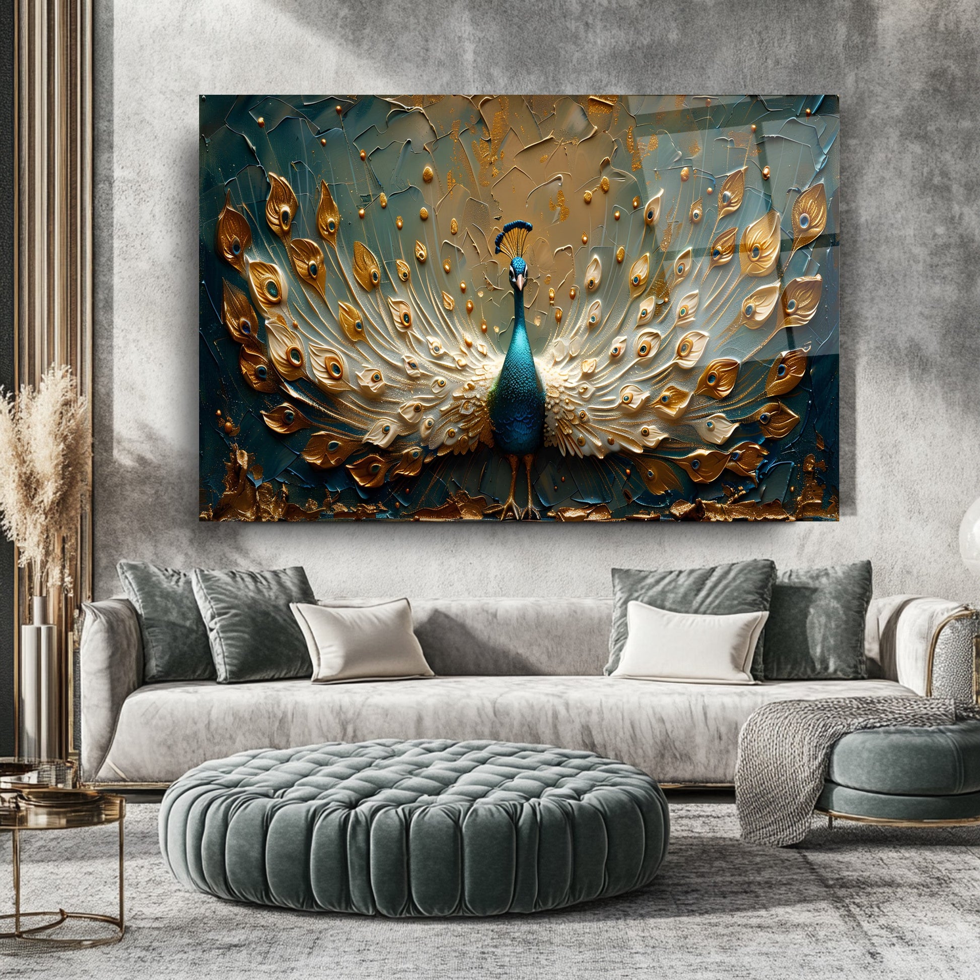 Gold detaylı yeşil tavus kuşu temalı cam tablo, zarif 3D kabartmalı tasarımıyla mekânlara lüks ve estetik bir dokunuş katıyor. Canlı yeşil tonları ve parlak altın vurgular, temperli cam üzerine yapılan UV baskı sayesinde uzun süre solmadan kalıcıdır. Modern ve şık tasarımıyla salon, ofis veya yatak odası dekorasyonlarında güçlü bir görsel etki yaratır. Dayanıklı ve kolay montajlı temperli cam tablonun her alan için ideal seçim olduğu bu ürün, dekorasyonda kalite arayanların tercihi.