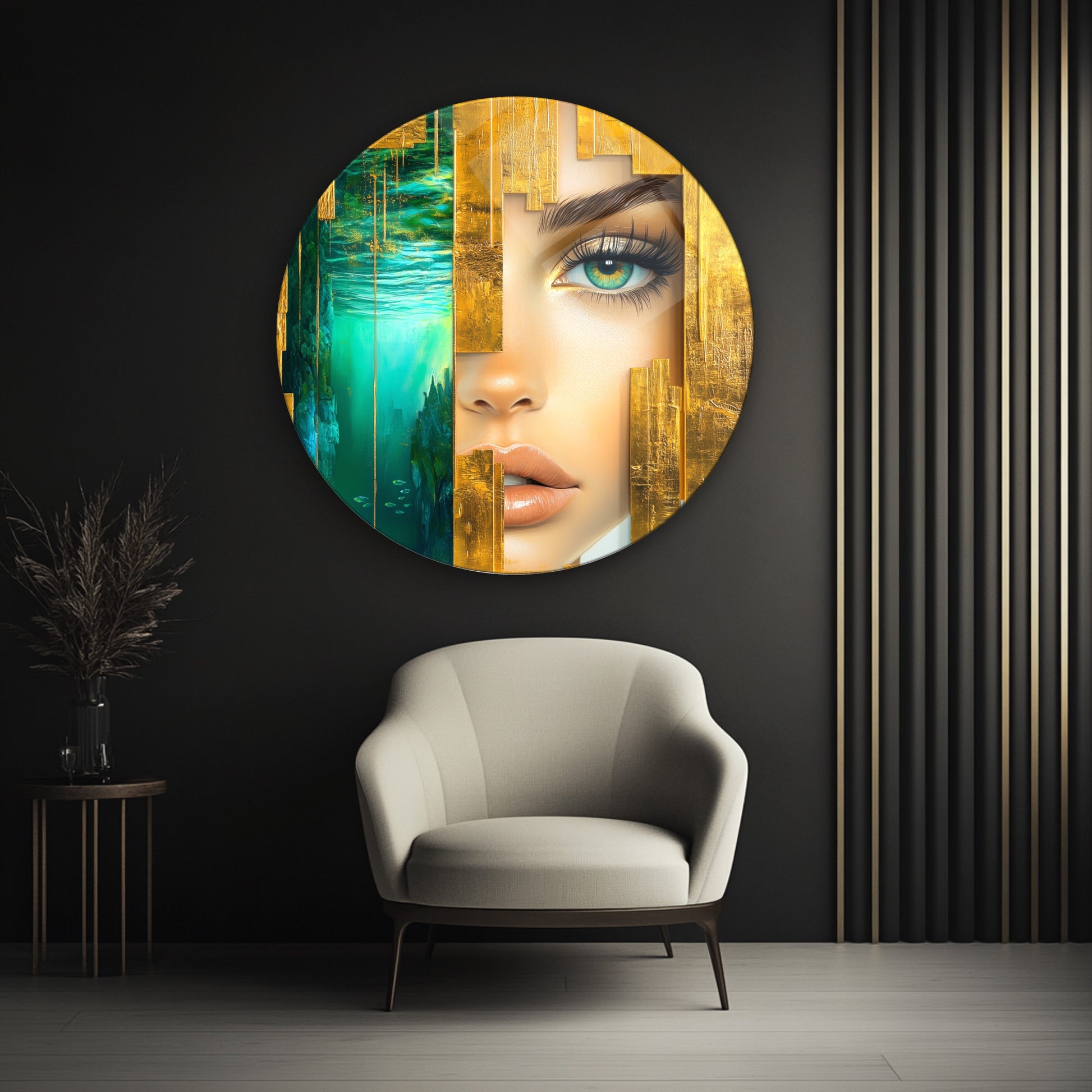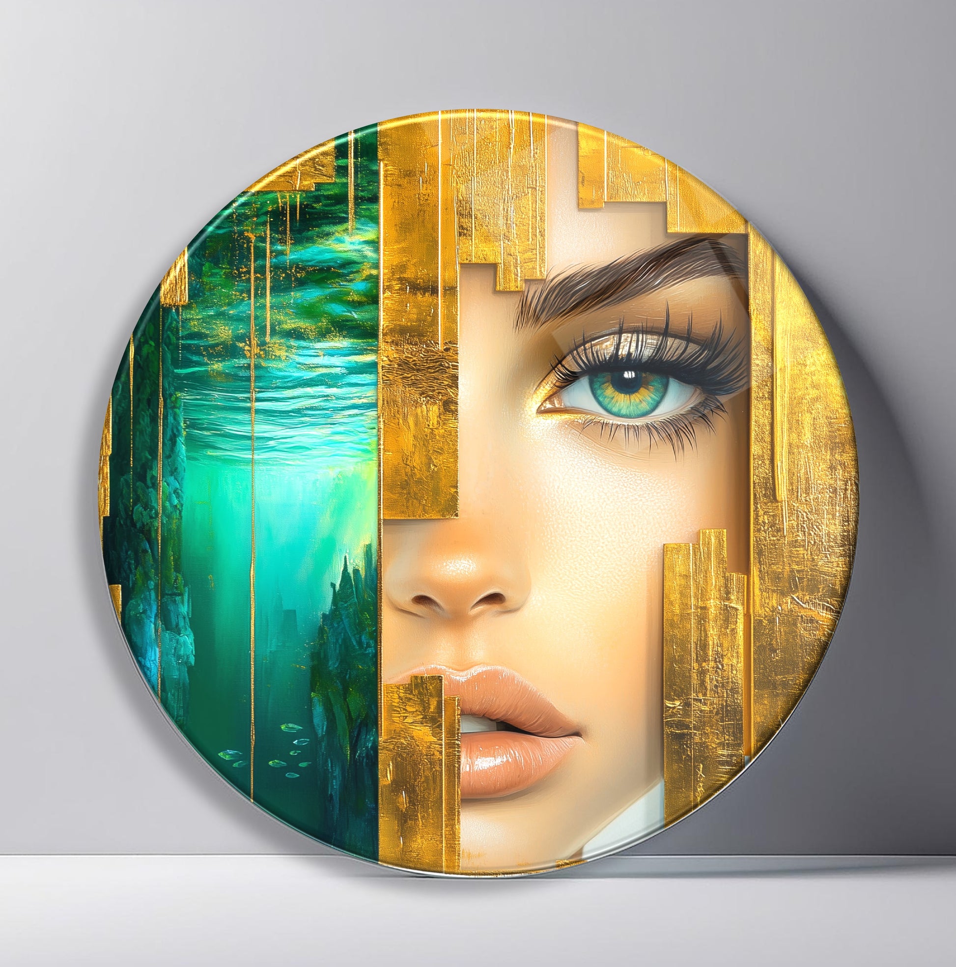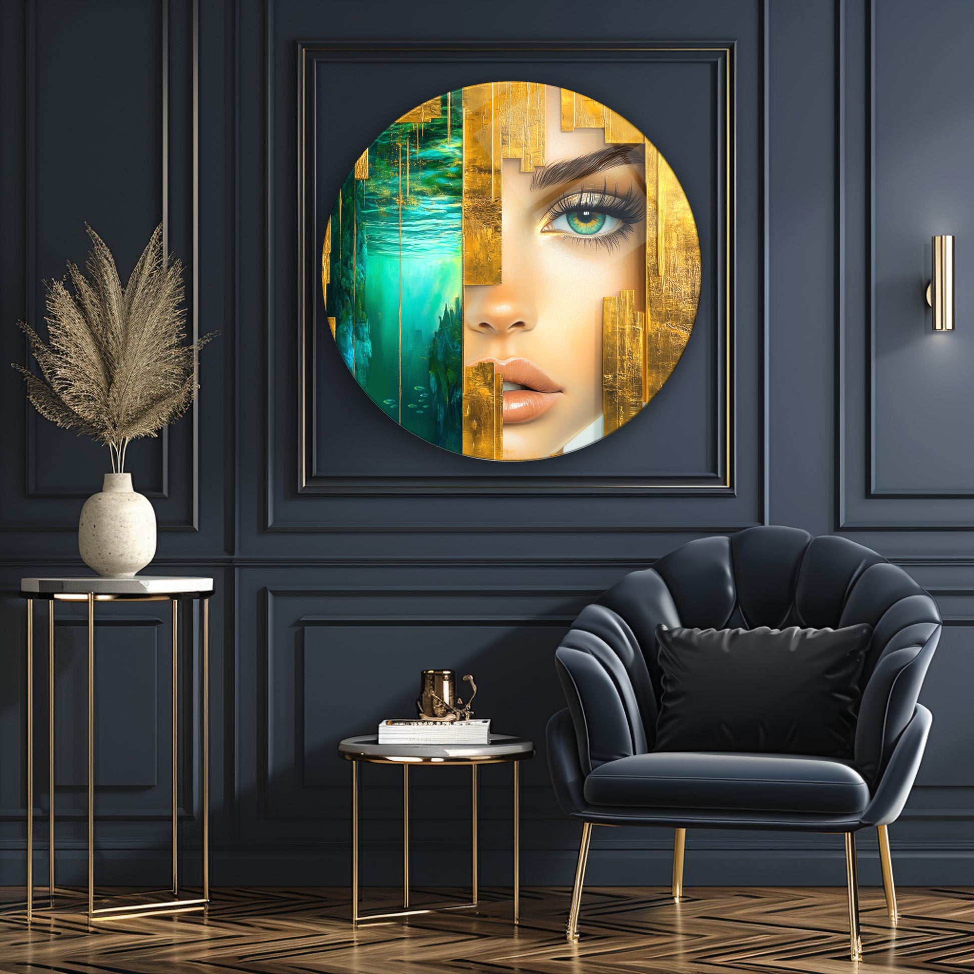 Yeşil Gold Kadın Yuvarlak Cam Tablo