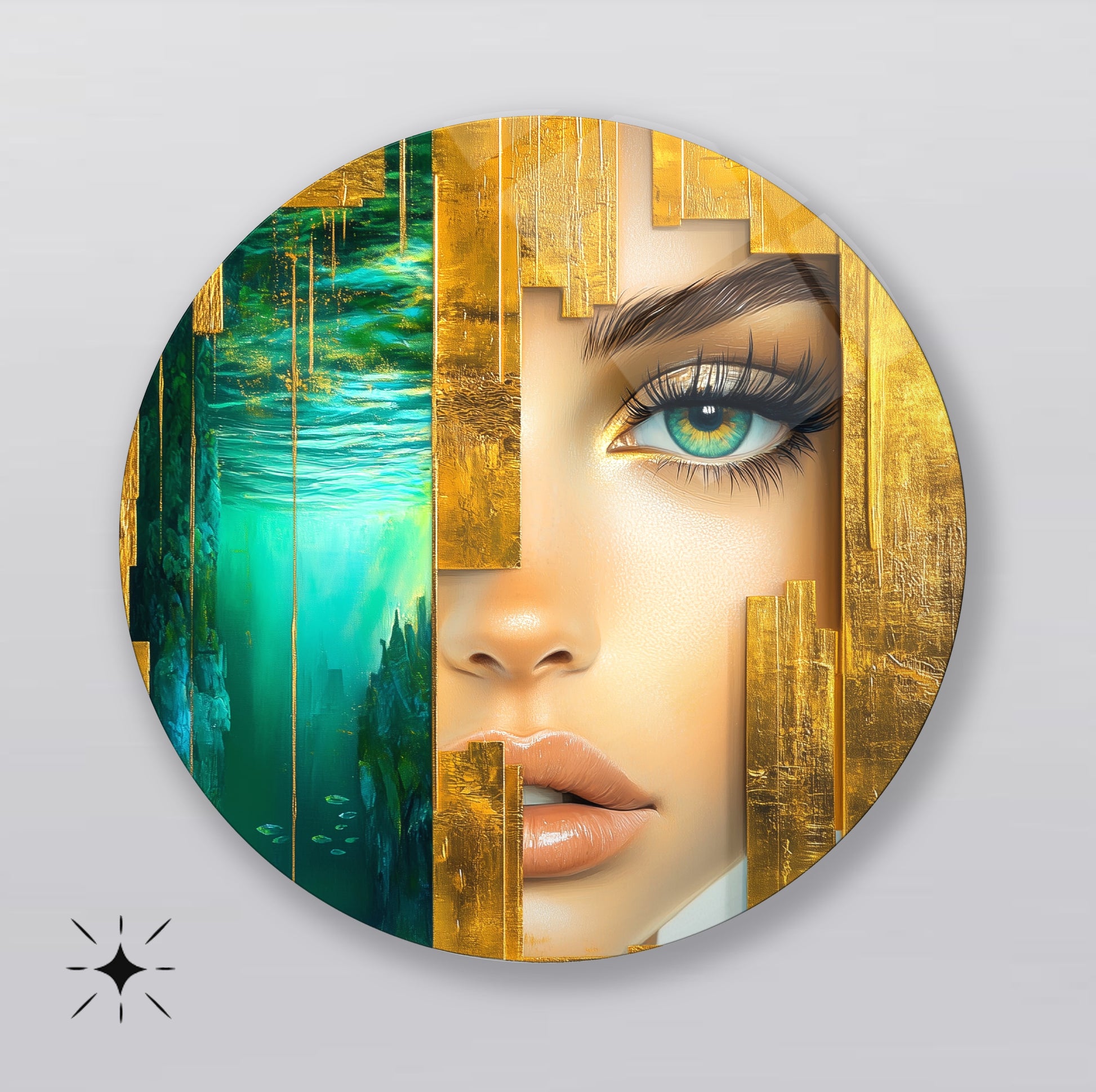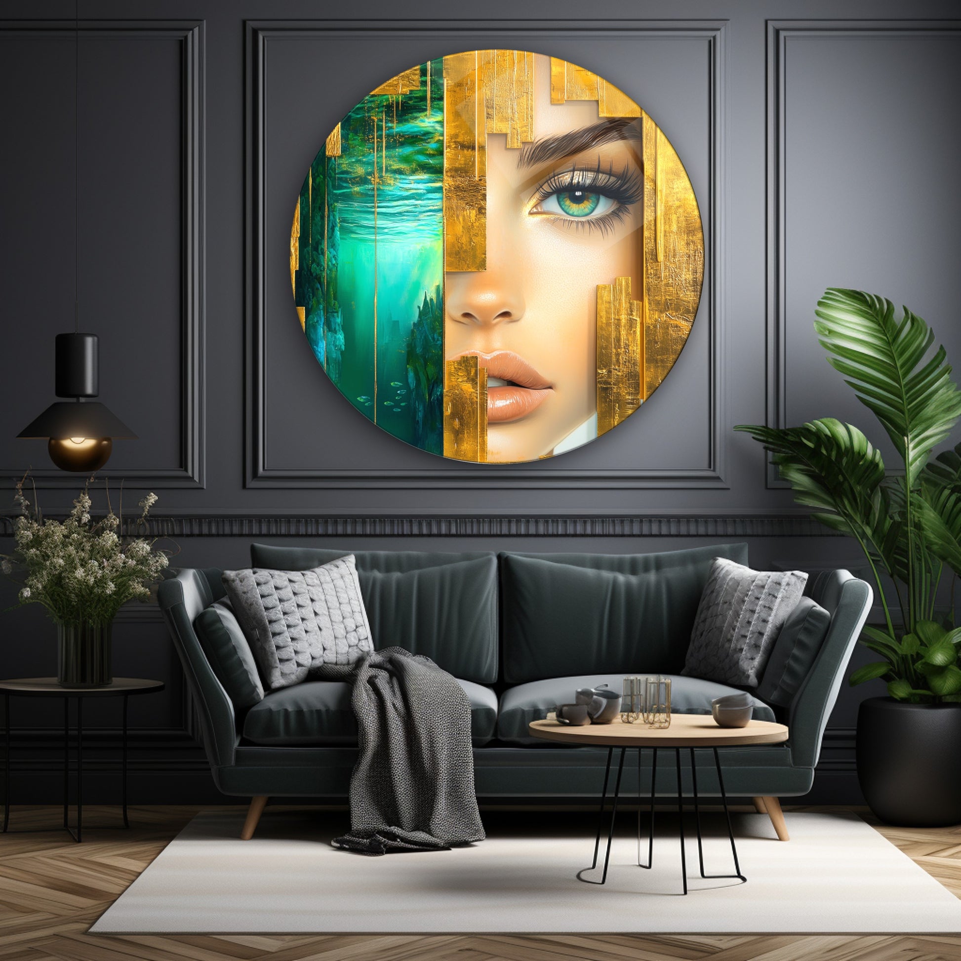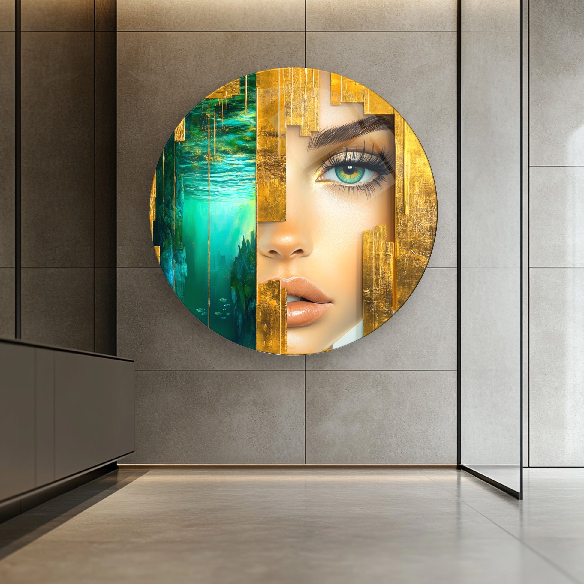 Yeşil Gold Kadın Yuvarlak Cam Tablo