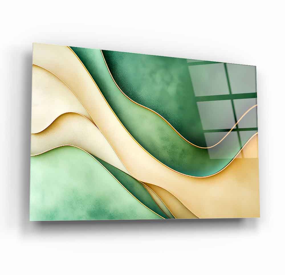 Mekanlarınıza Soyut Bir Zarafet: Yeşil Gold Soyut Cam Tablo