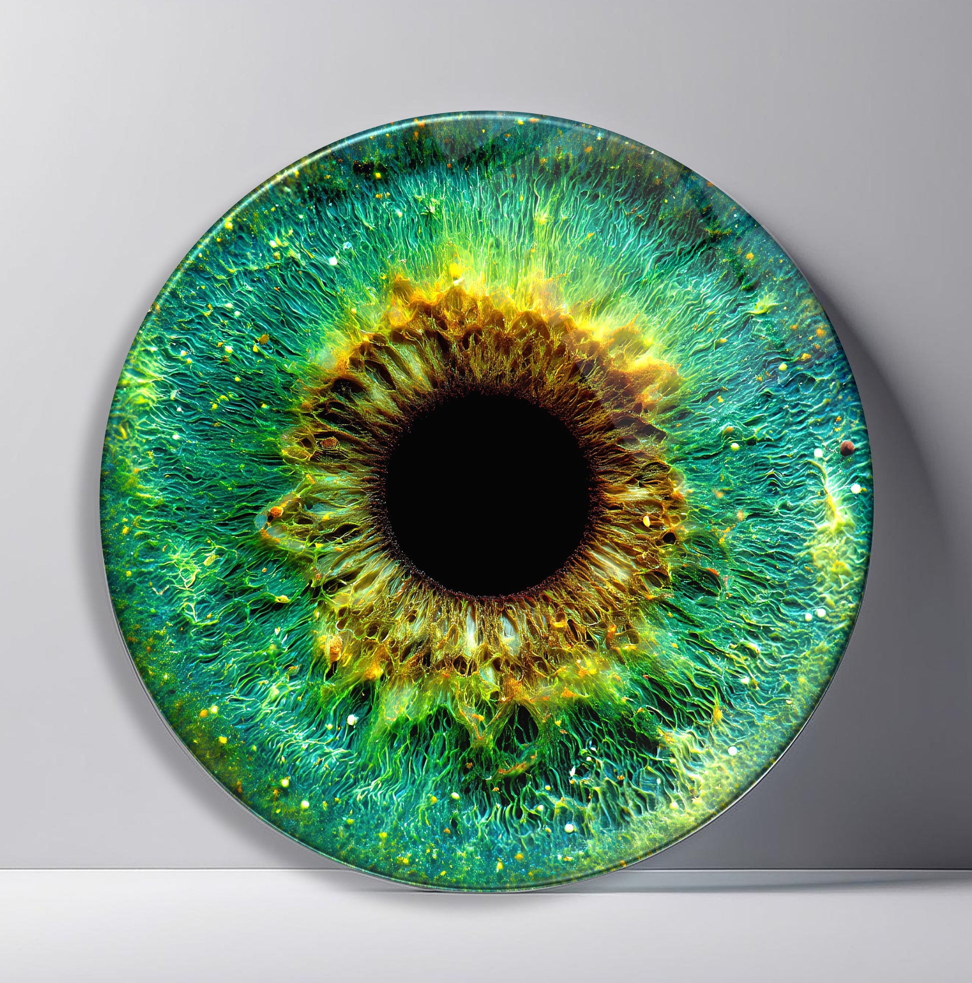 Yeşil Göz Bebeği İris Yuvarlak Cam Tablo