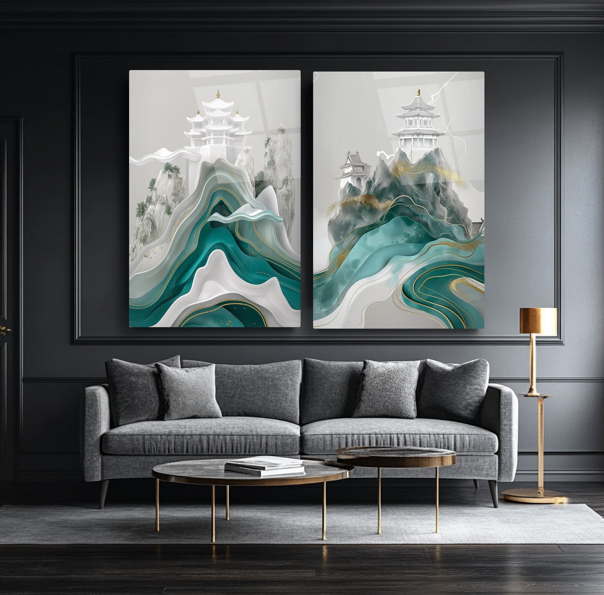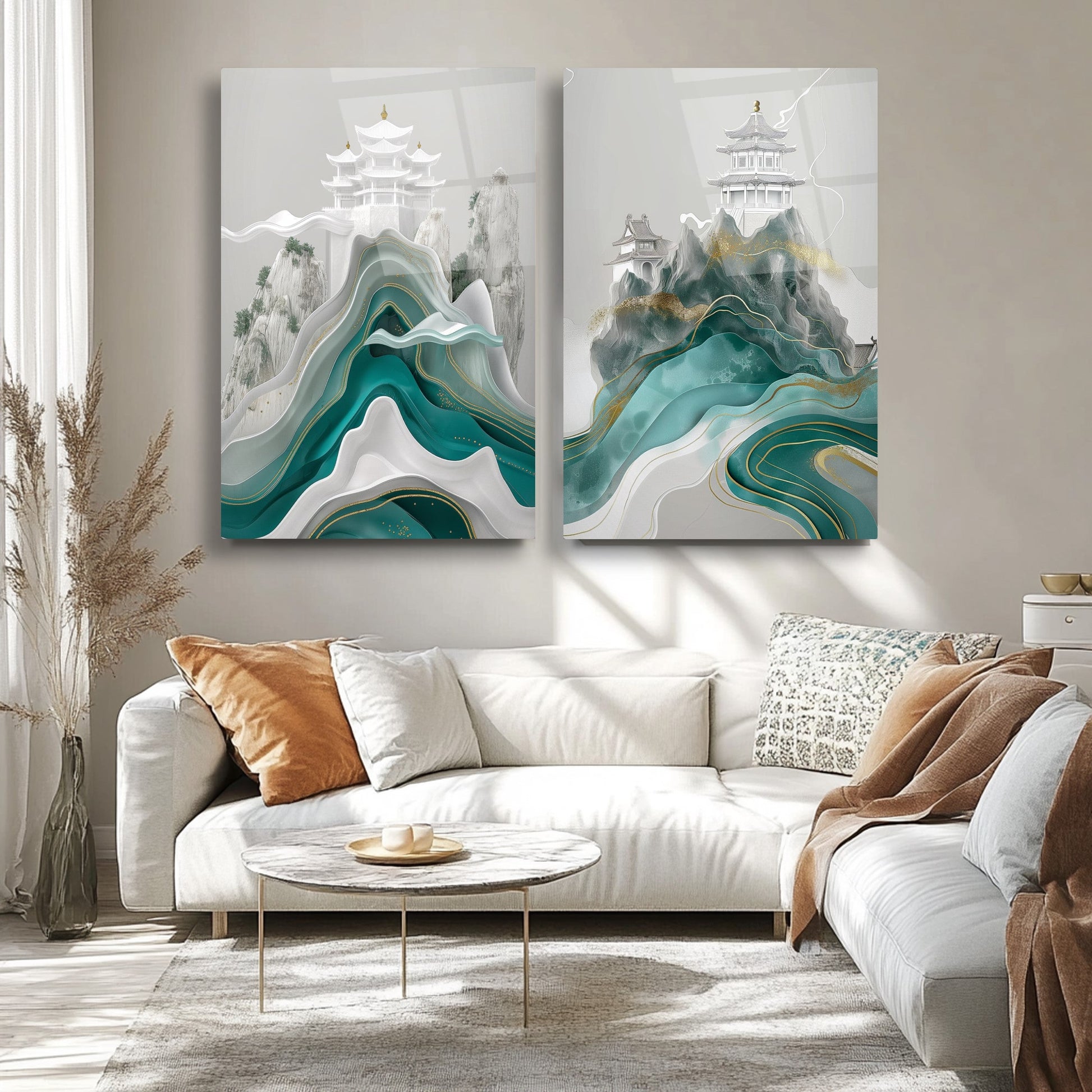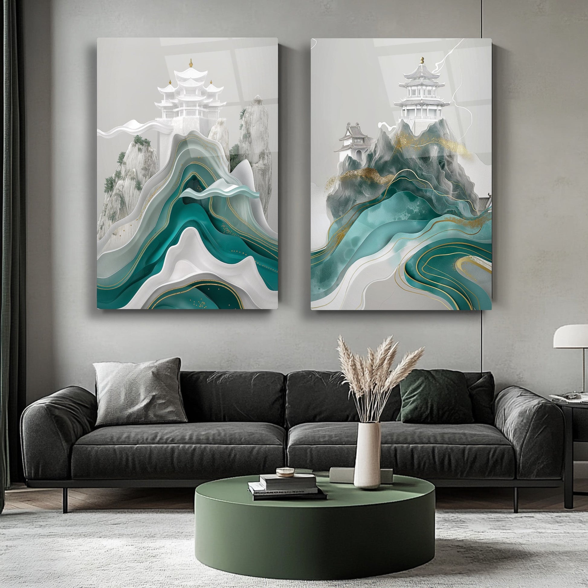 Yeşil mermer desenli, Japon ve Çin estetiğini yansıtan minimal modern tasarımlı bu kırılmaz cam tablo ikili kombin, zarif ve sakin bir atmosfer yaratır. Dayanıklı cam yapısı uzun ömürlüdür. Mekanlara estetik ve denge katar. Doğu esintili dekorasyon sevenler için şık, çağdaş ve anlam dolu bir tercih olarak öne çıkar.